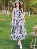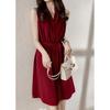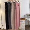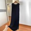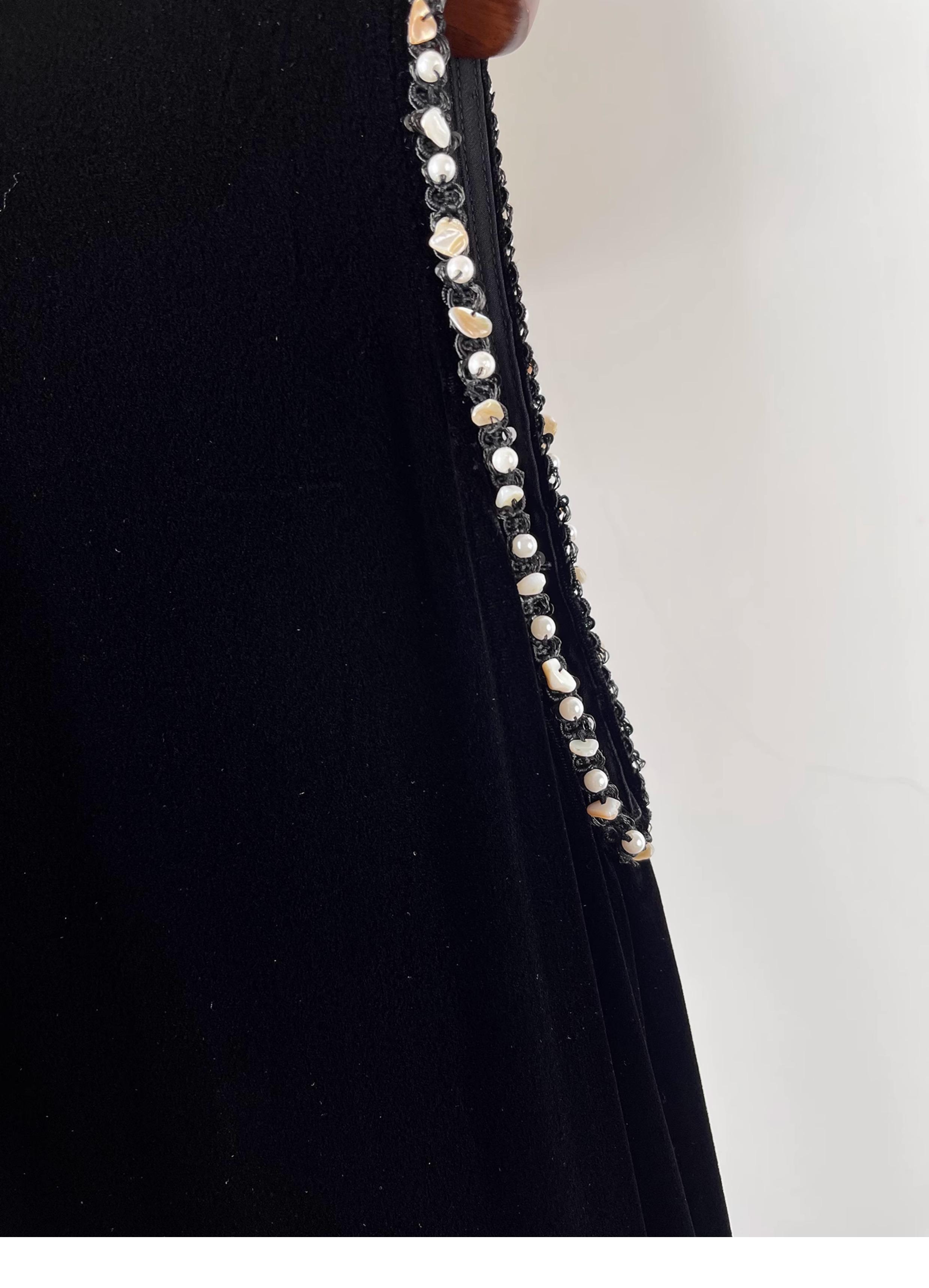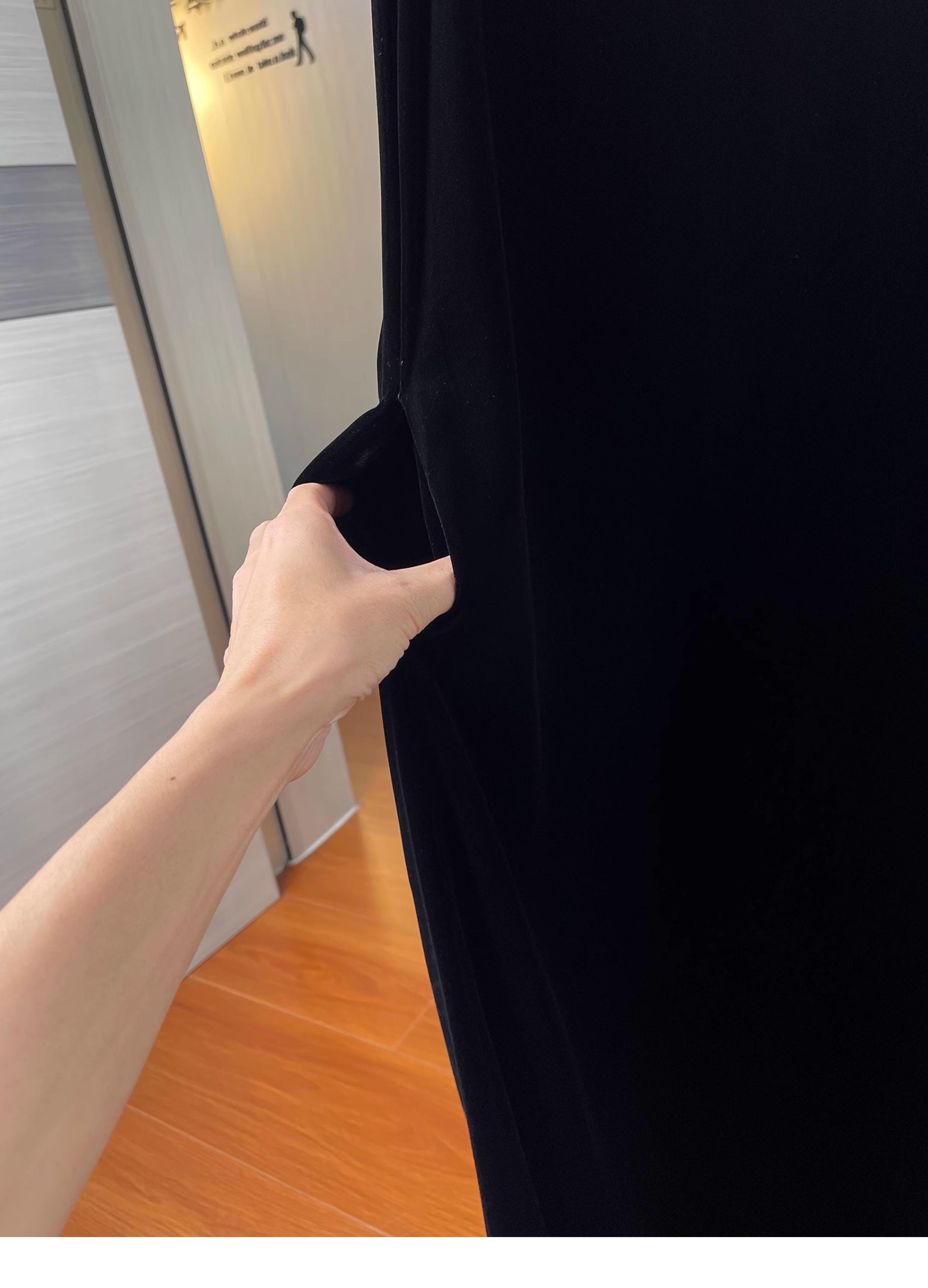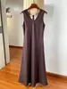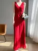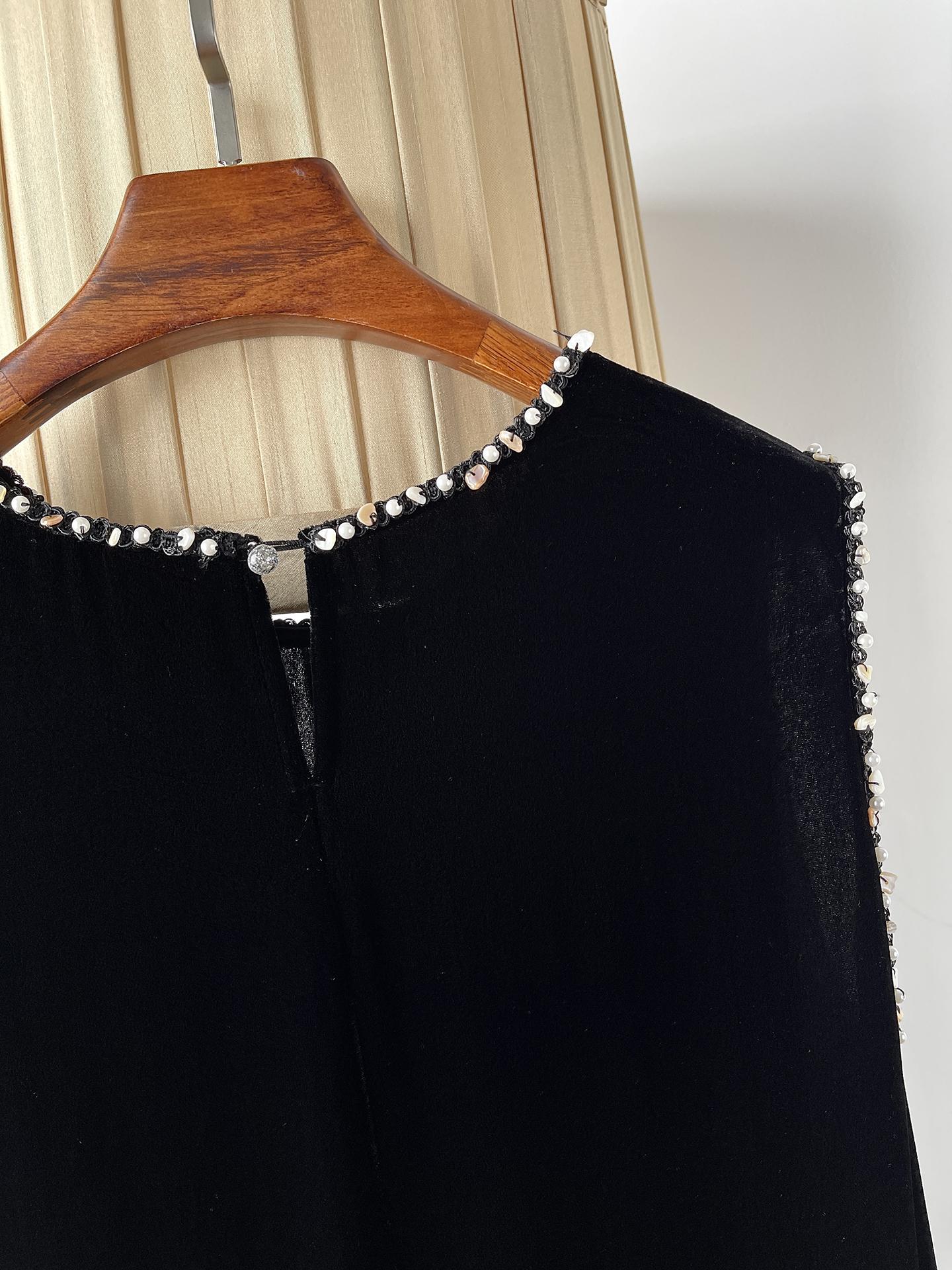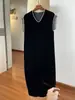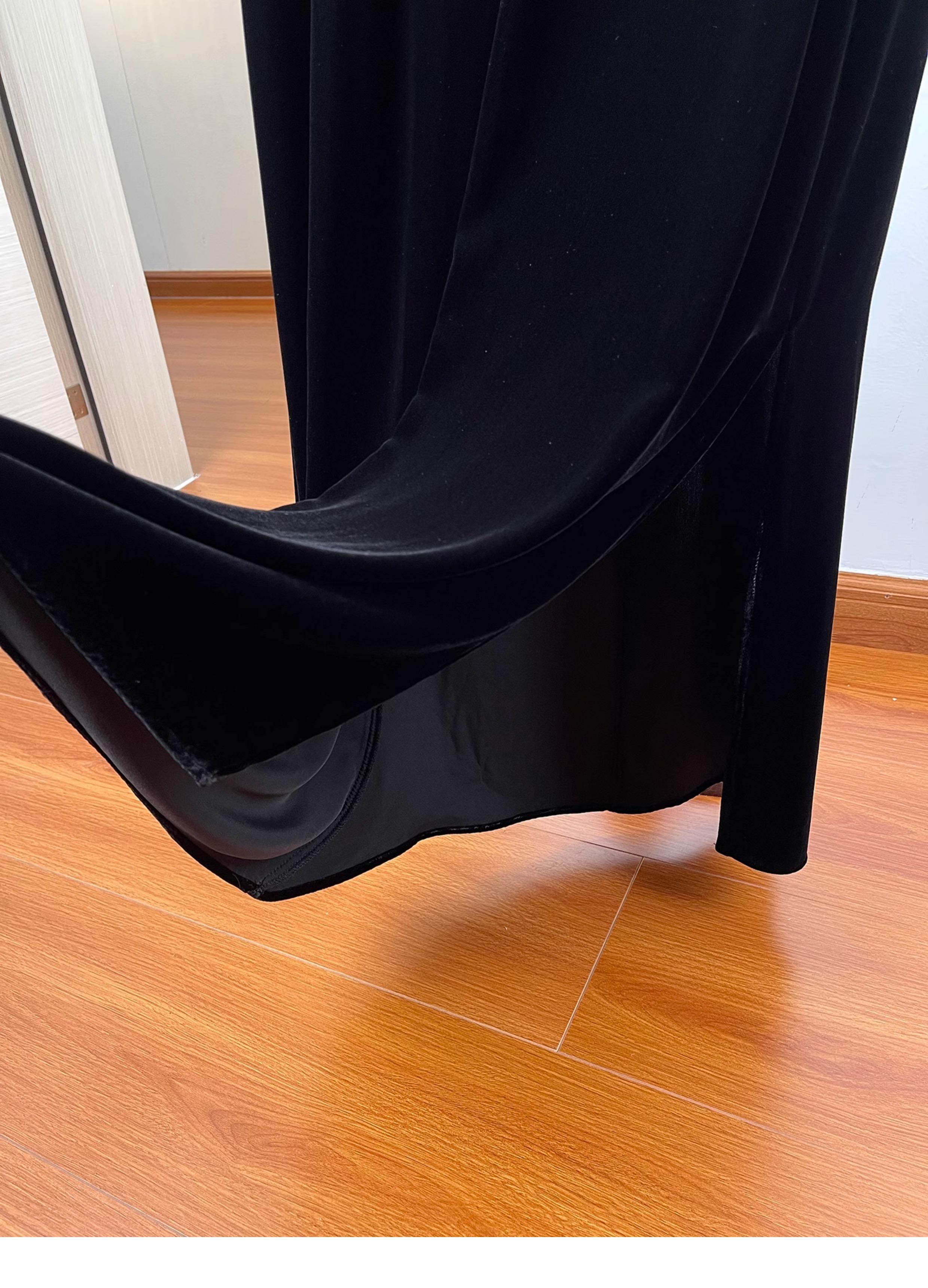Vestido Chaleco sin Mangas de Terciopelo de Seda con Cuentas para Mujer Verano Drapeado Forma H Recto Adelgazante Abertura Lateral Vestido Falda Larga