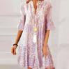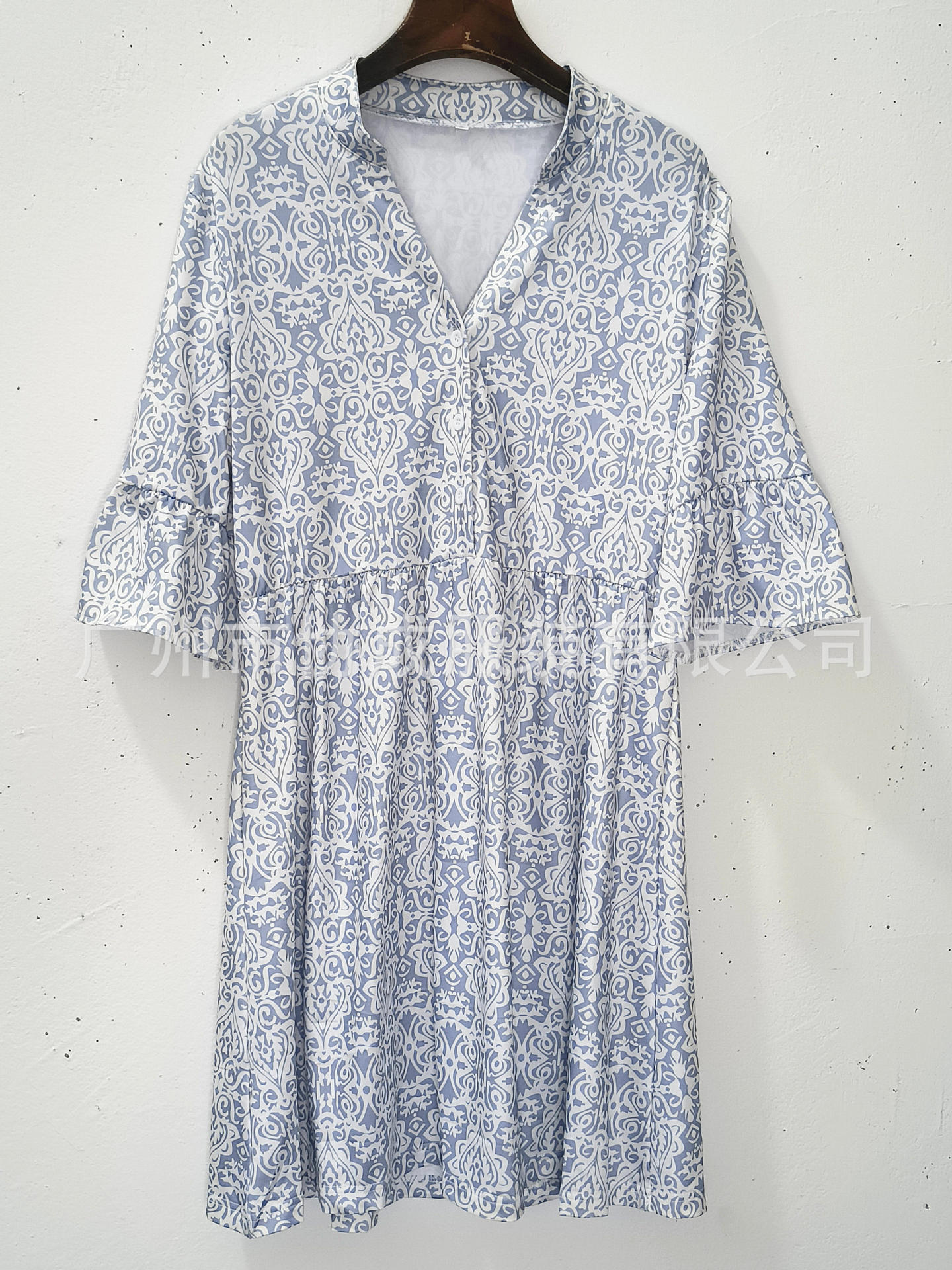 2022 Amazon nuevo vestido rojo floral de manga corta con cuello en V primavera/verano vestido de temperamento europeo y americano vestido largo