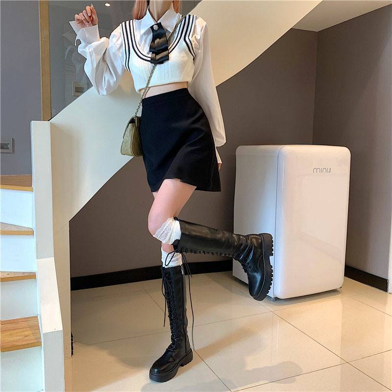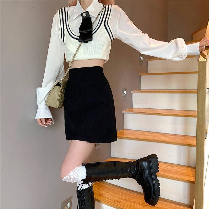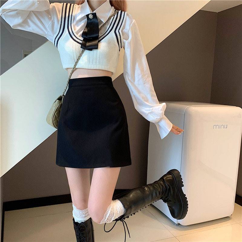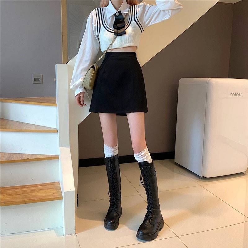 Falda Cubrecaderas, Falda Corta para Mujer, Falda Estilo Nuevo 2025, Falda Línea A para Chica Gorda, Cintura Alta a la Moda, Look Adelgazante Negro