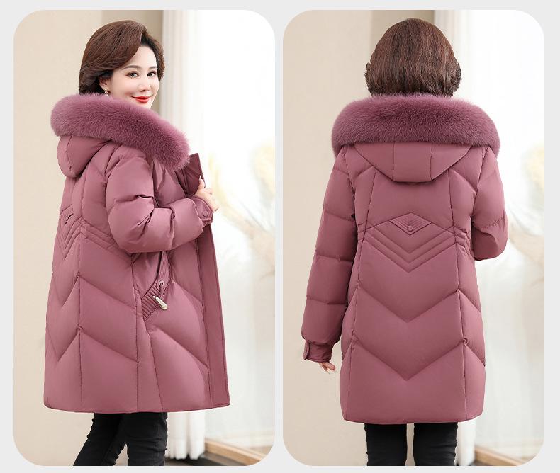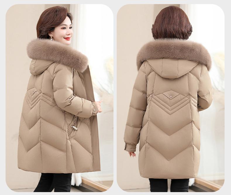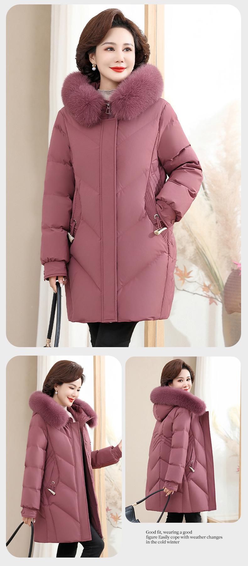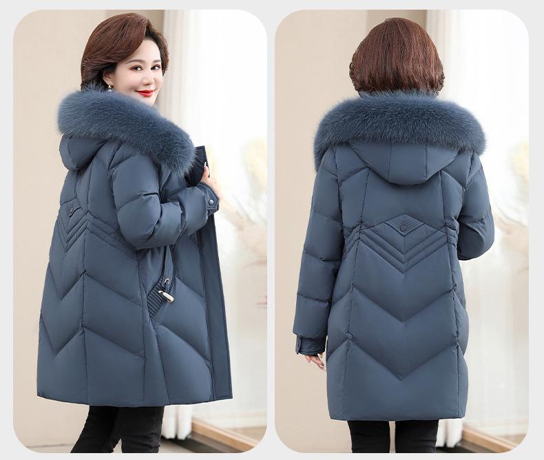 Volar en el Cuello de Piel de Zorro Ártico Mamá Chaqueta de Plumón Ropa de Invierno 2025 Nuevo Talla Grande Mediana Edad y Moda para Ancianos Ropa de Mujer