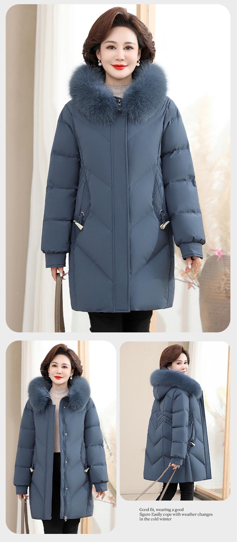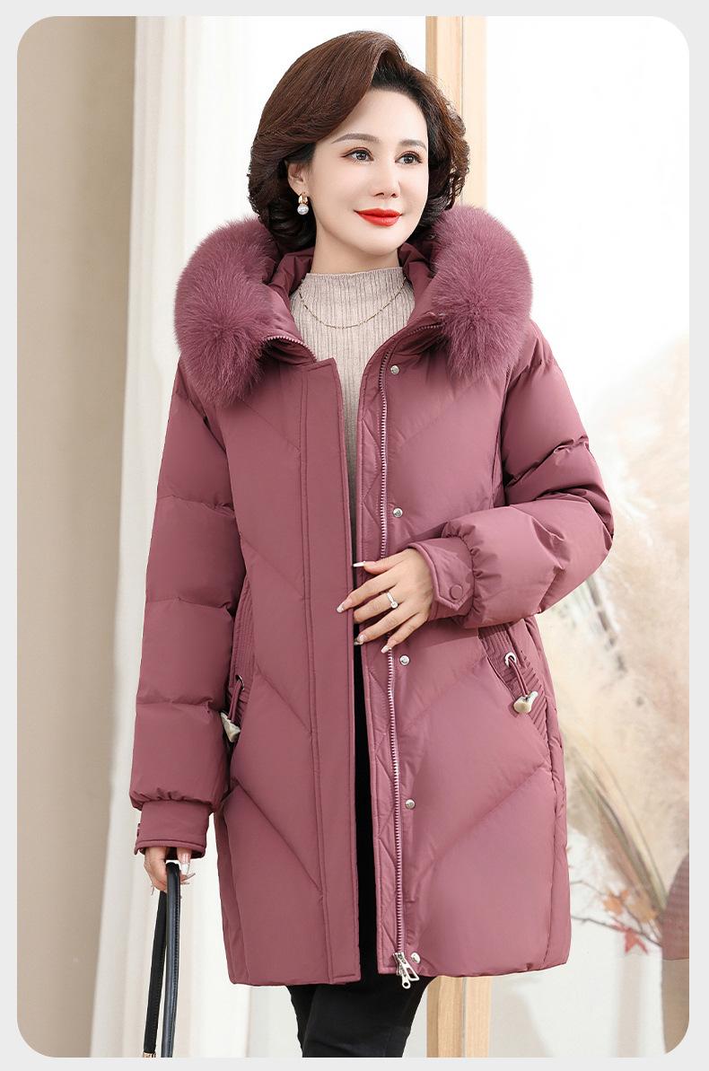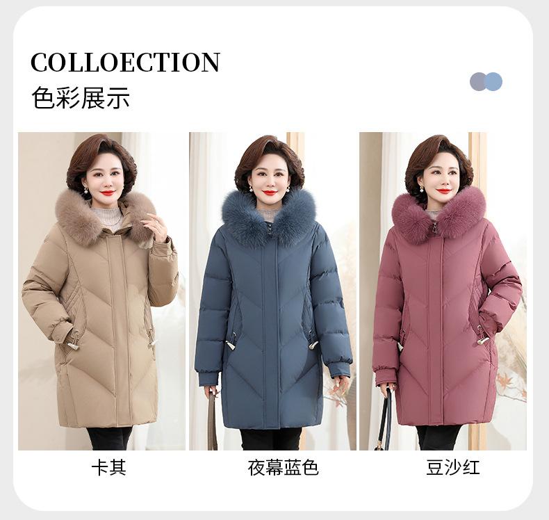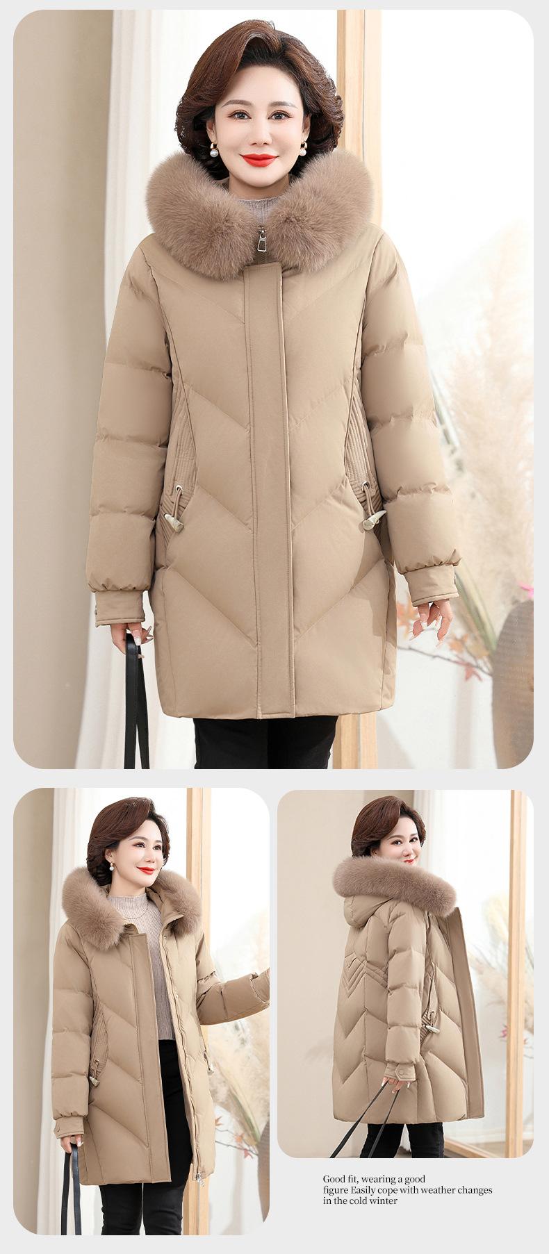 Volar en el Cuello de Piel de Zorro Ártico Mamá Chaqueta de Plumón Ropa de Invierno 2025 Nuevo Talla Grande Mediana Edad y Moda para Ancianos Ropa de Mujer