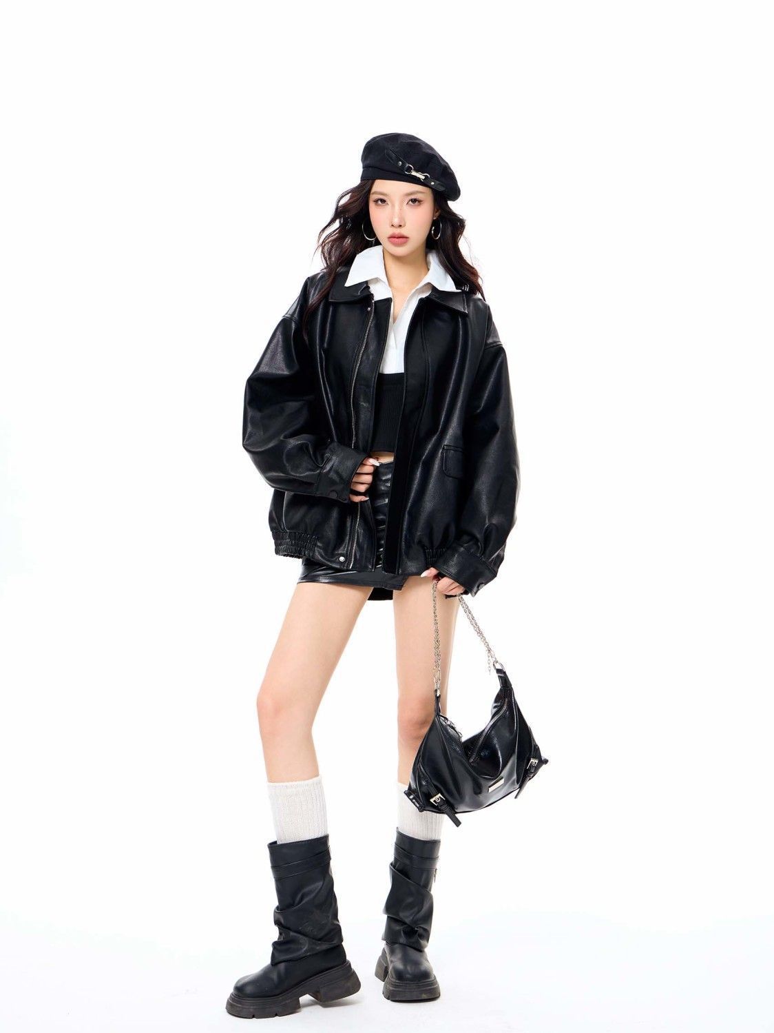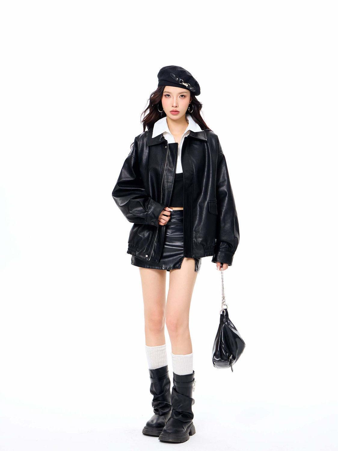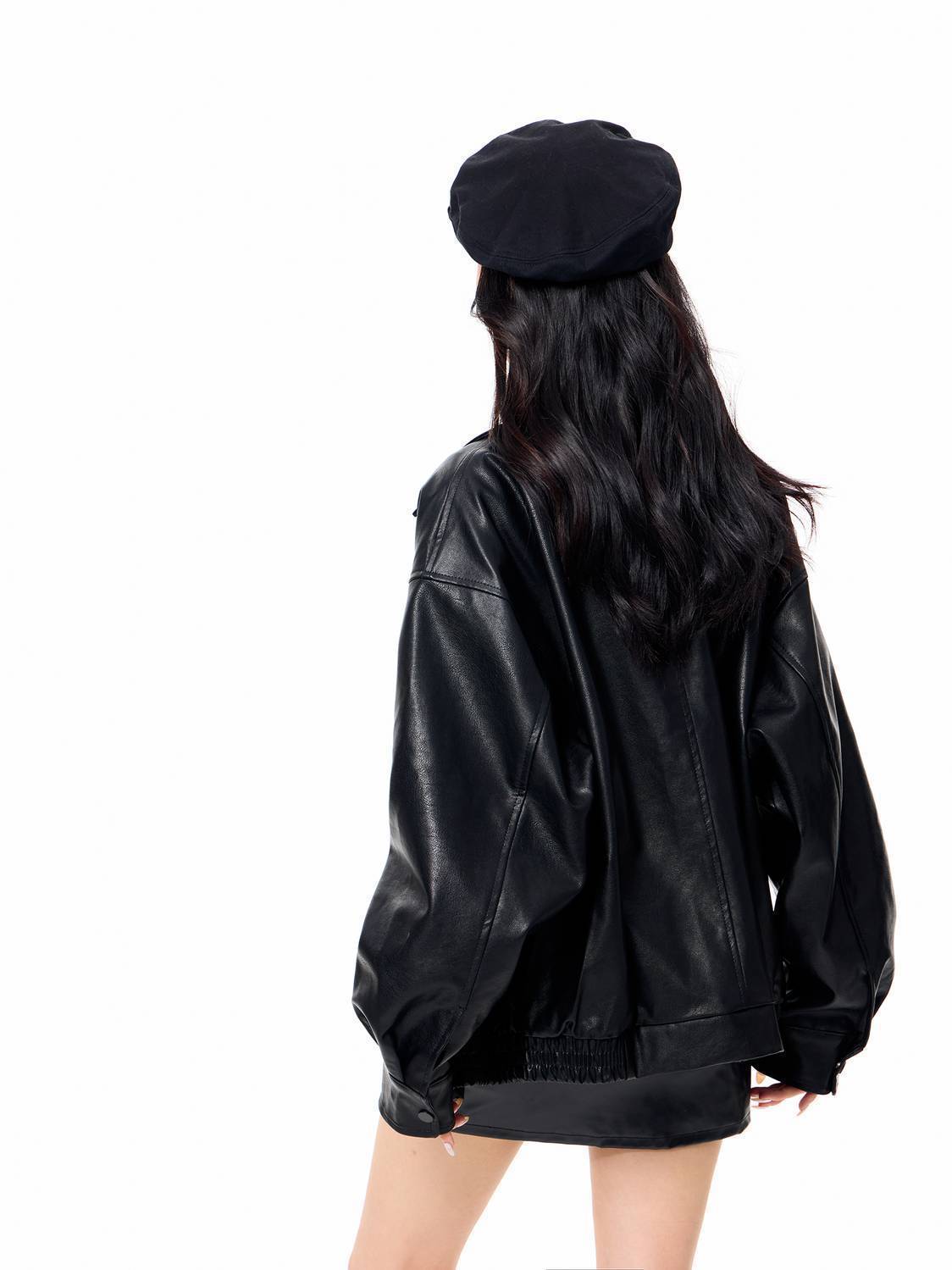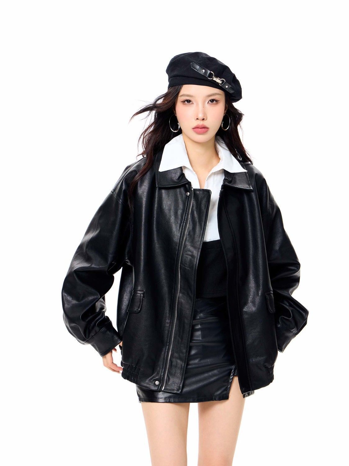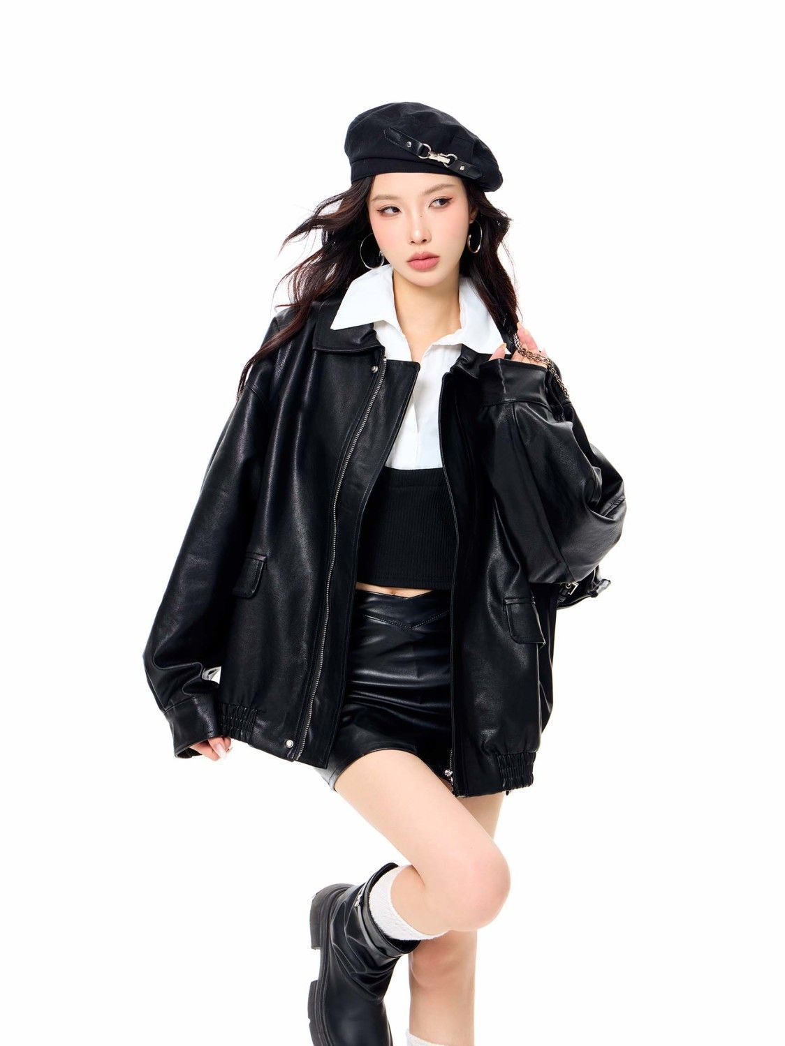 Chaqueta de Cuero Marrón Simple de Moda de Estilo Coreano de Alta Gama para Mujer Otoño 2025 Nuevo Estilo Motociclista Chaqueta de PU de Tendencia