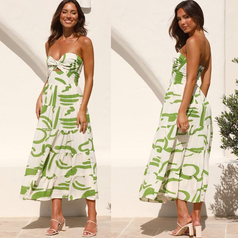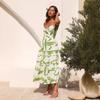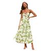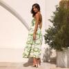 Europeo y americano transfronterizo 2024 verano para mujer cuello en V espalda descubierta con cordones falda amplia larga estampado tirantes top tubo sexy mono