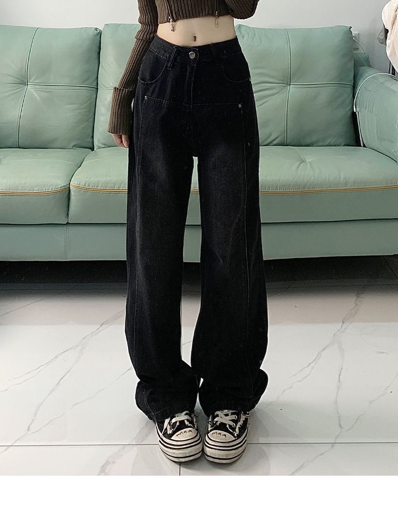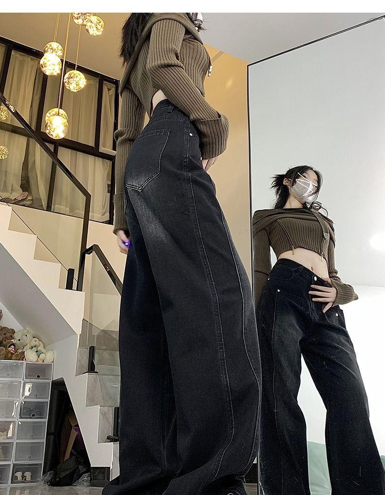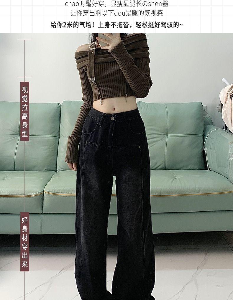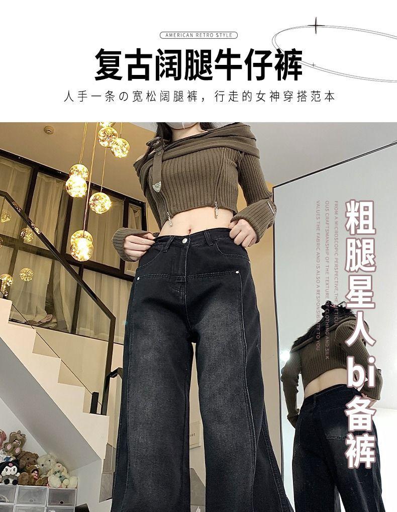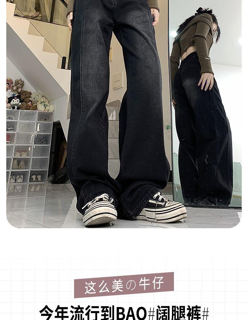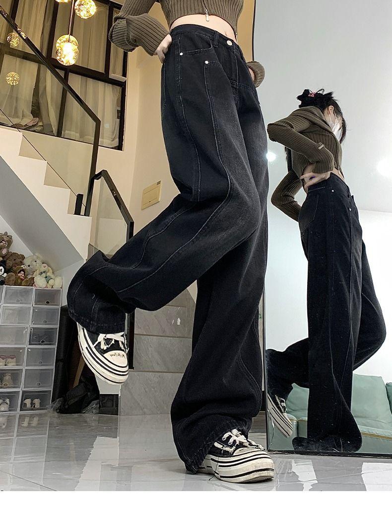 Pantalones vaqueros negros y grises para mujer, de otoño, nuevos, de talla grande, para chica gordita, de cintura alta, sueltos, rectos, adelgazantes, con forma de pera, de pierna ancha.