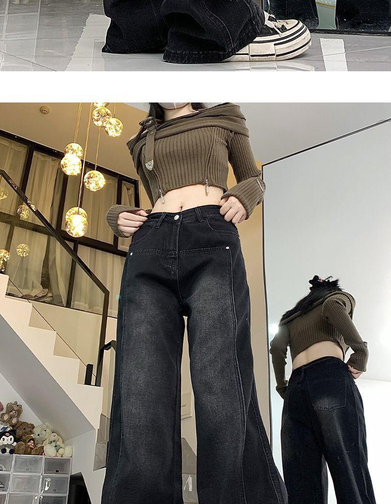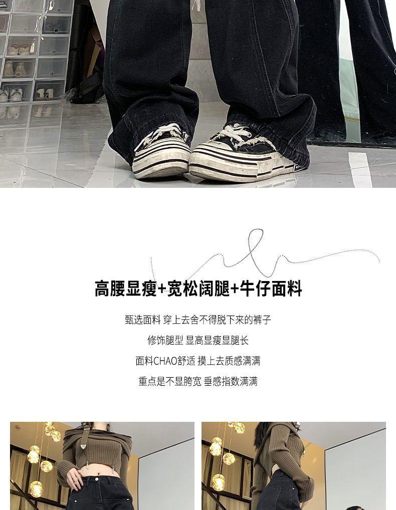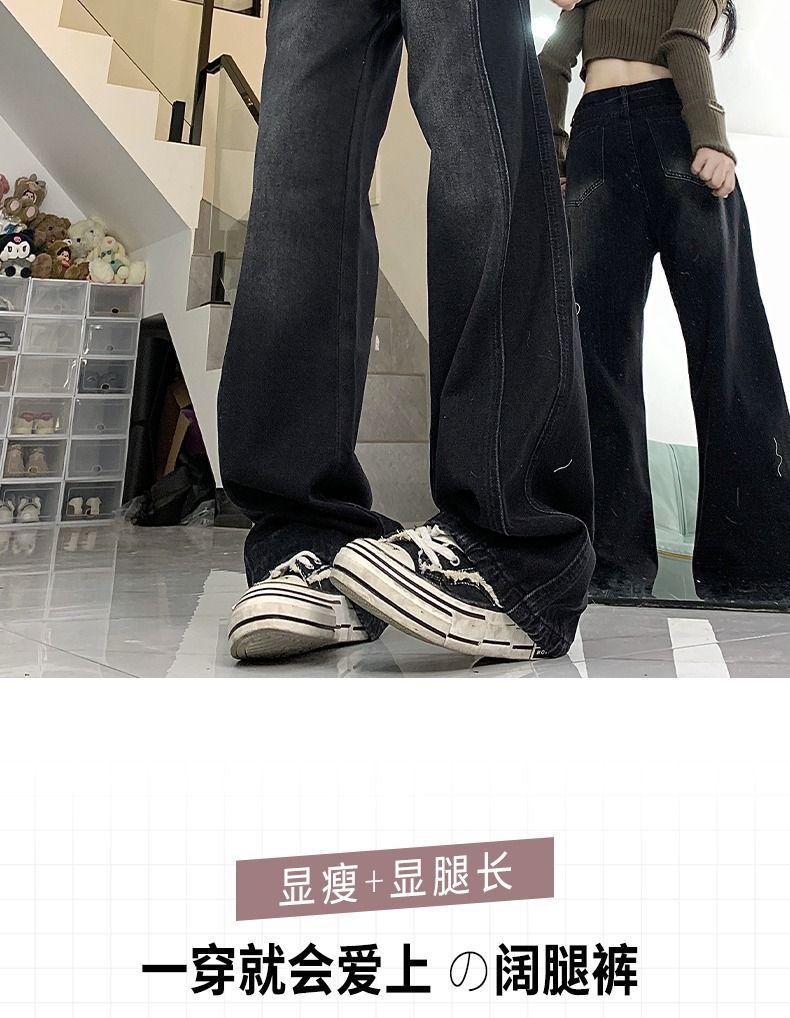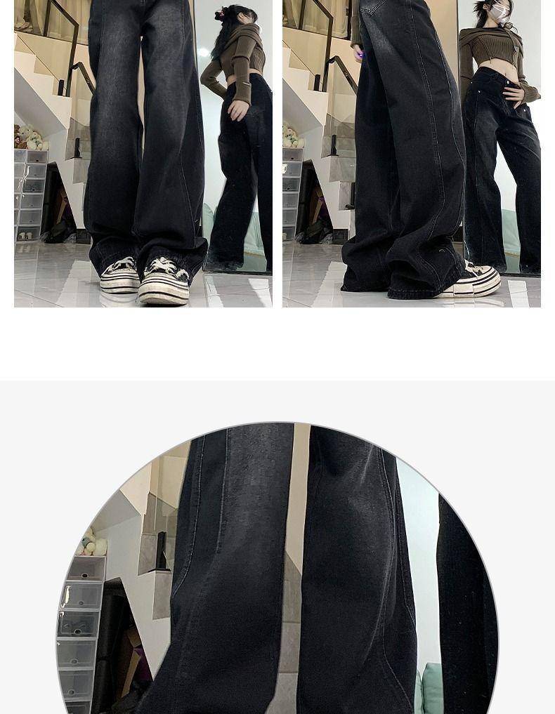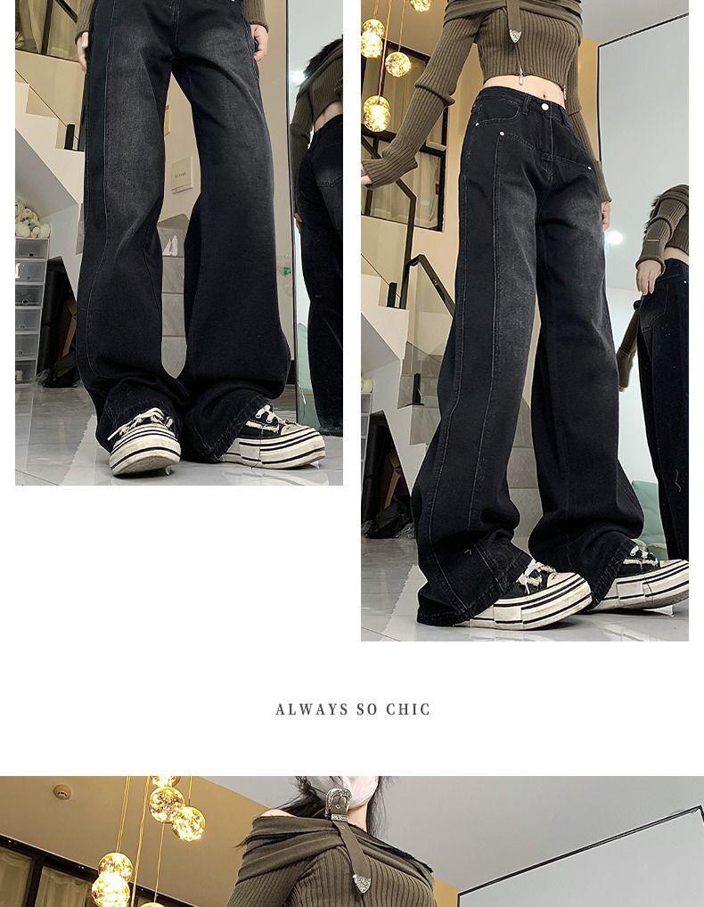 Pantalones vaqueros negros y grises para mujer, de otoño, nuevos, de talla grande, para chica gordita, de cintura alta, sueltos, rectos, adelgazantes, con forma de pera, de pierna ancha.