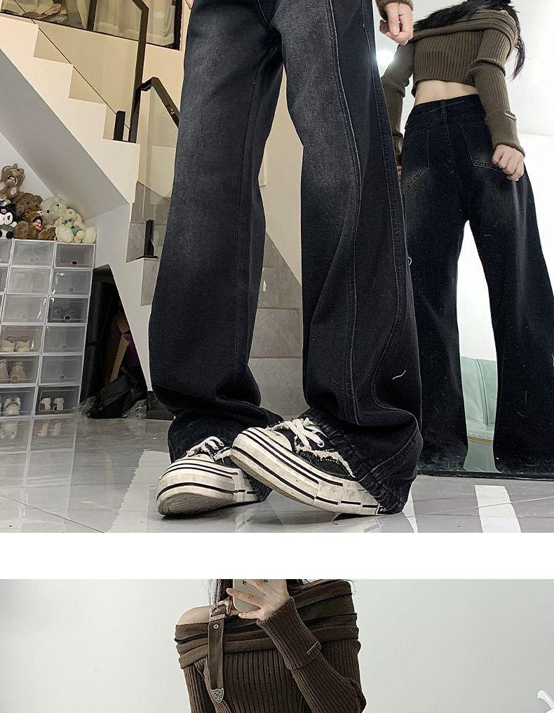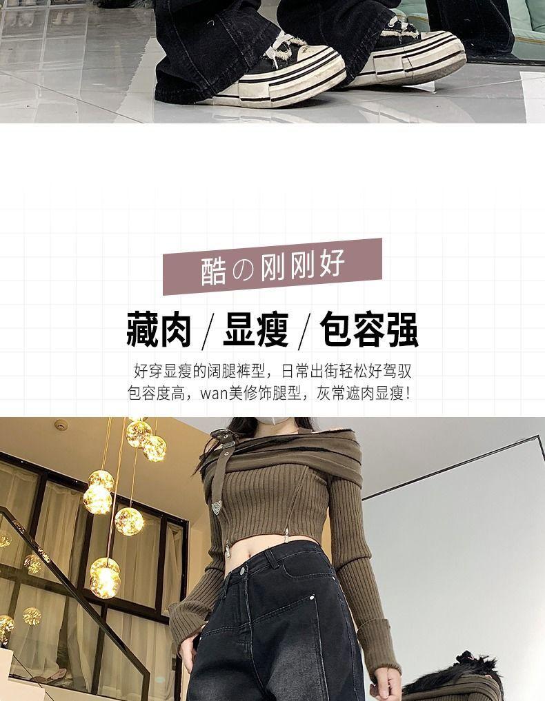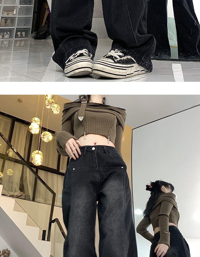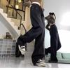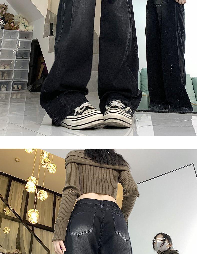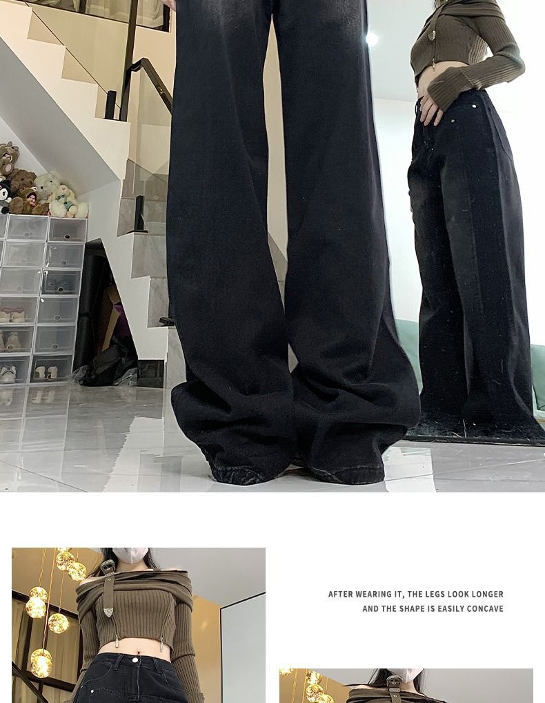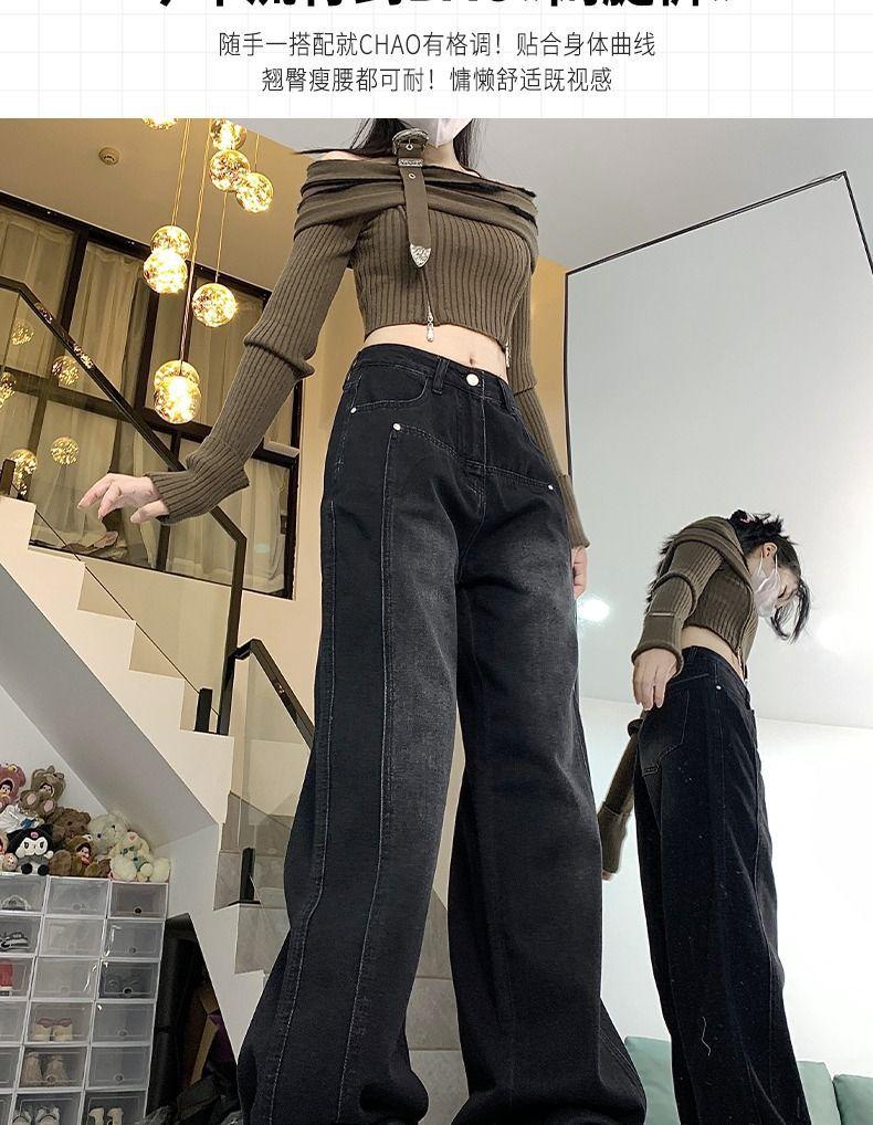 Pantalones vaqueros negros y grises para mujer, de otoño, nuevos, de talla grande, para chica gordita, de cintura alta, sueltos, rectos, adelgazantes, con forma de pera, de pierna ancha.