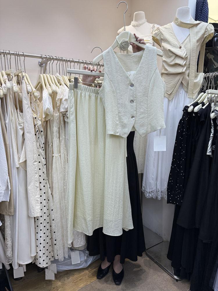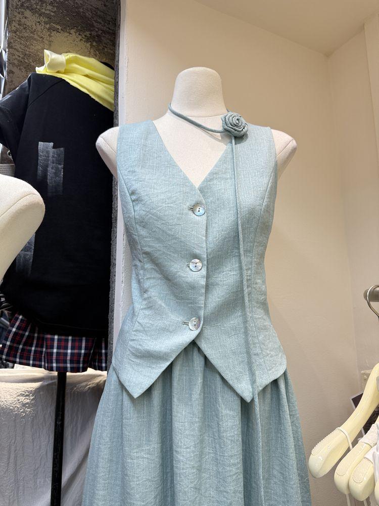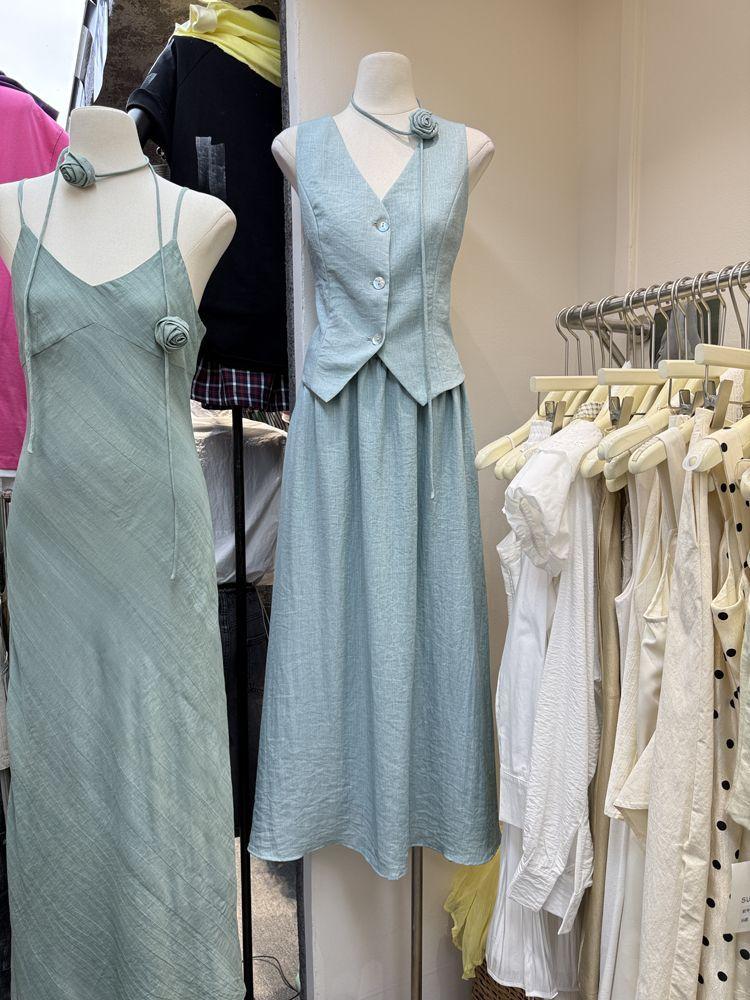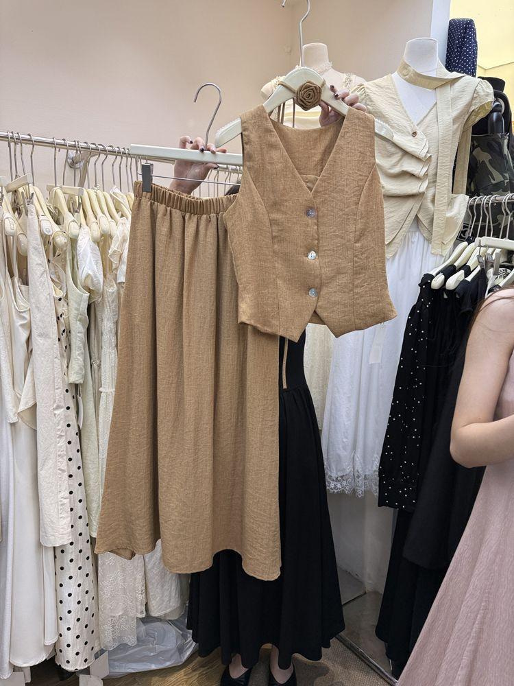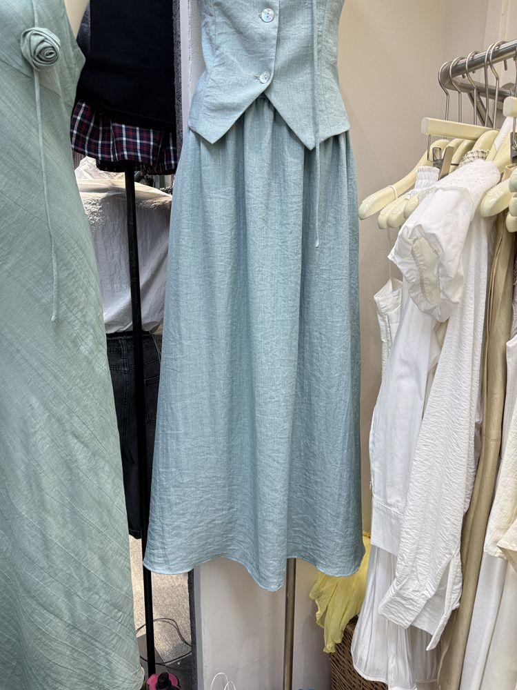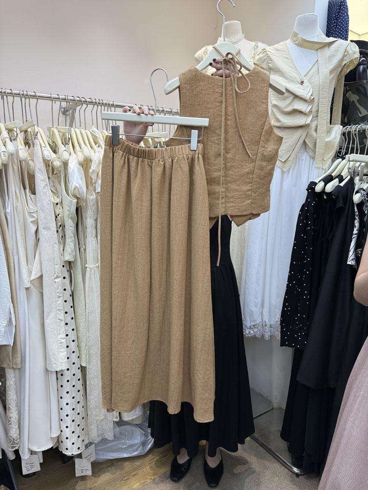 Apricot top, Khaki top, Lake blue top, Apricot skirt, Khaki skirt, Lake blue skirt, Apricot top + apricot skir...