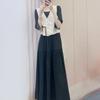 Conjunto de dos piezas de verano 2025 estilo coreano ajustado con top tipo chaleco de tirantes con flores y falda