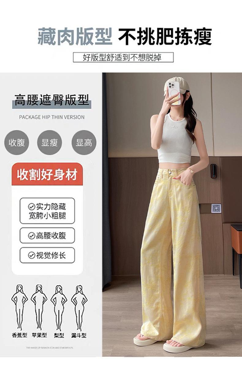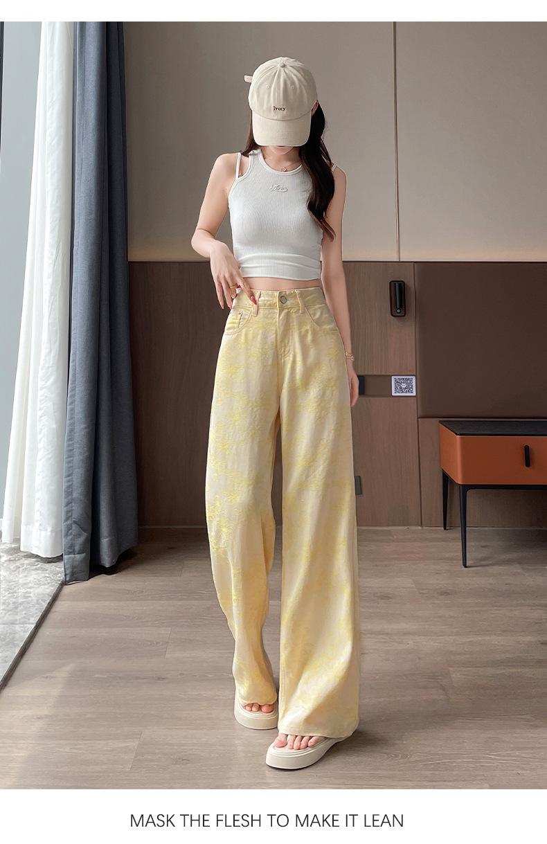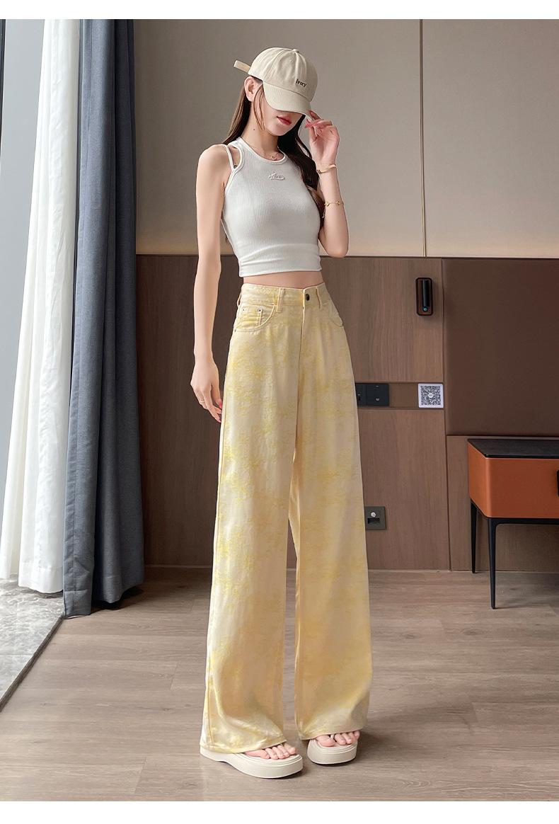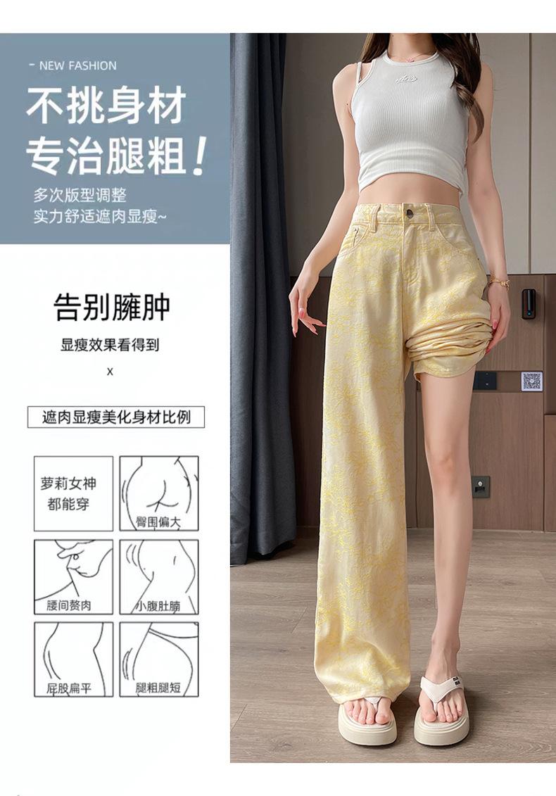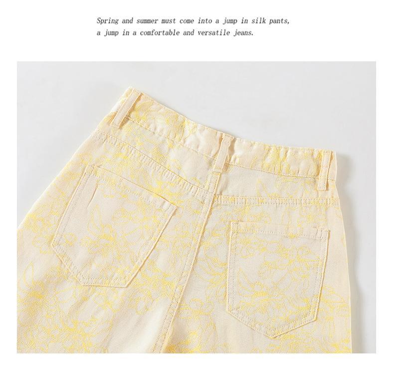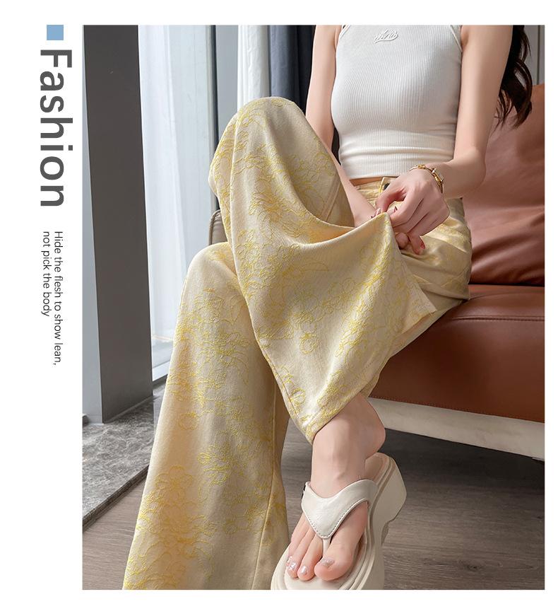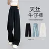 Jeans Beige de Tencel Estampados de Pierna Ancha para Mujer Verano 2025 Delgados Super Populares Figura de Pera Pantalones Drapeados de Seda Helada