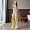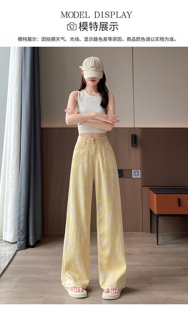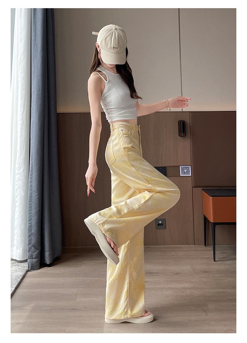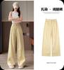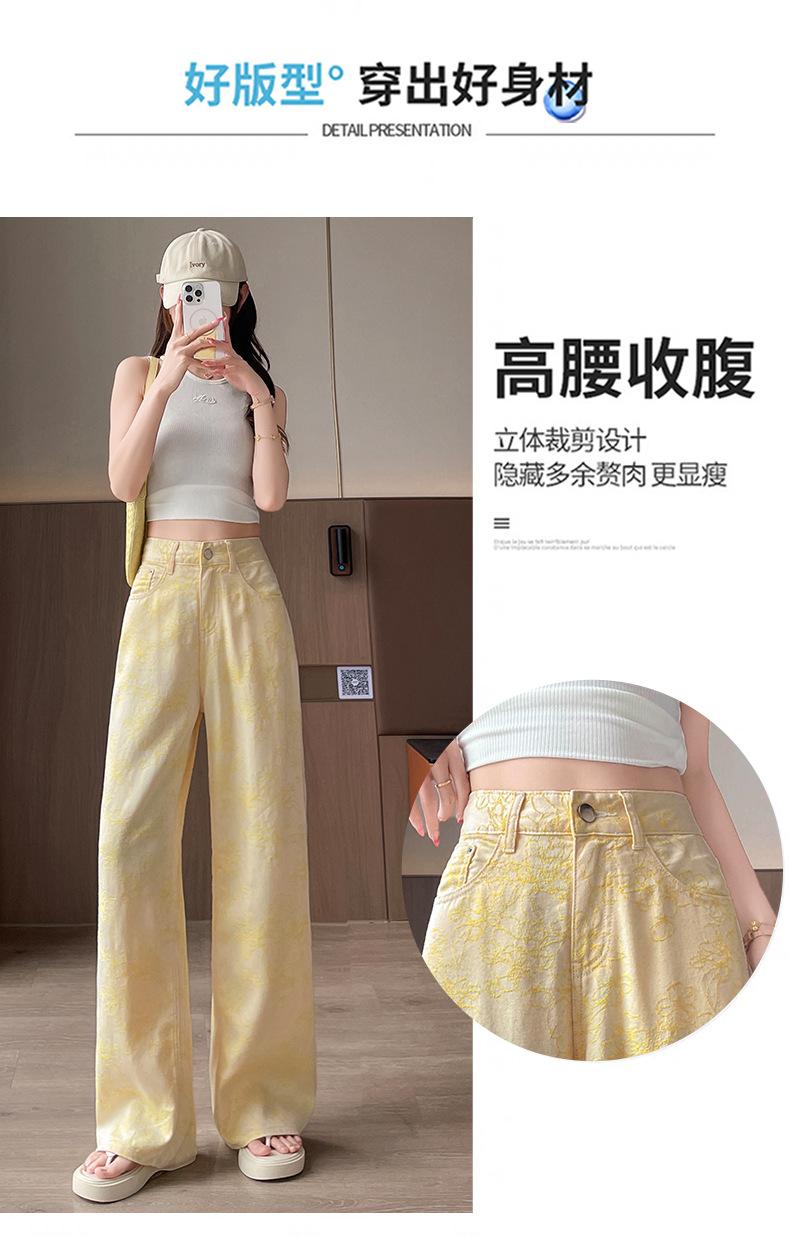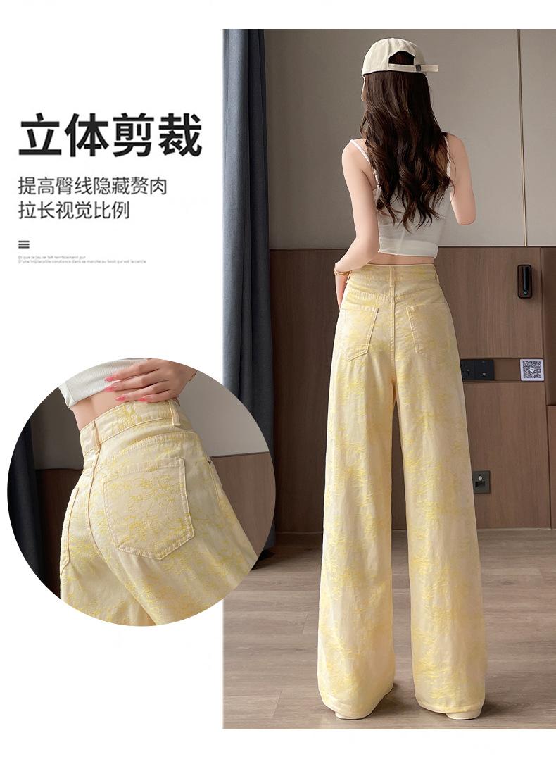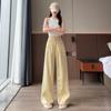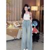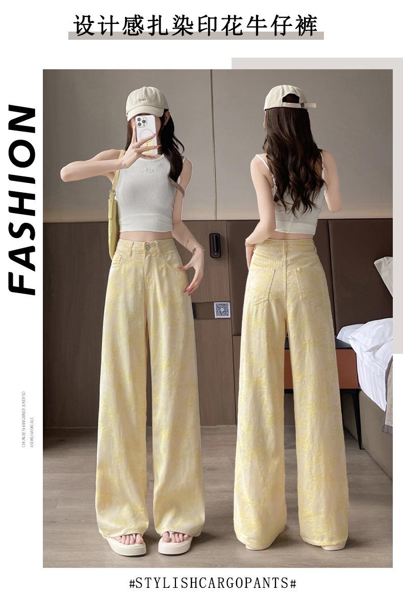 Jeans Beige de Tencel Estampados de Pierna Ancha para Mujer Verano 2025 Delgados Super Populares Figura de Pera Pantalones Drapeados de Seda Helada