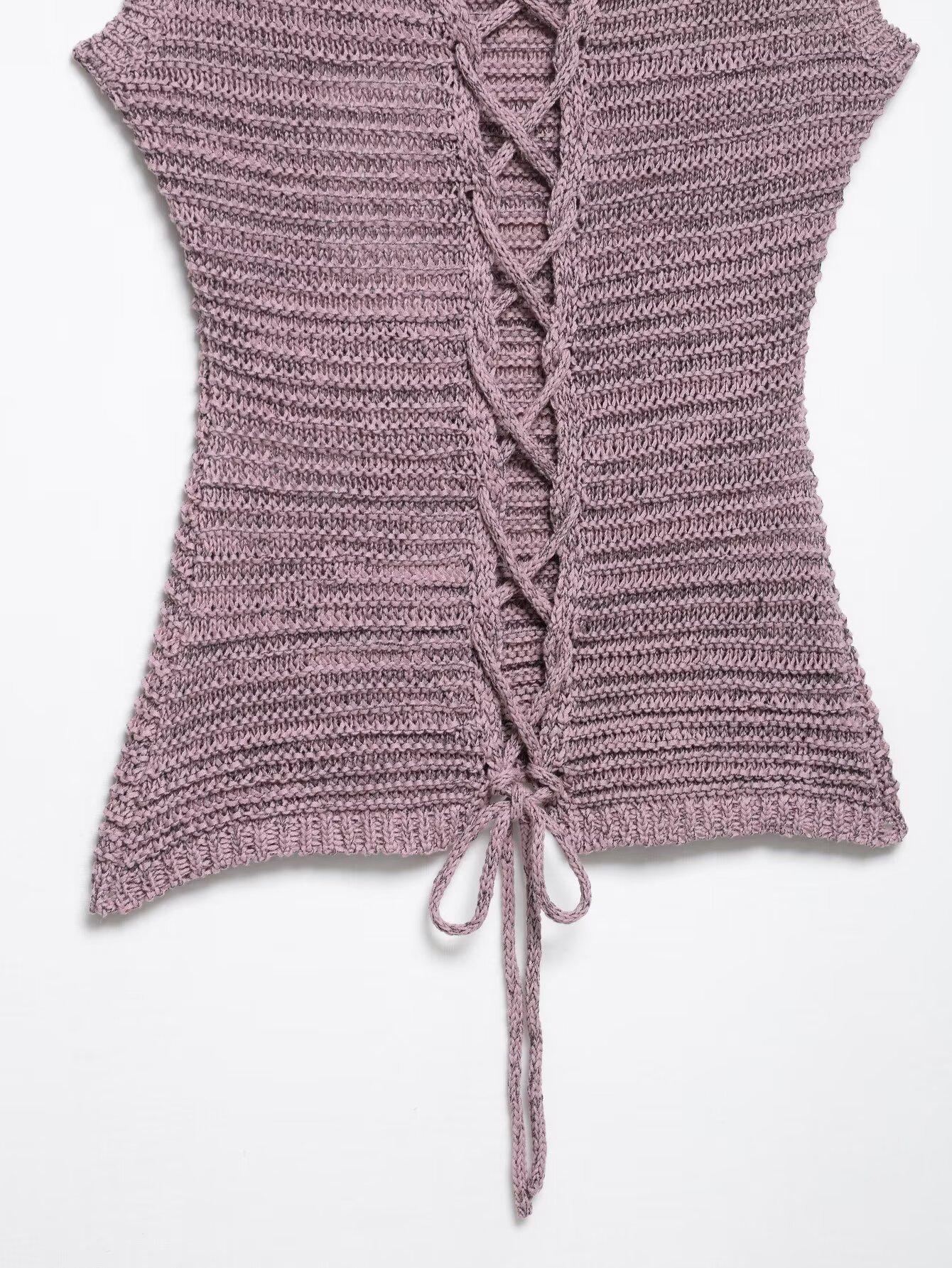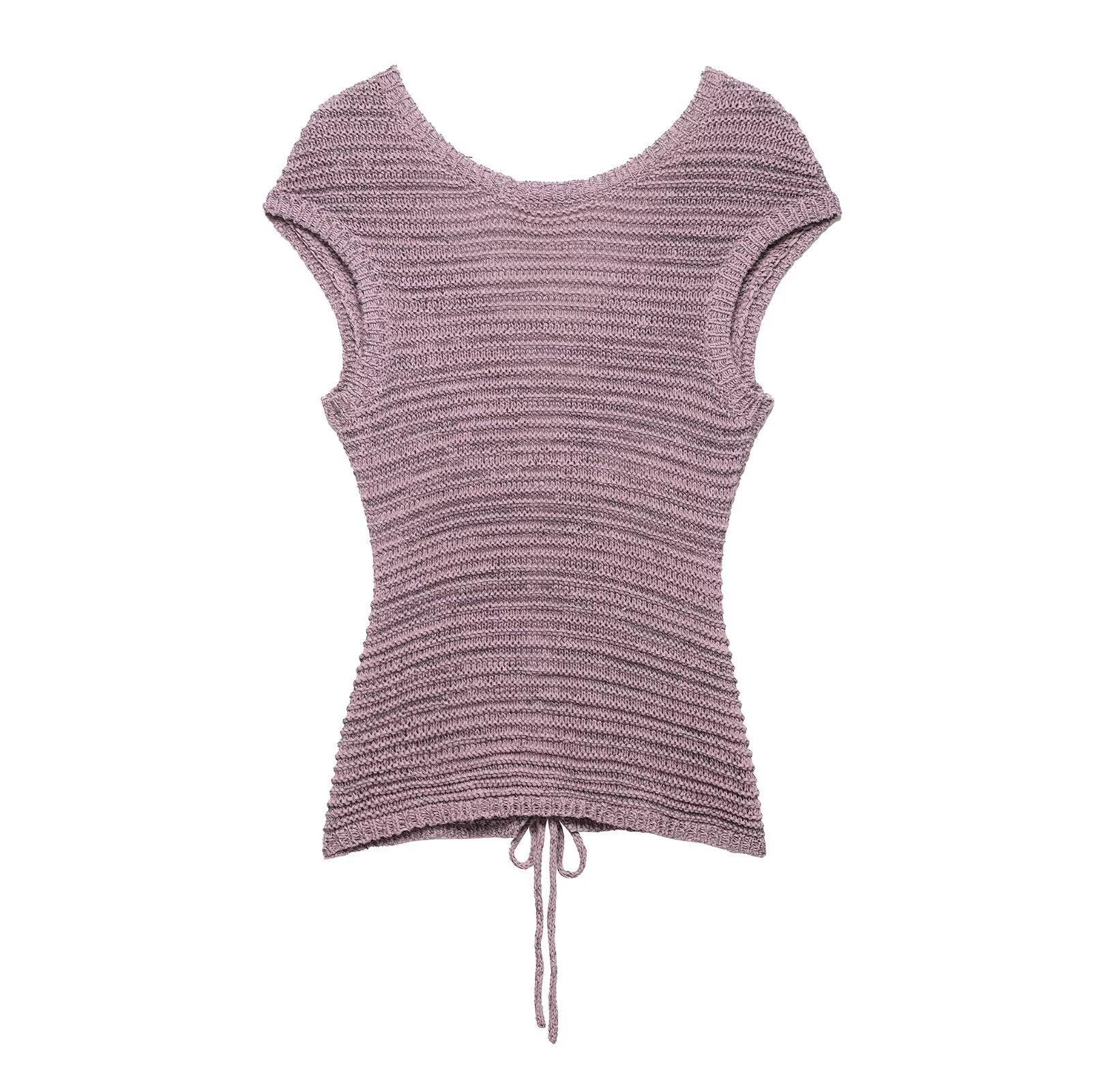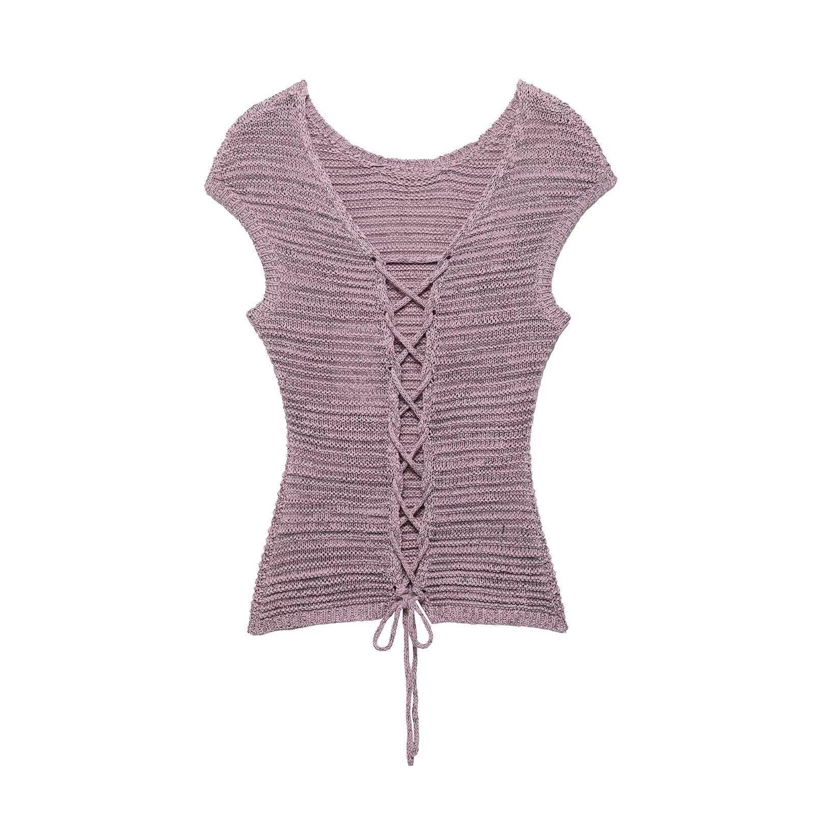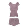 Ropa de Mujer de Exportación Europea y Americana 2025 Nuevo Estilo de Verano Sexy Diseño de Encaje de Espalda Descubierta Color Puro Top de Punto Traje de Shorts