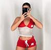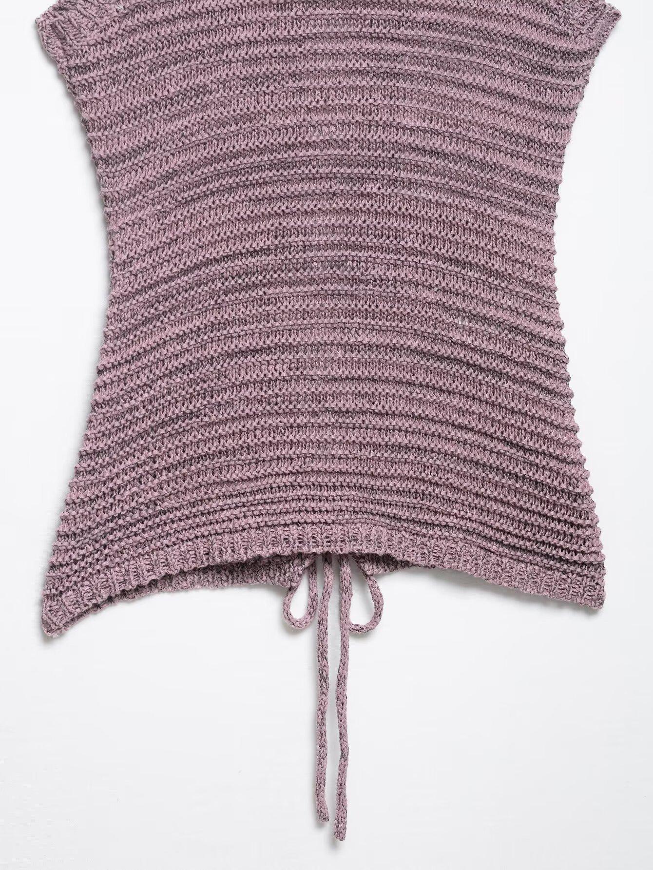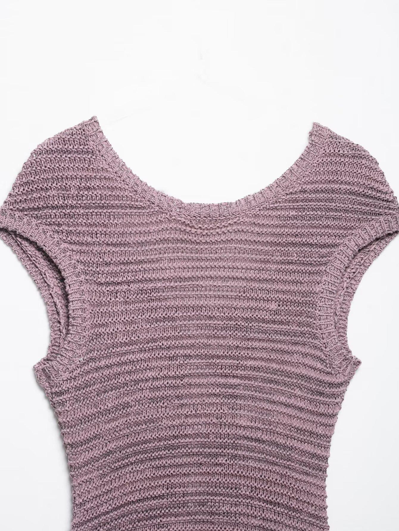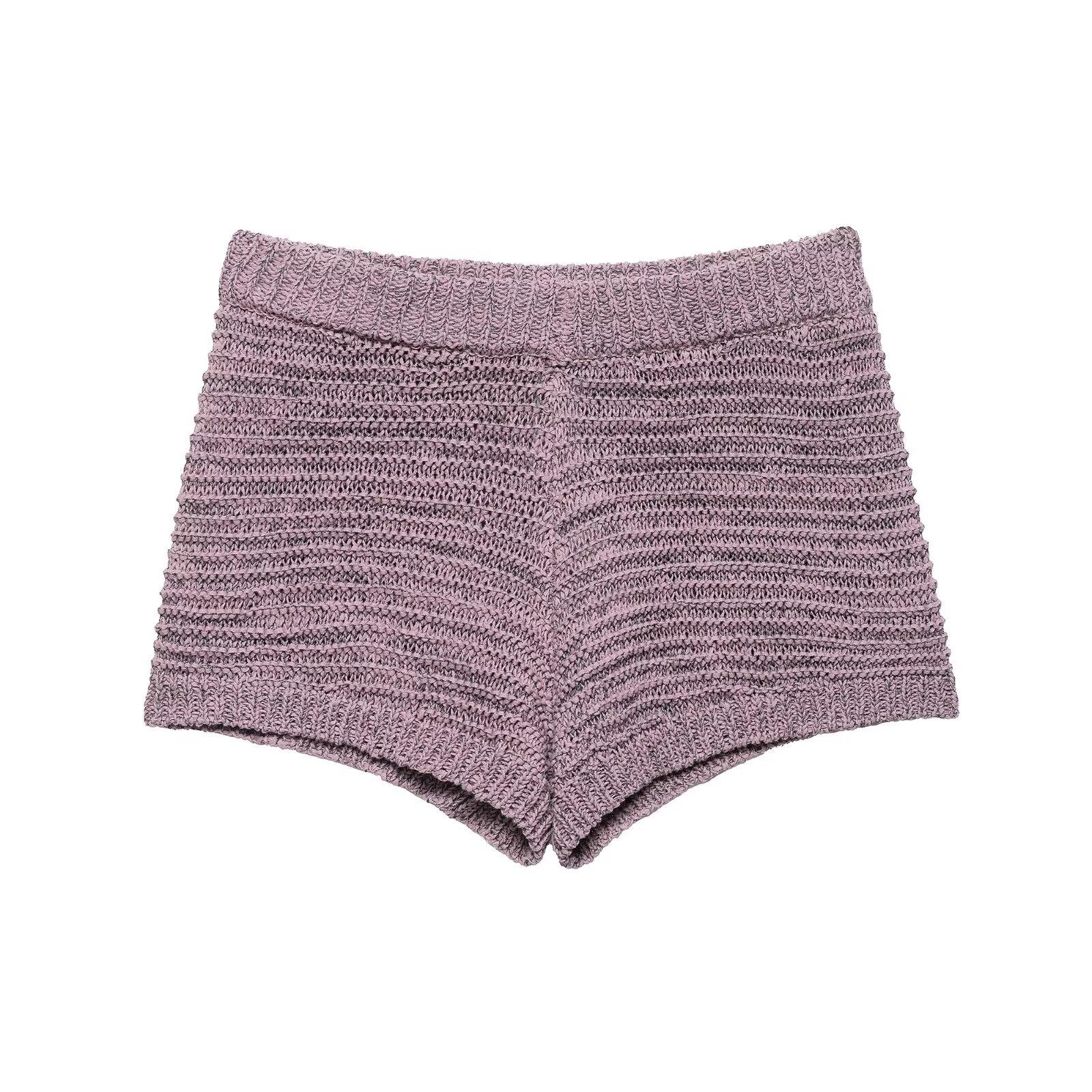 Ropa de Mujer de Exportación Europea y Americana 2025 Nuevo Estilo de Verano Sexy Diseño de Encaje de Espalda Descubierta Color Puro Top de Punto Traje de Shorts