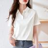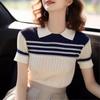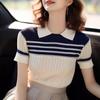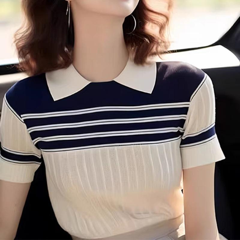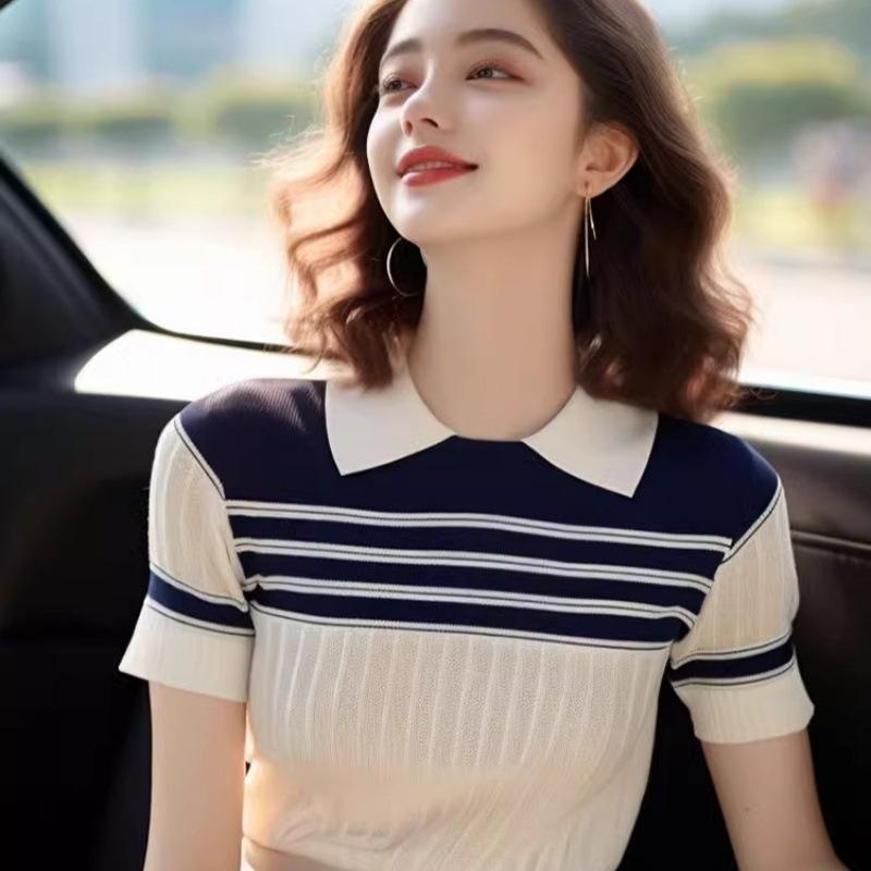 Verano 2025 Estilo Occidental Chic Estilo Top Texturizado Super Bonito Camisa Polo Rayada Camiseta de Manga Corta para Mujer
