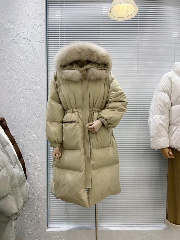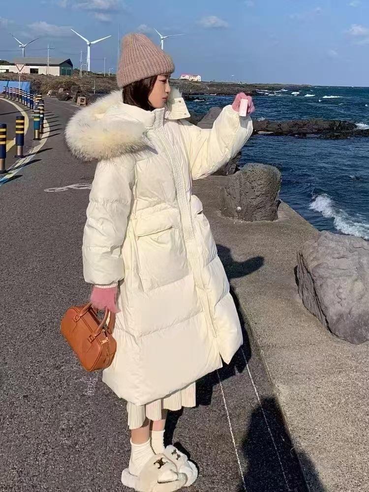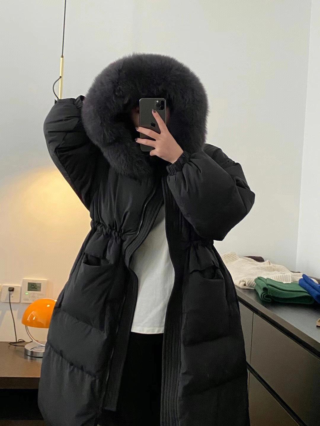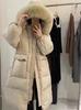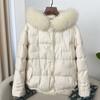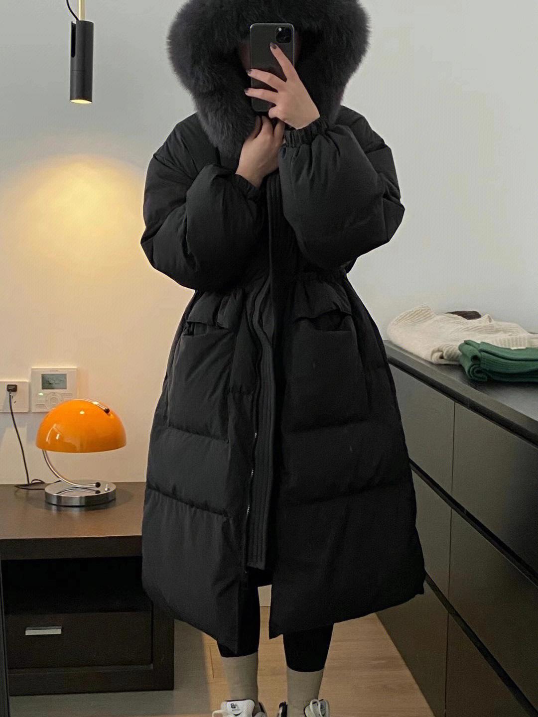 Abrigo Largo de Plumas con Cuello de Piel de Zorro para Mujer 2025 Invierno Engrosado Dulce Entallado en la Cintura Plumón de Pato Blanco Resistente al Frío Adelgazante
