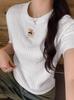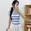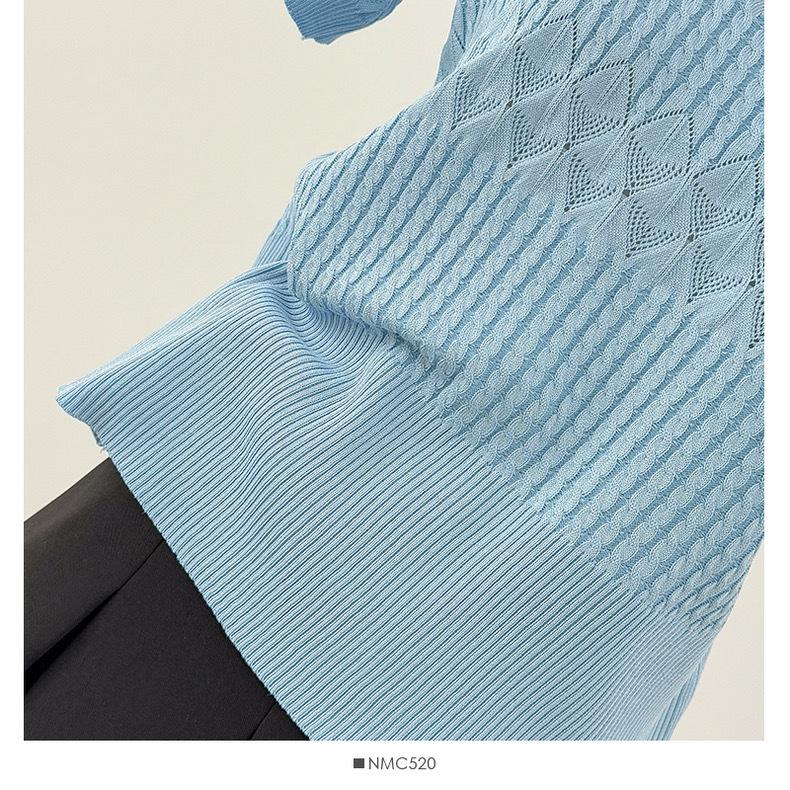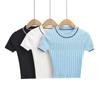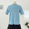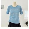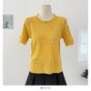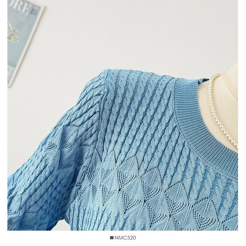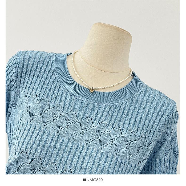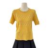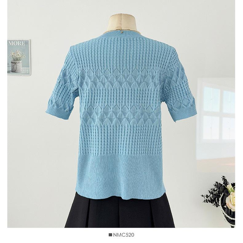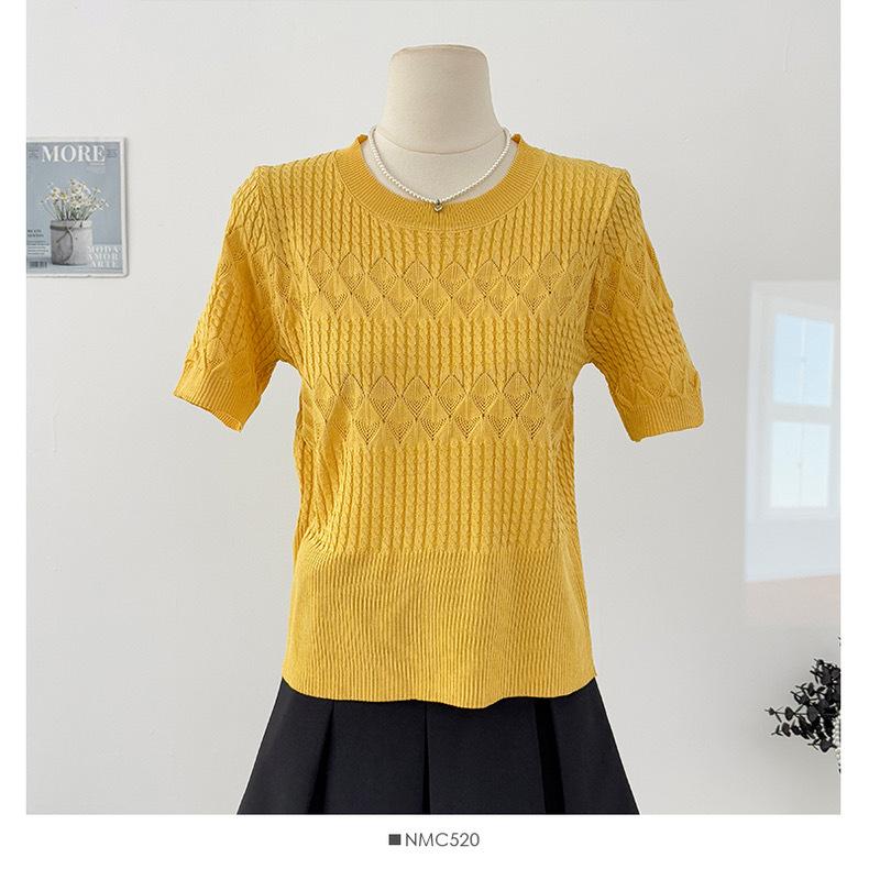 Top de Punto de Manga Corta de Crochet Calado de Color Sólido Estilo Coreano Verano 2025 Nuevo Cuello Redondo Ajustado Suéter Ajustado para Mujer