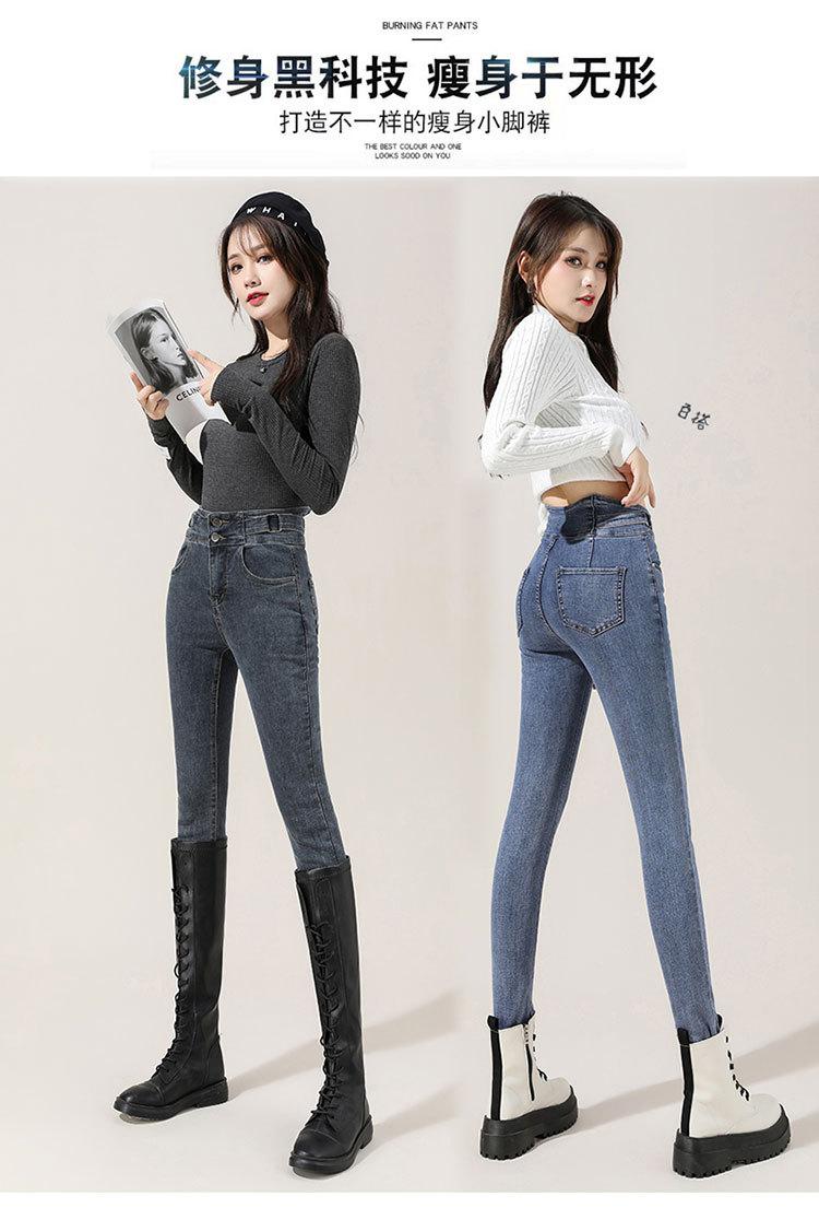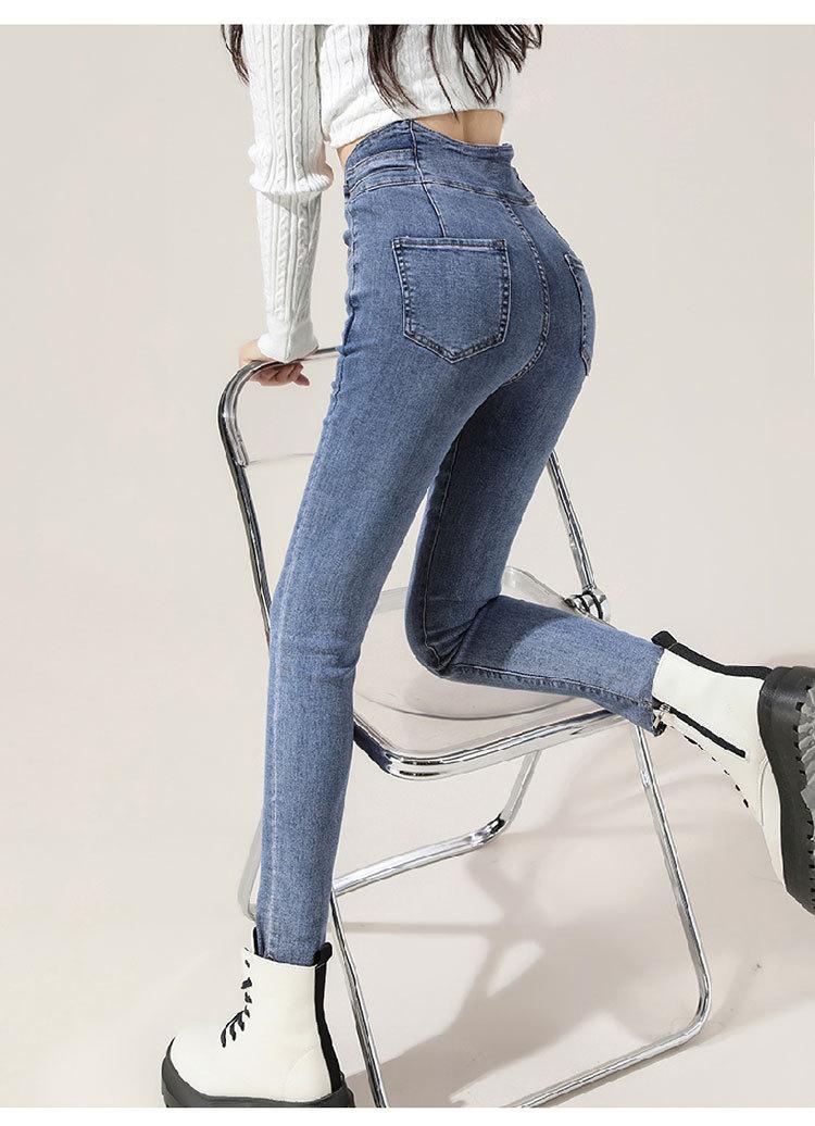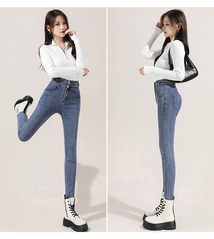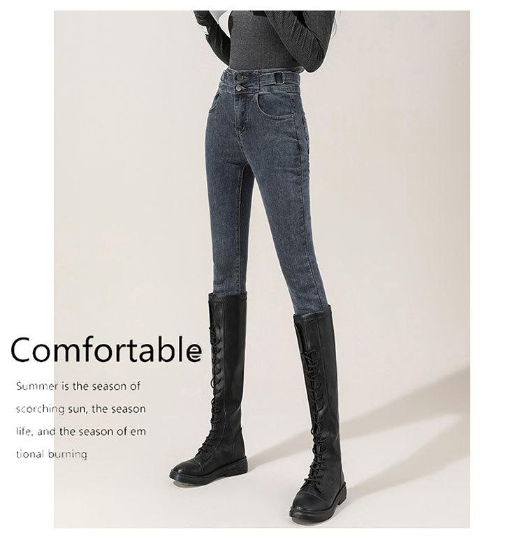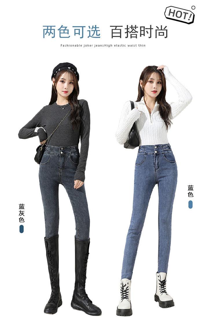 Jeans de Mujer Primavera 2025 3139 Pantalones Skinny Bicolores Pantalones Recortados de Cintura Alta Elásticos para Mujer Estilo Commuter