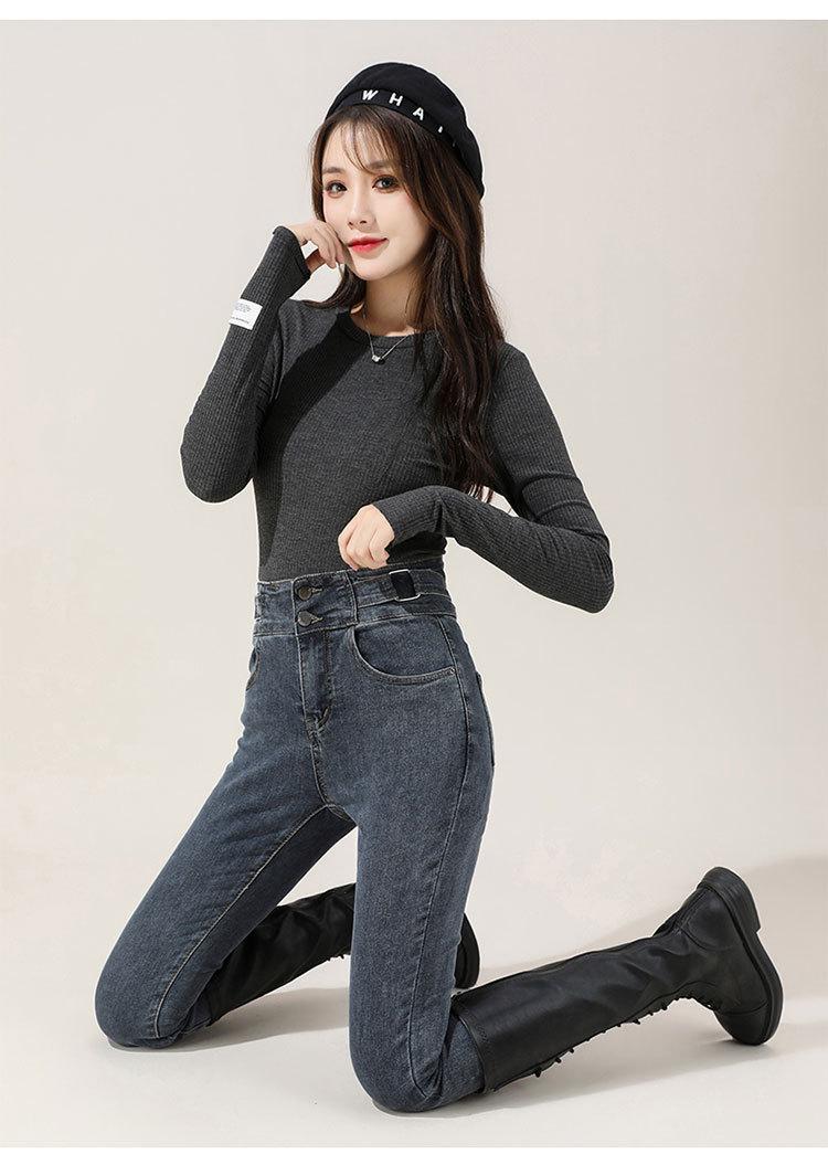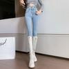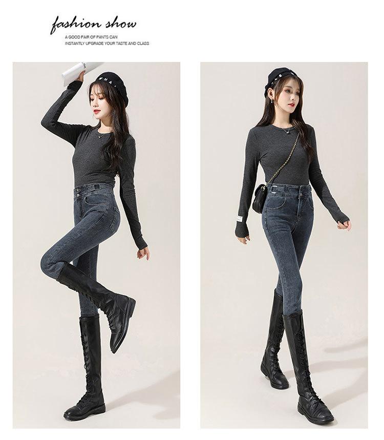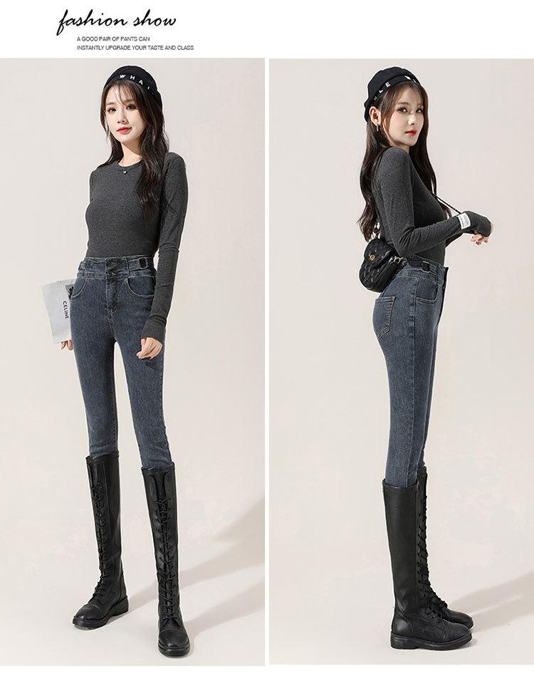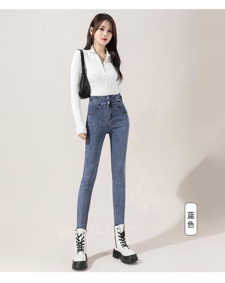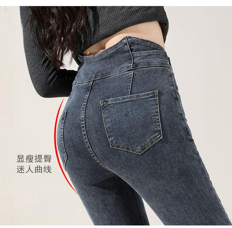 Jeans de Mujer Primavera 2025 3139 Pantalones Skinny Bicolores Pantalones Recortados de Cintura Alta Elásticos para Mujer Estilo Commuter