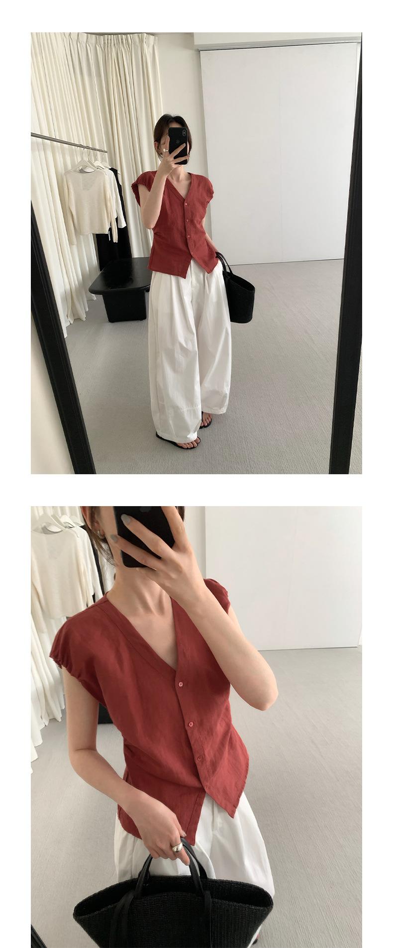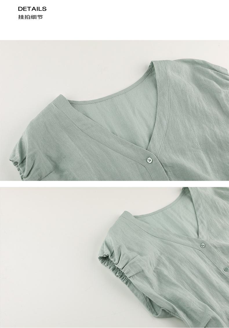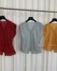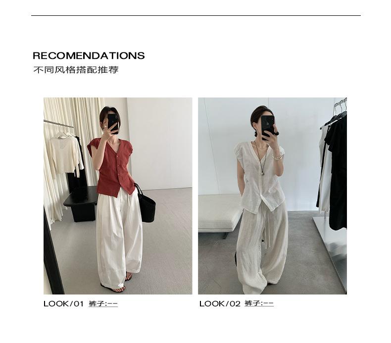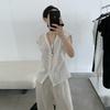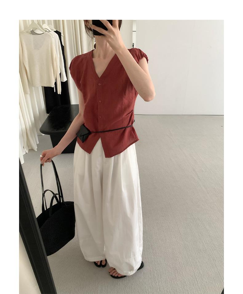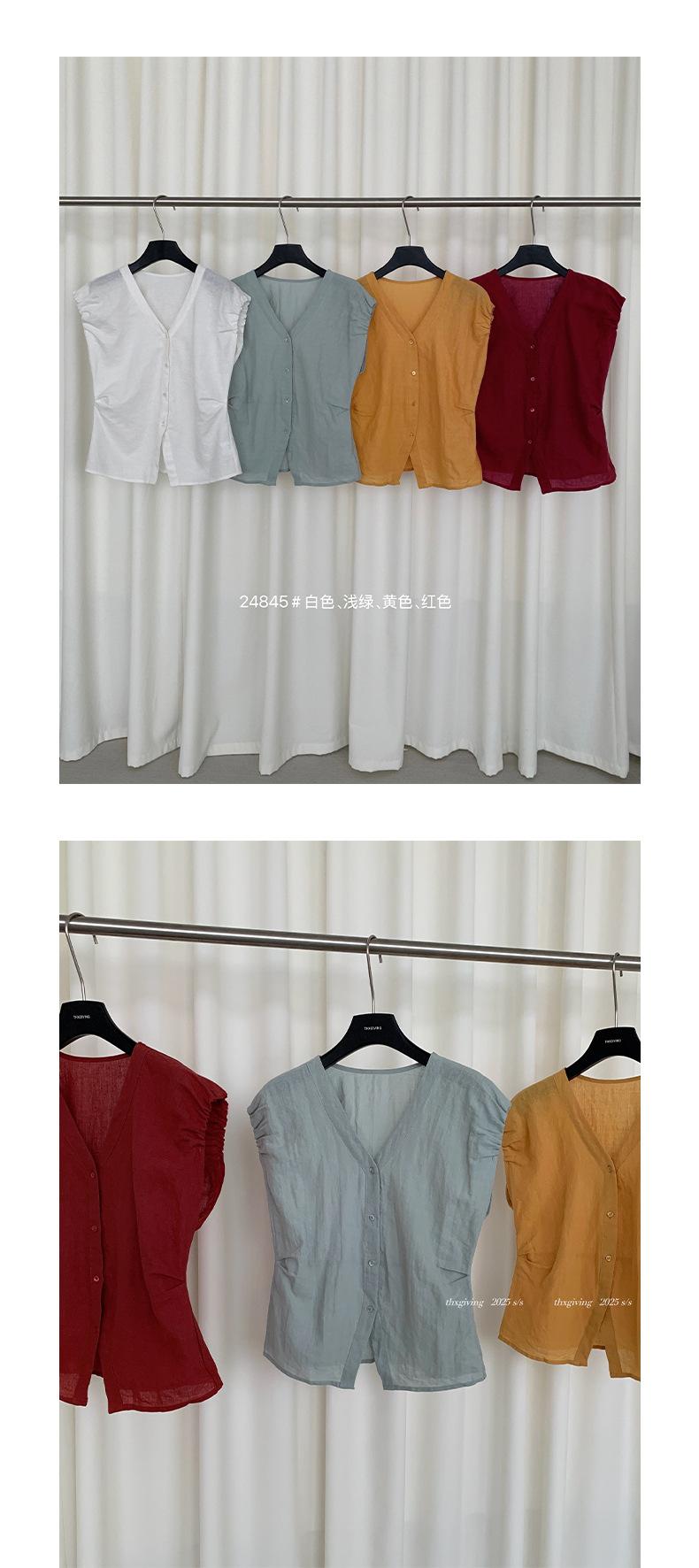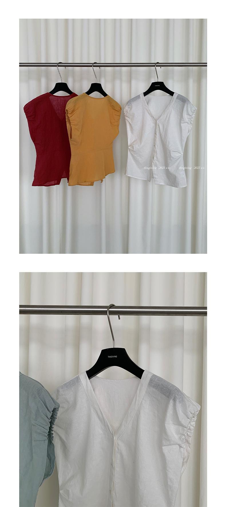 TG Elegante Camisa de Hombro con Puño Grande Plisado para Viajero Mujer 2025 Verano Nuevo Top con Hebilla Cuello en V 24845