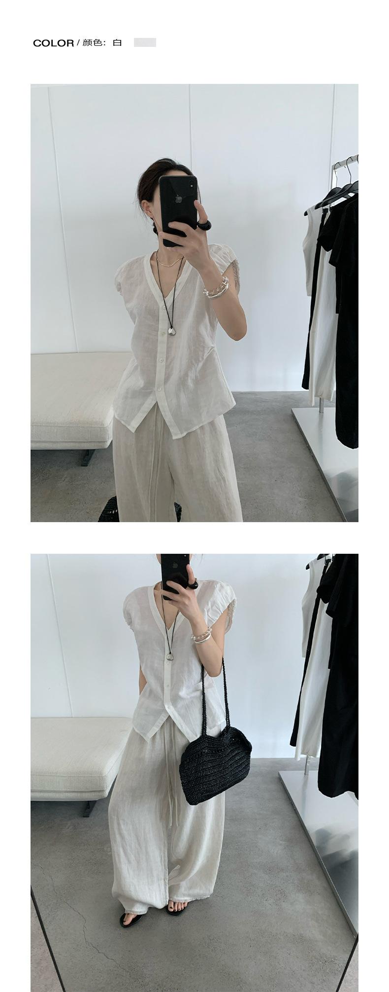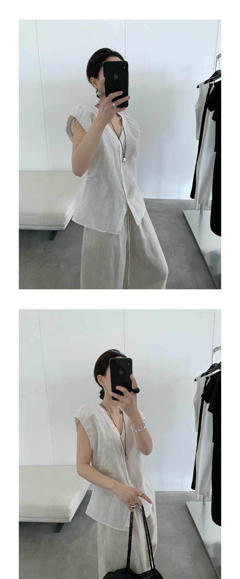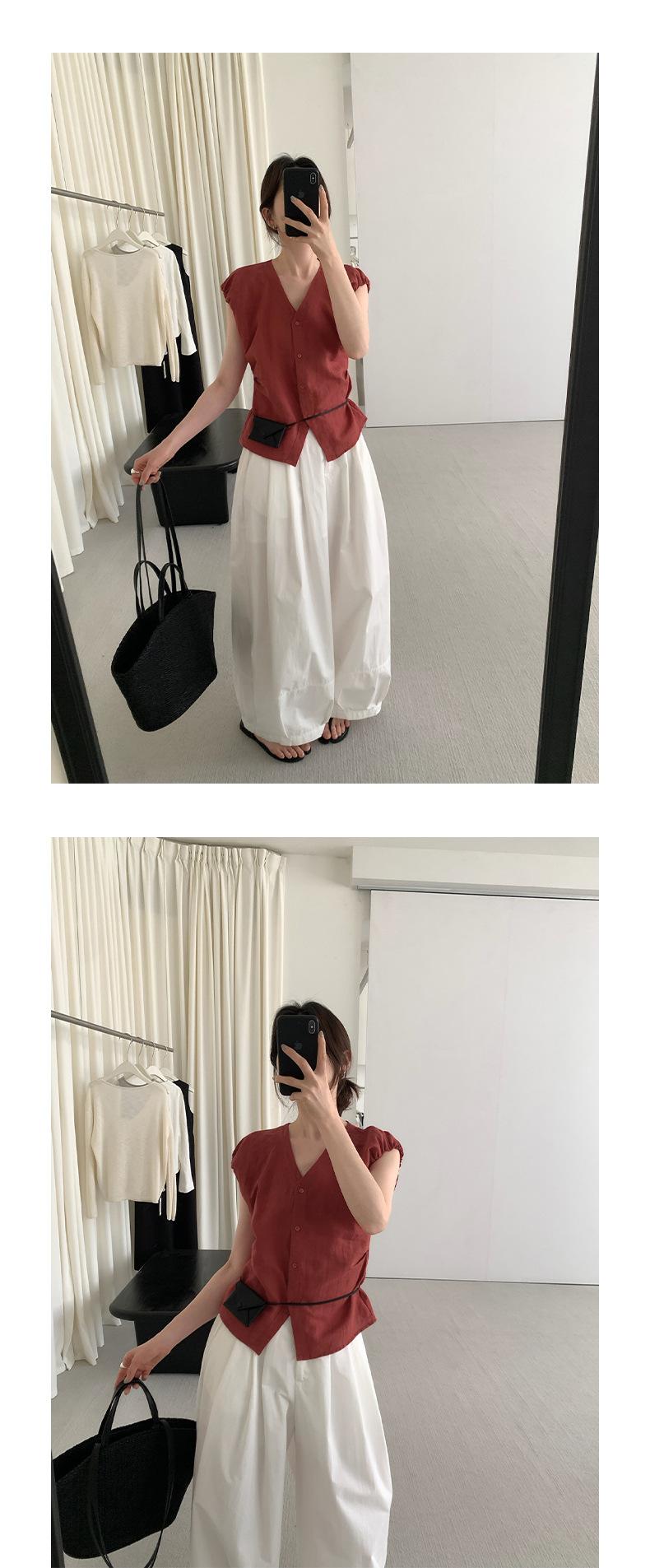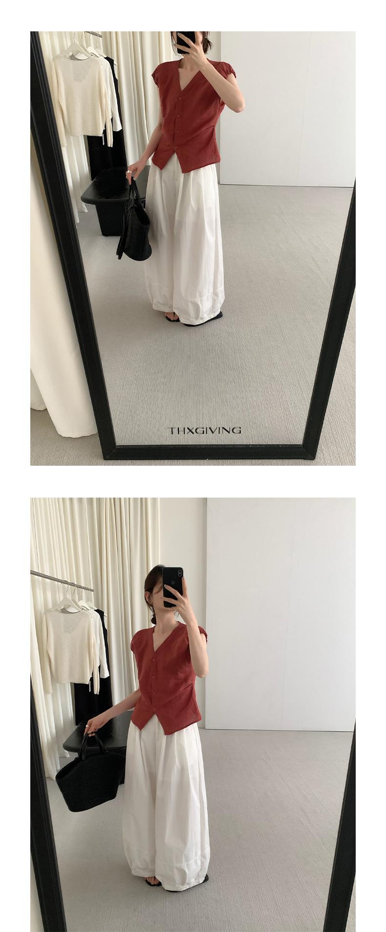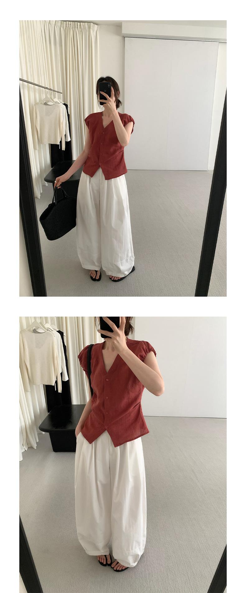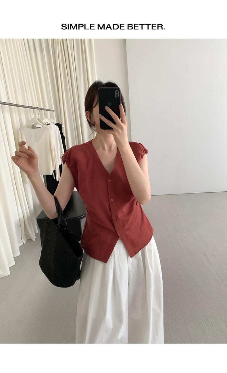 TG Elegante Camisa de Hombro con Puño Grande Plisado para Viajero Mujer 2025 Verano Nuevo Top con Hebilla Cuello en V 24845