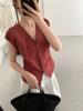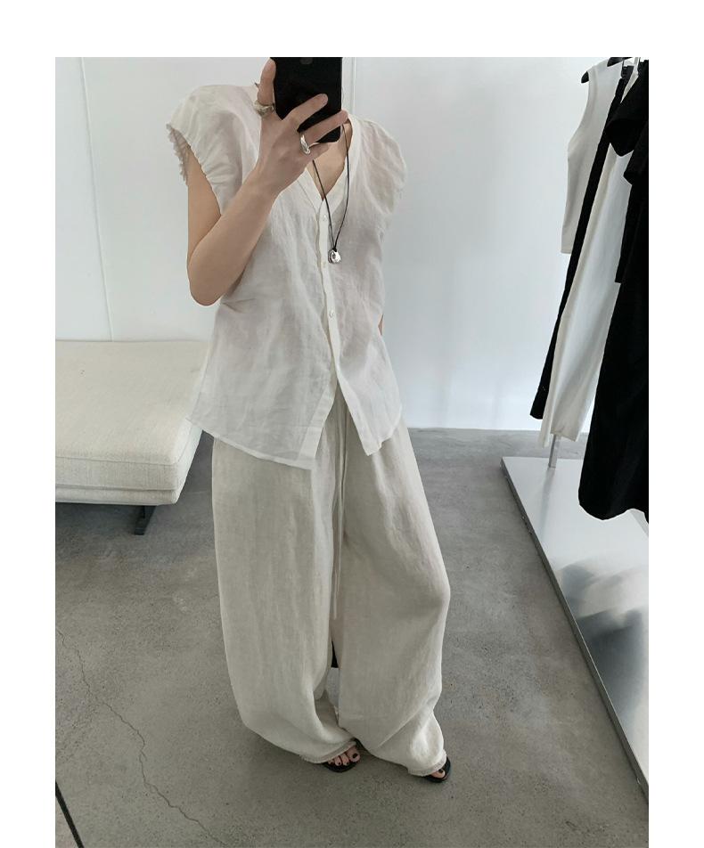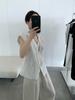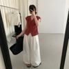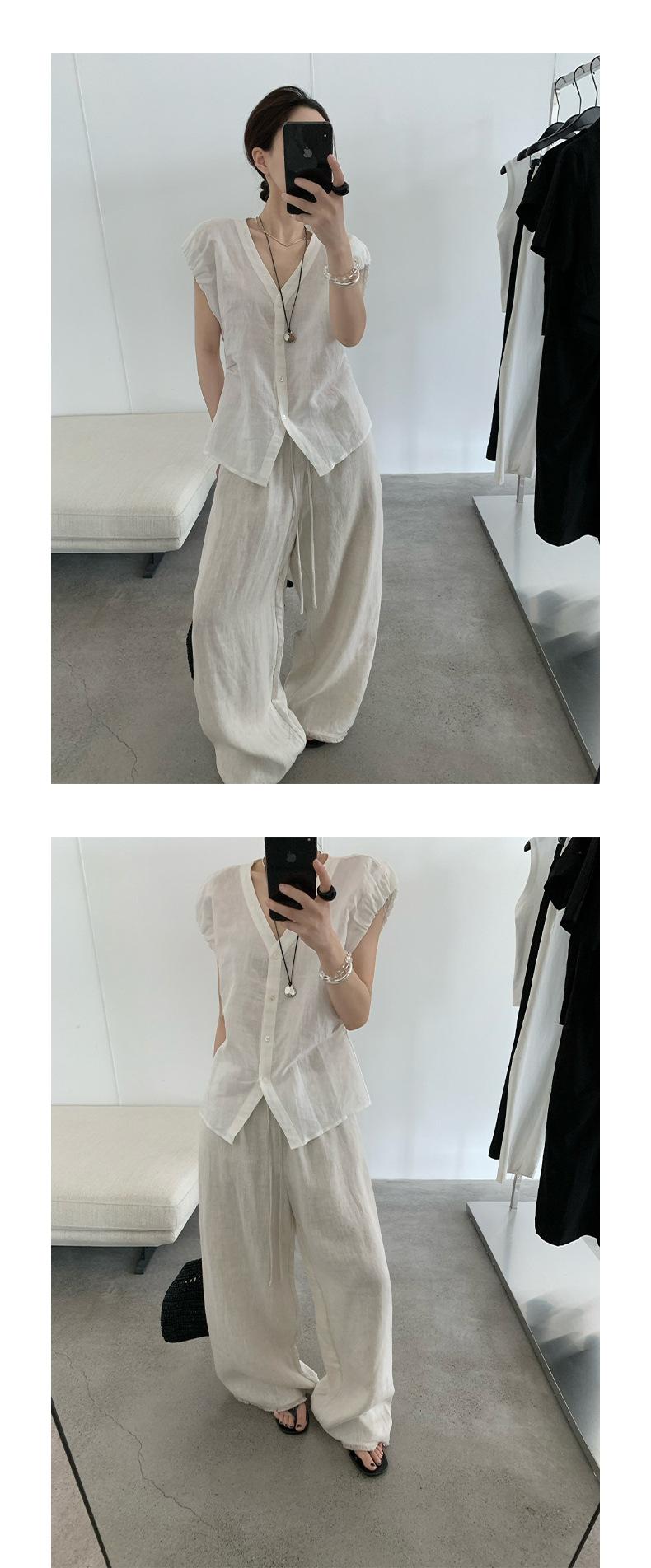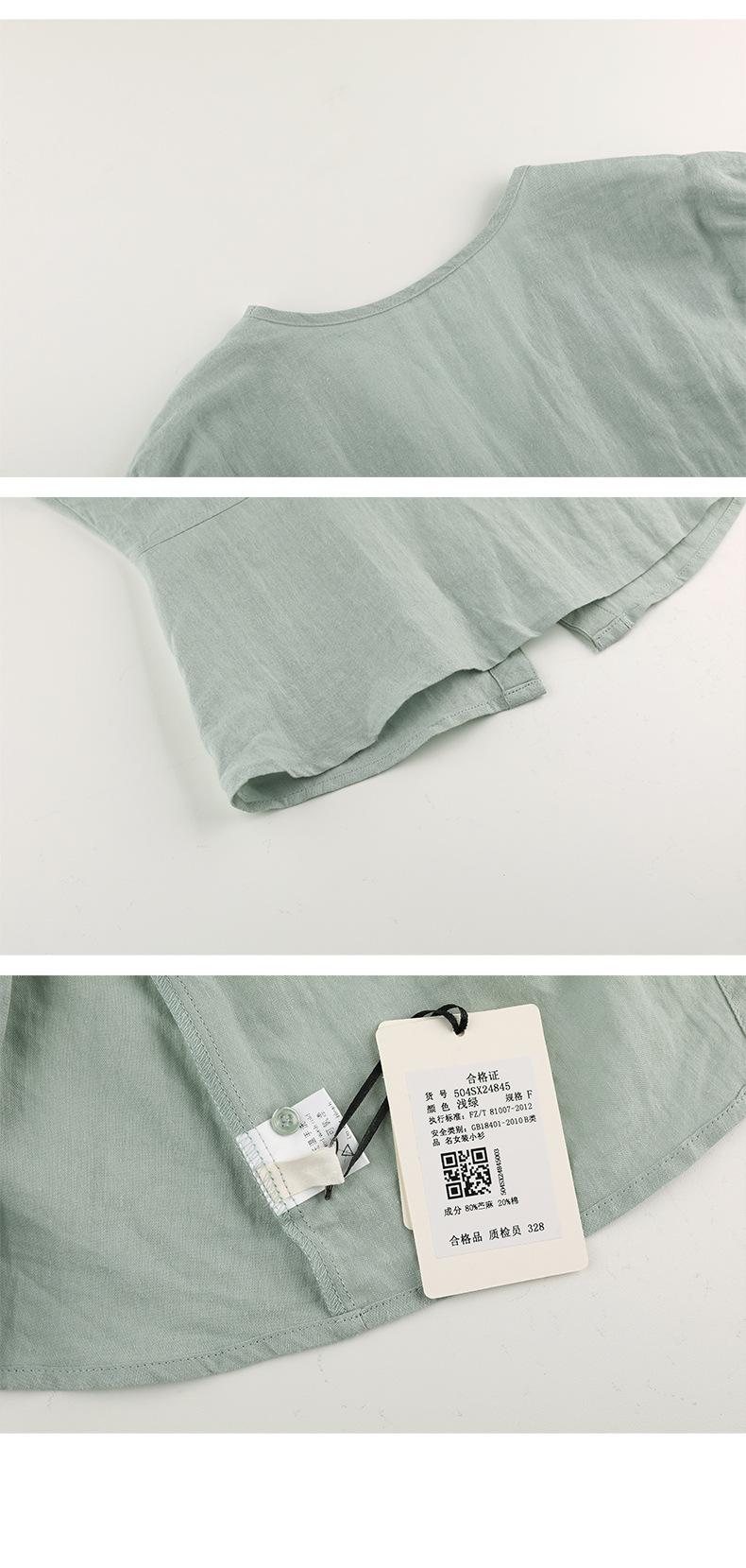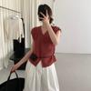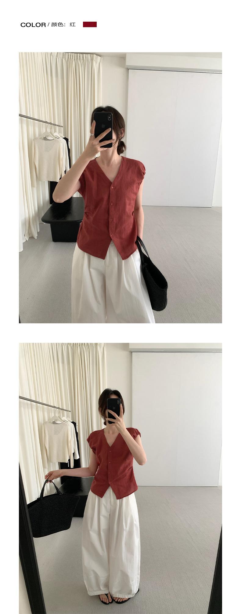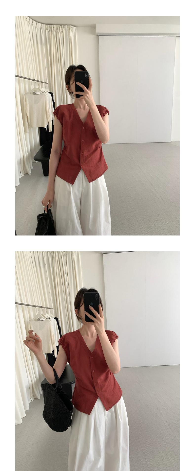 TG Elegante Camisa de Hombro con Puño Grande Plisado para Viajero Mujer 2025 Verano Nuevo Top con Hebilla Cuello en V 24845