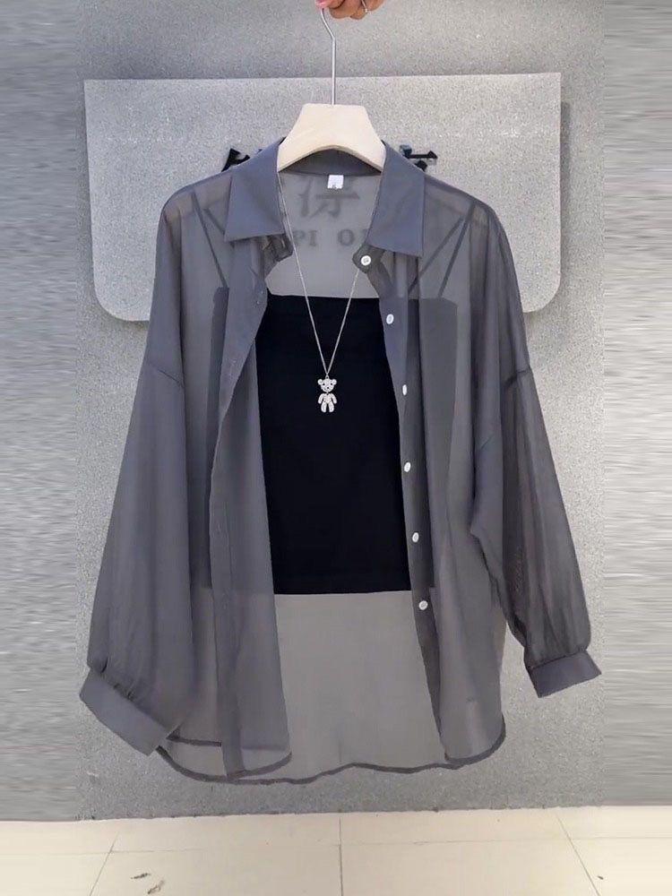Ropa de Protección Solar para Mujer Verano Seda de Hielo Transpirable Ropa Exterior Chaqueta Cárdigan de Manga Larga 2025 Nueva Camisa de Gasa Fina de Manga Larga