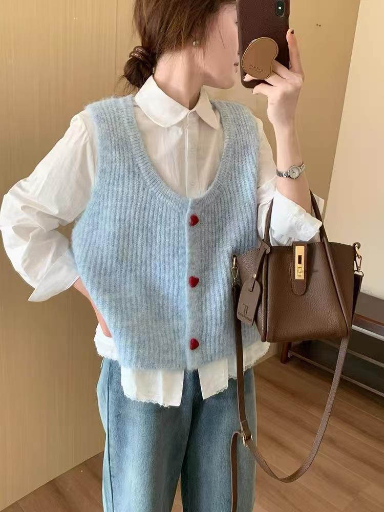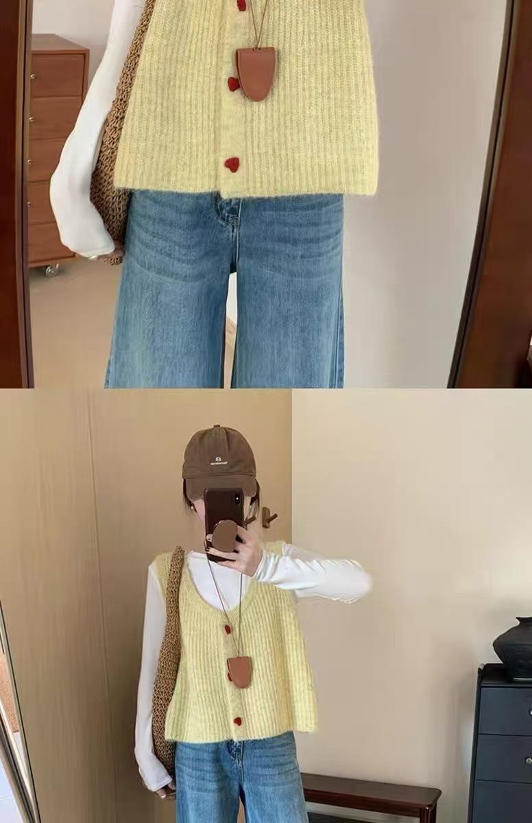 Principios de Primavera Estilo Coreano Nuevo Cuello Redondo Bajo Suelto Suelto Corto Estilo Perezoso Terciopelo de Felpa Apilado Chaleco de Punto para Mujer