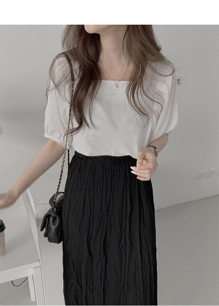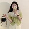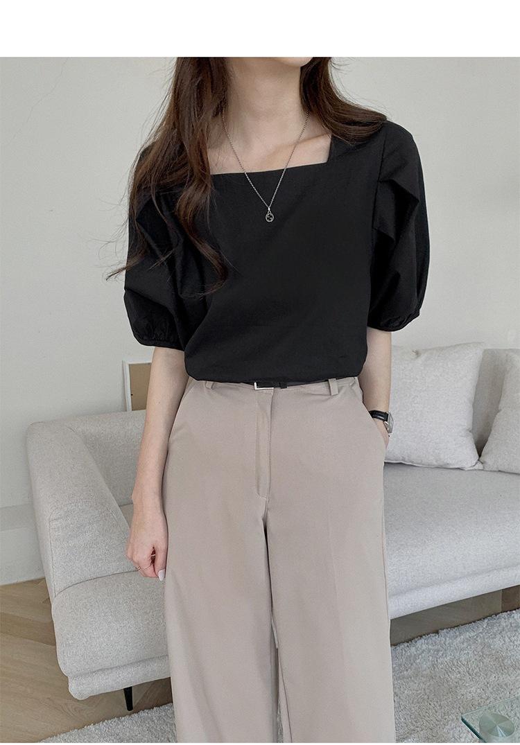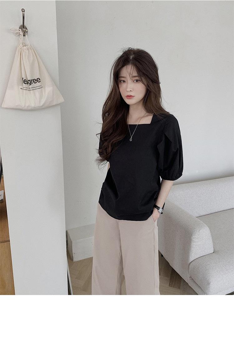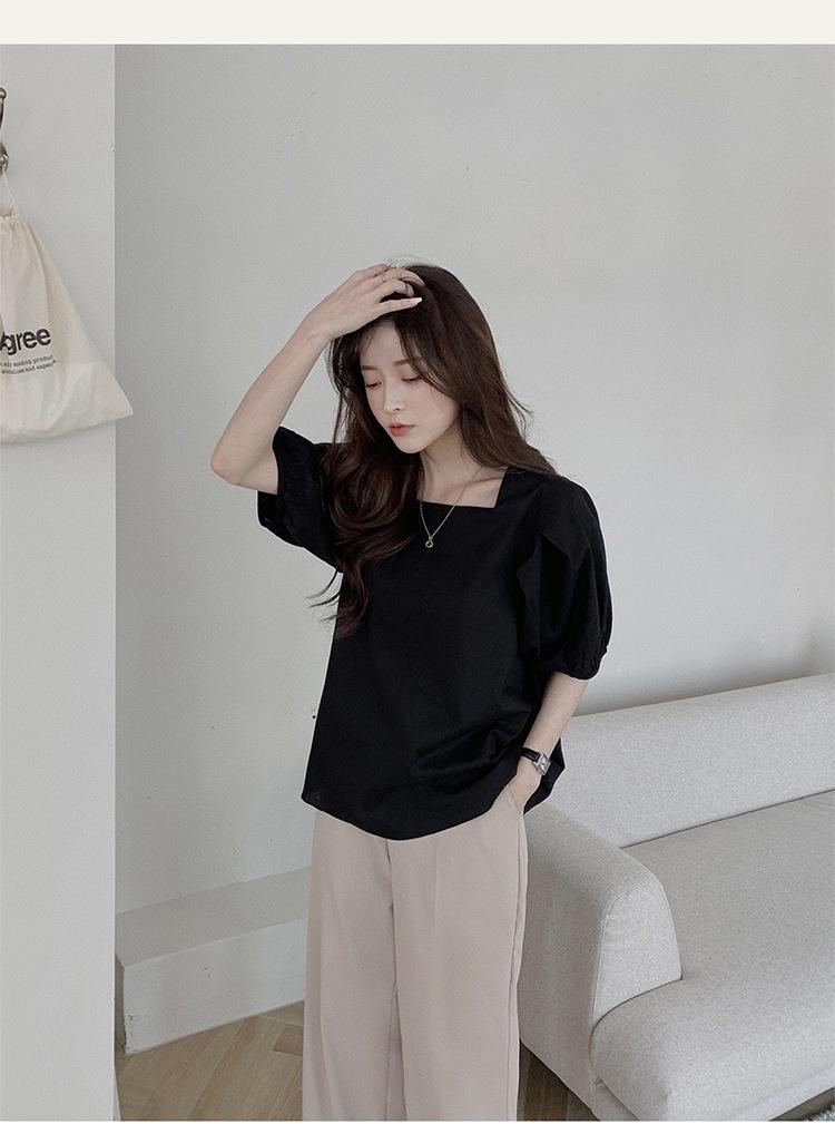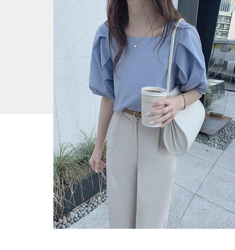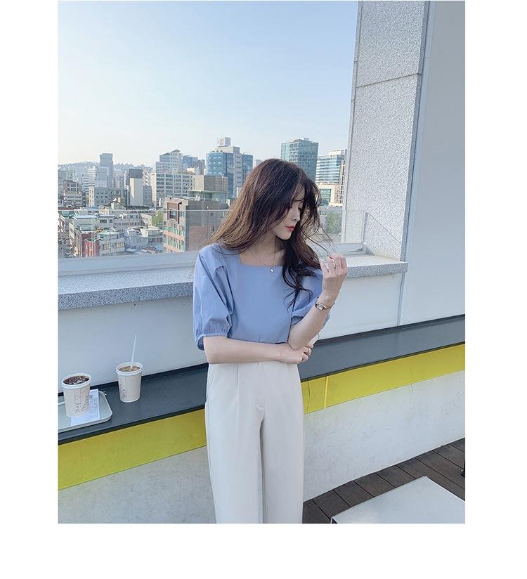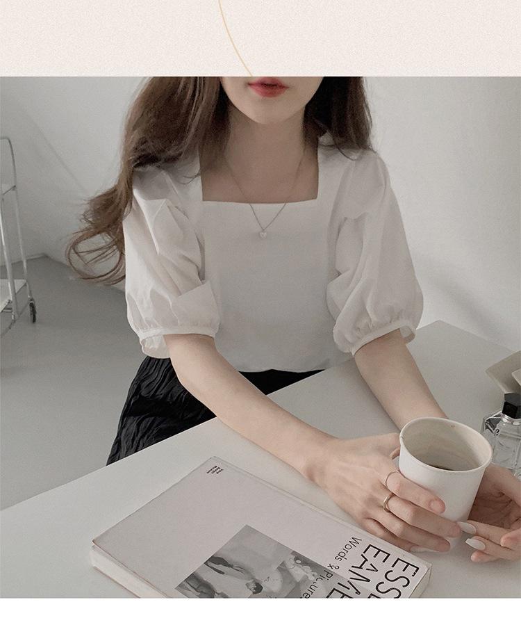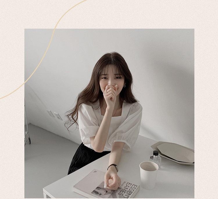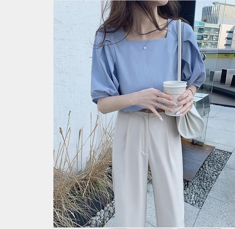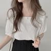 Blusa de estilo francés con cuello cuadrado y mangas abullonadas para mujer, estilo coreano, elegante, de verano, con diseño fino, estilo nicho, camisa de manga corta para mujer.