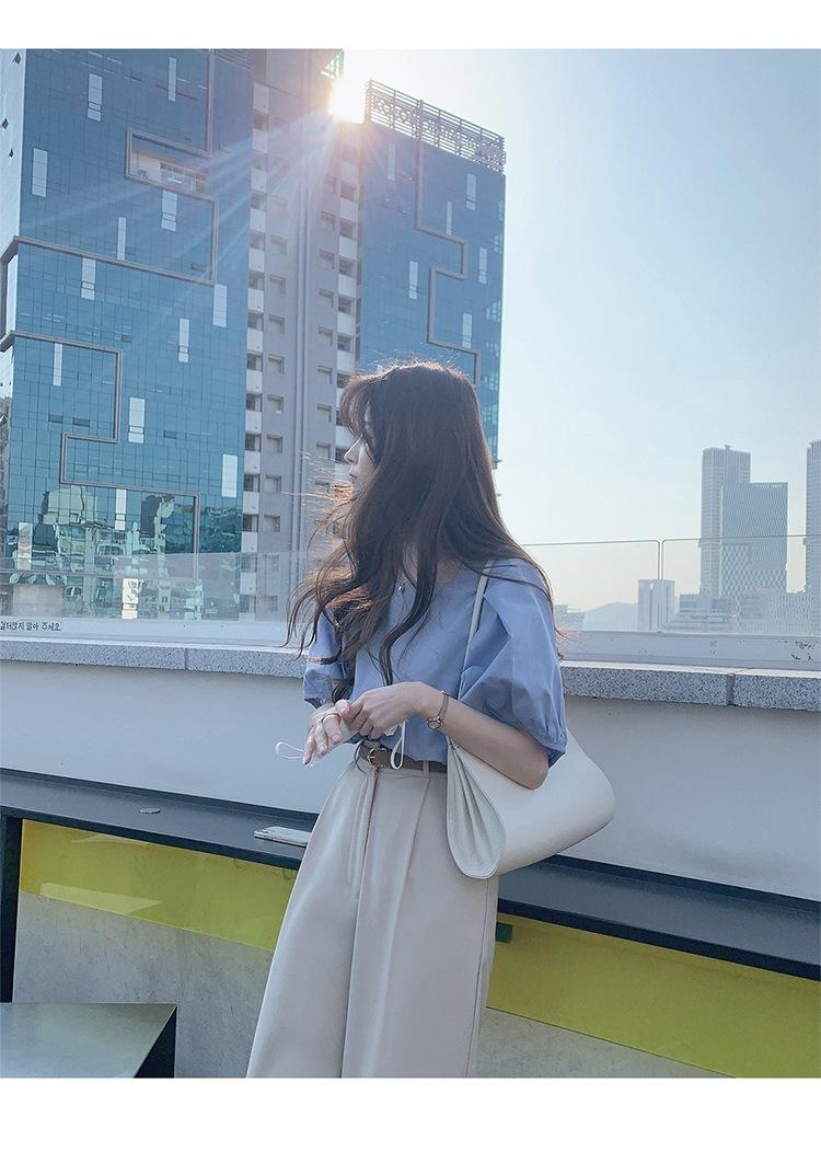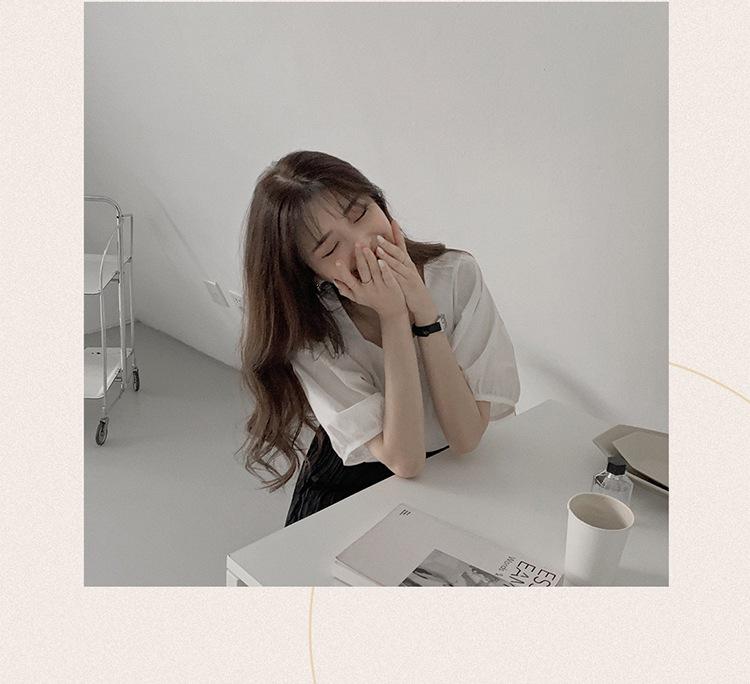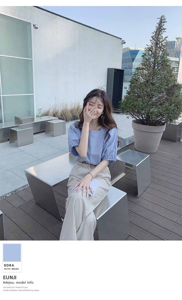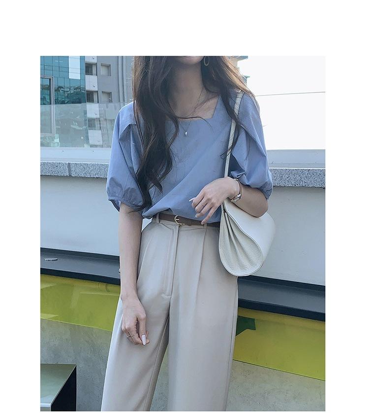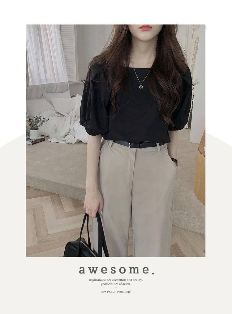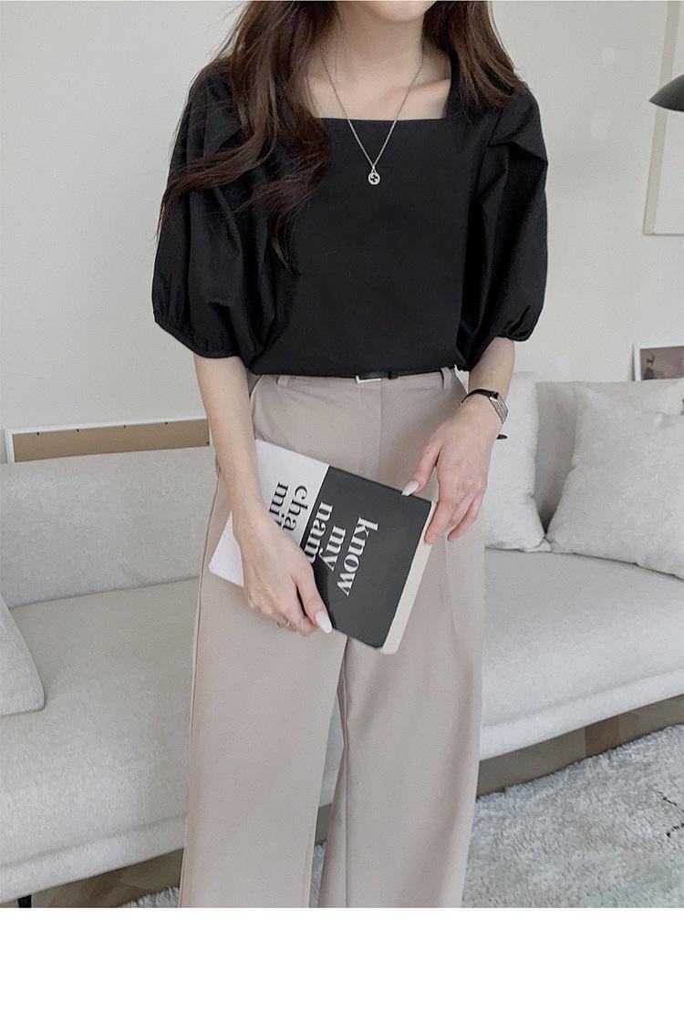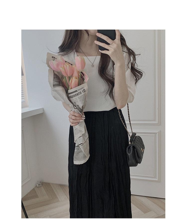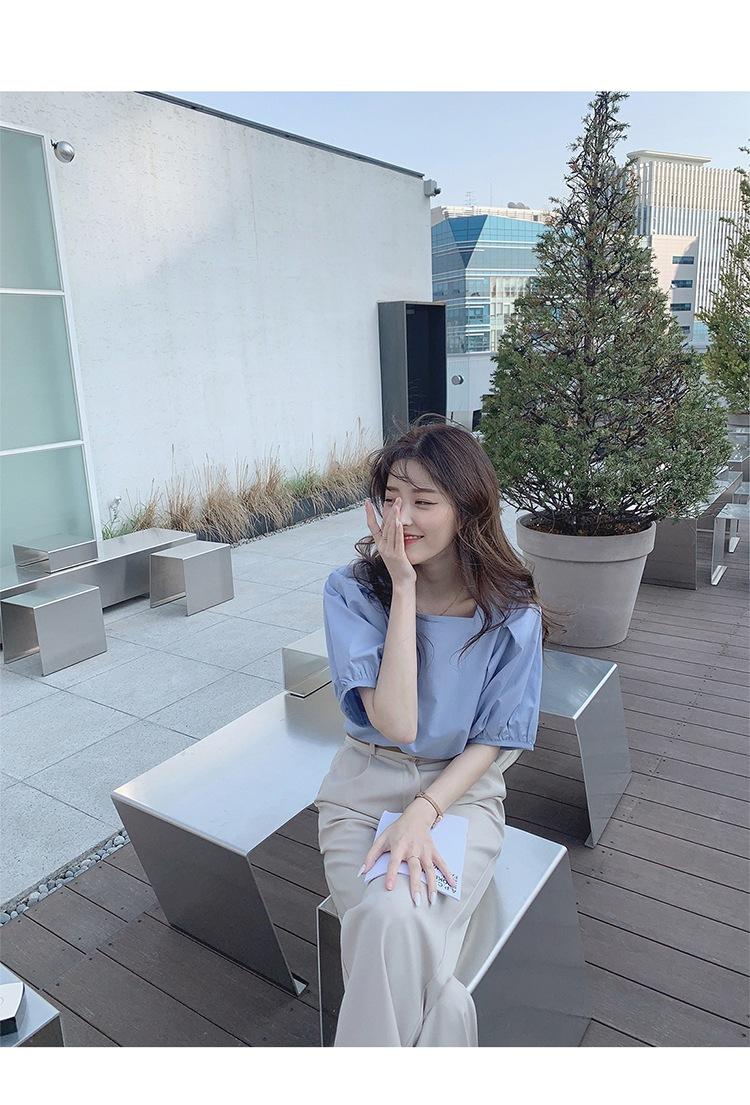 Blusa de estilo francés con cuello cuadrado y mangas abullonadas para mujer, estilo coreano, elegante, de verano, con diseño fino, estilo nicho, camisa de manga corta para mujer.