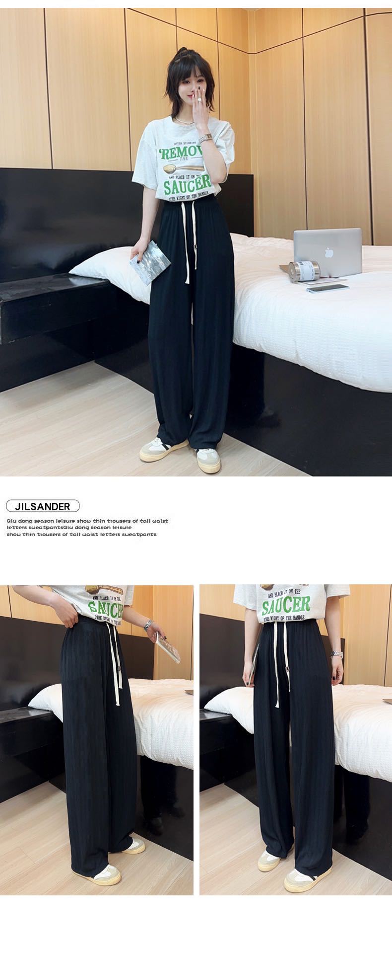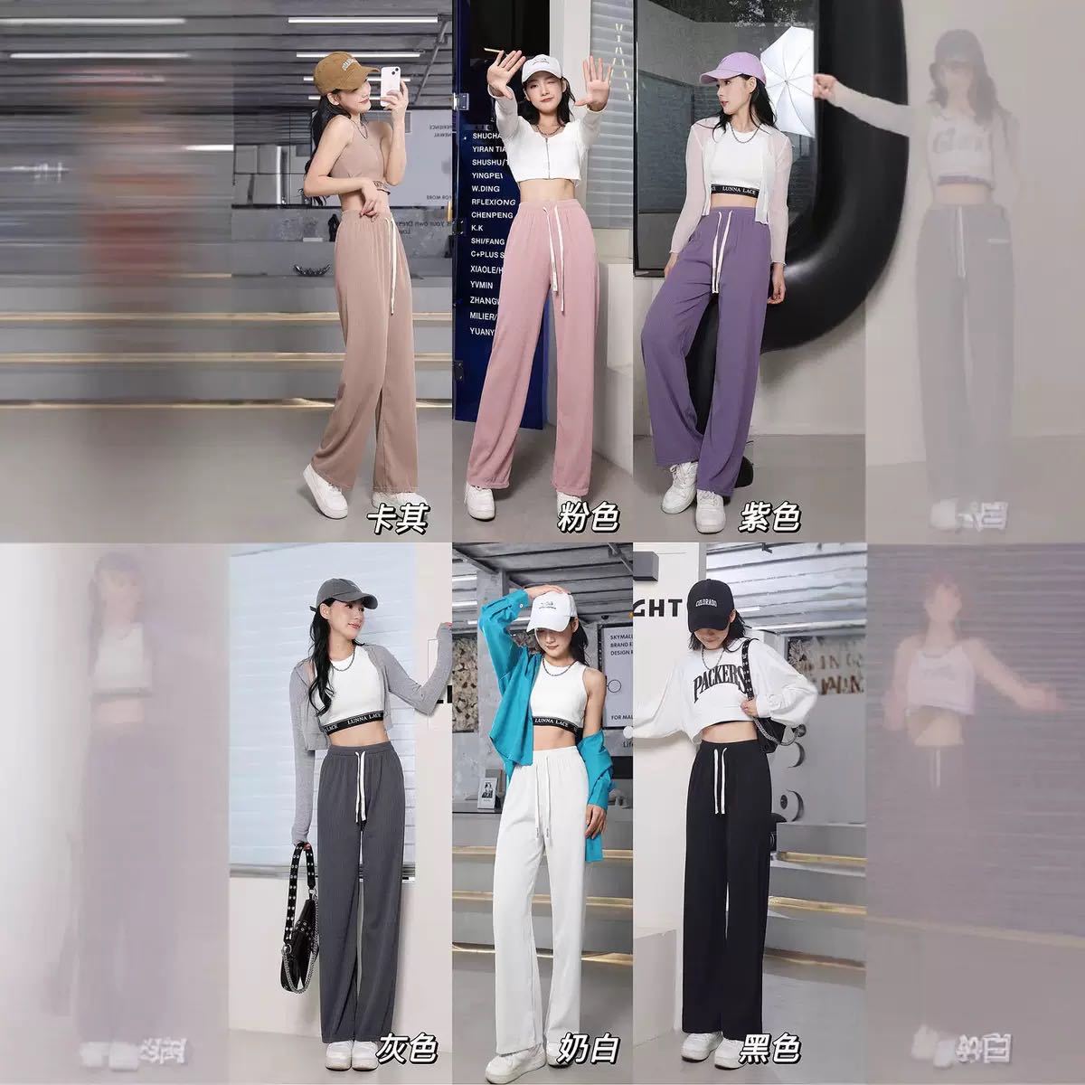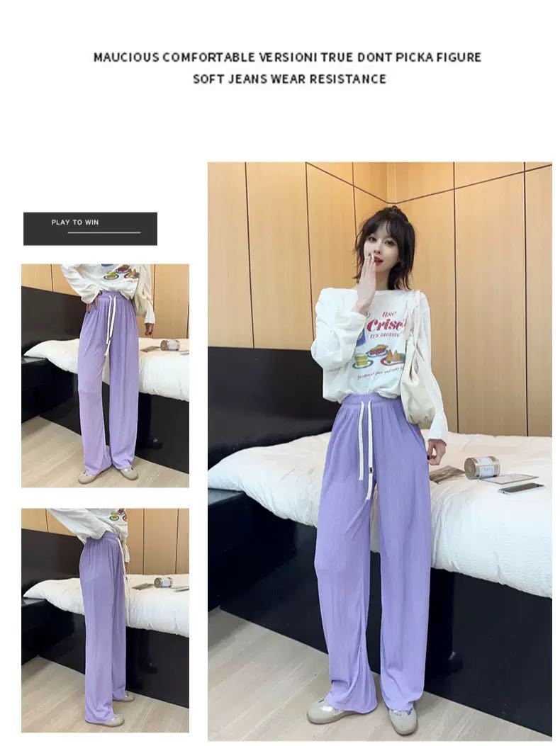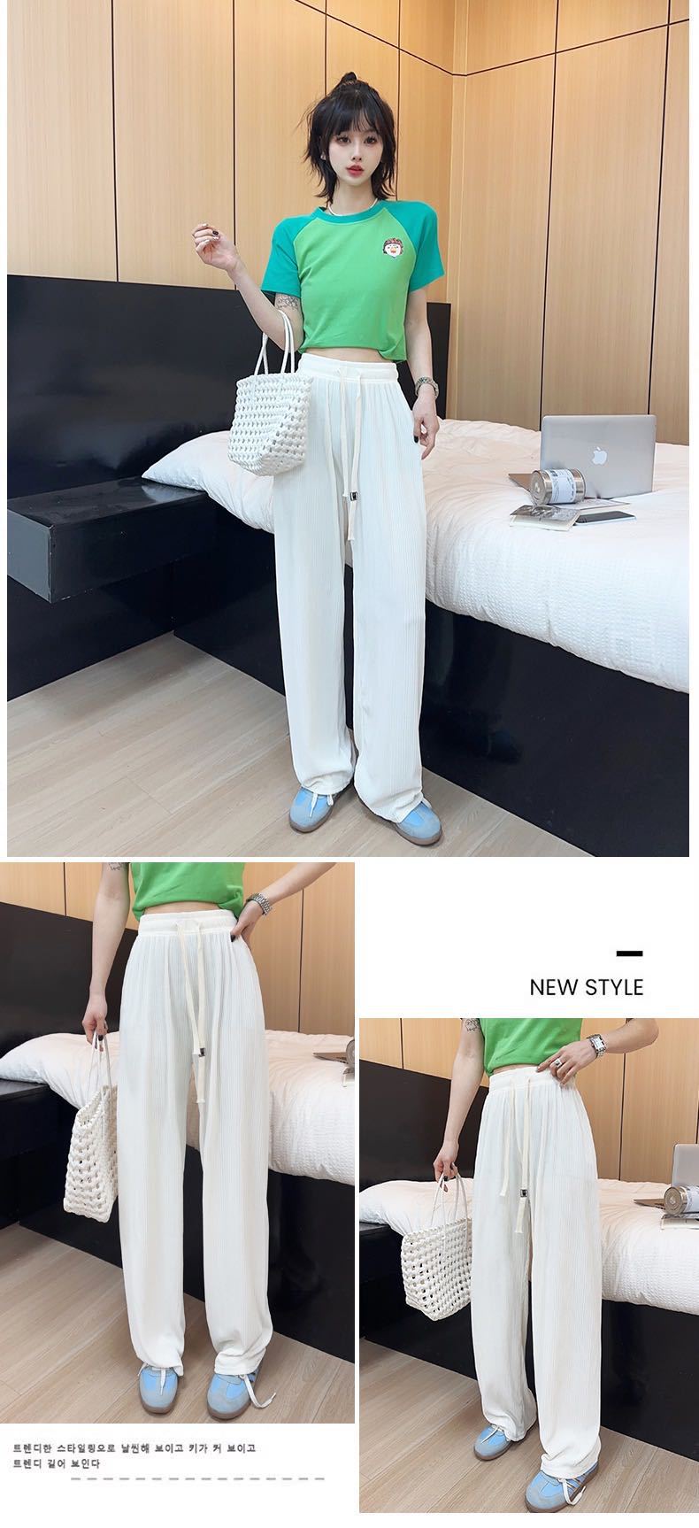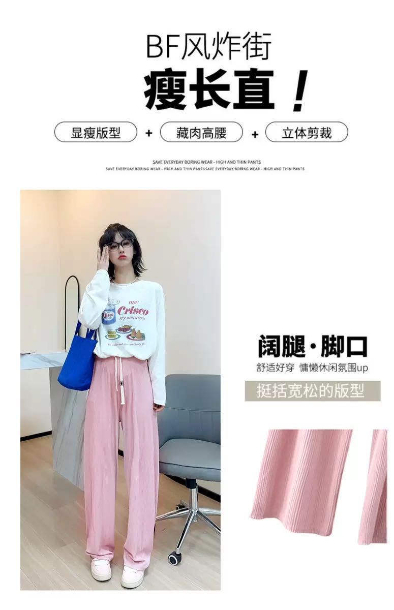 Pantalones nuevos casuales coreanos adelgazantes de cintura alta elásticos transpirables sueltos arrugados