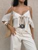 Compra Blusa Blanca de Chifón Francés con Volantes para Mujer Moda Verano 2025 Exterior Suelta con Cordones Cuello en V para Mujer al por mayor en Joom.pro