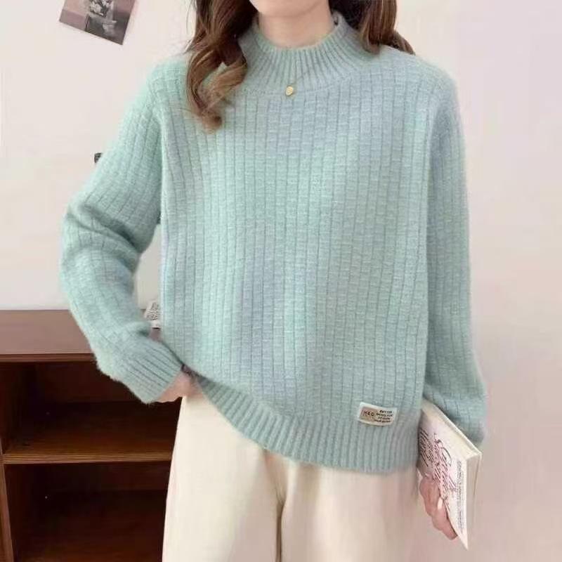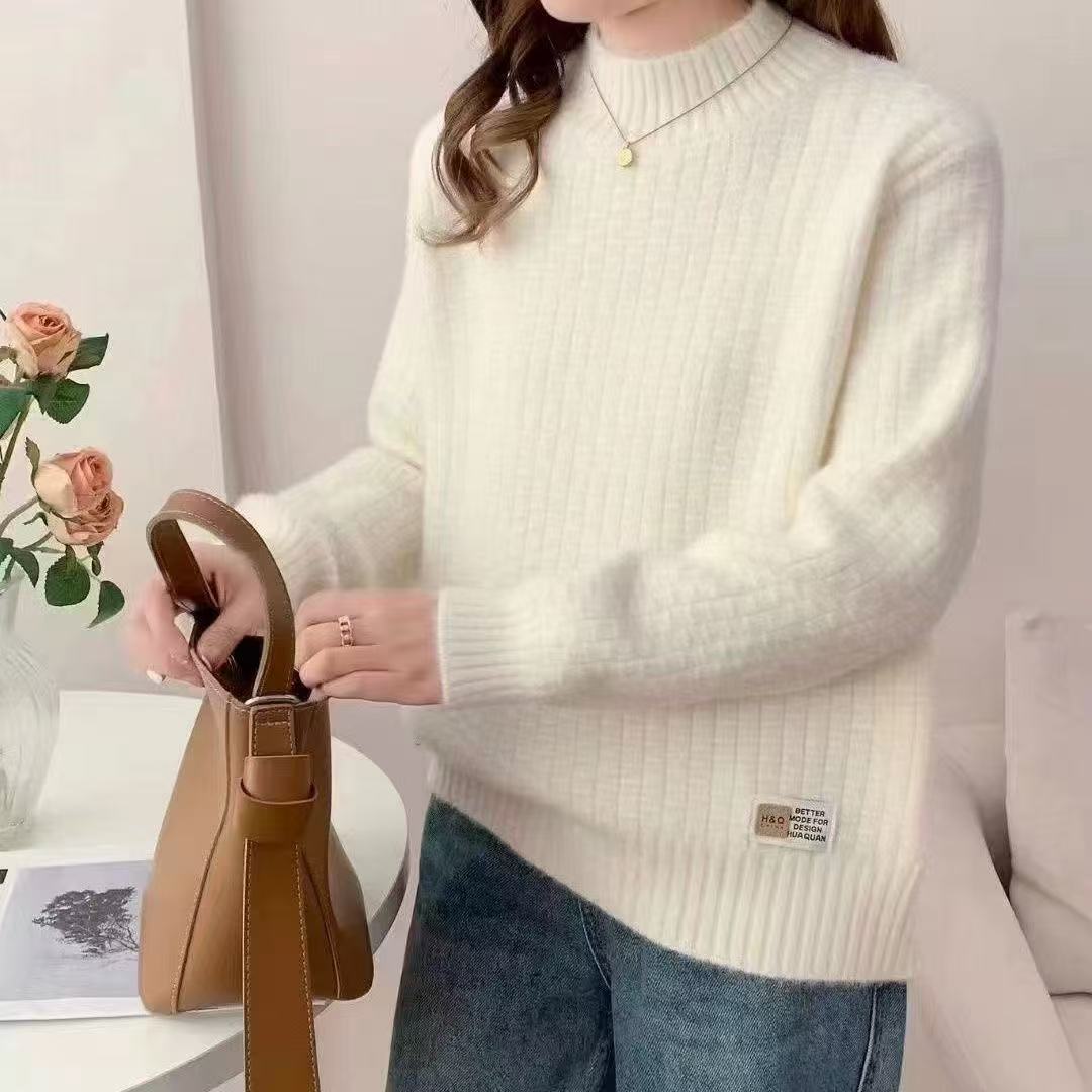 Suéter de Punto Blanco de Cuello Medio Alto para Mujer Otoño e Invierno de Alta Gama 2025 Nuevo Invierno Grueso para Fondo Top de Punto