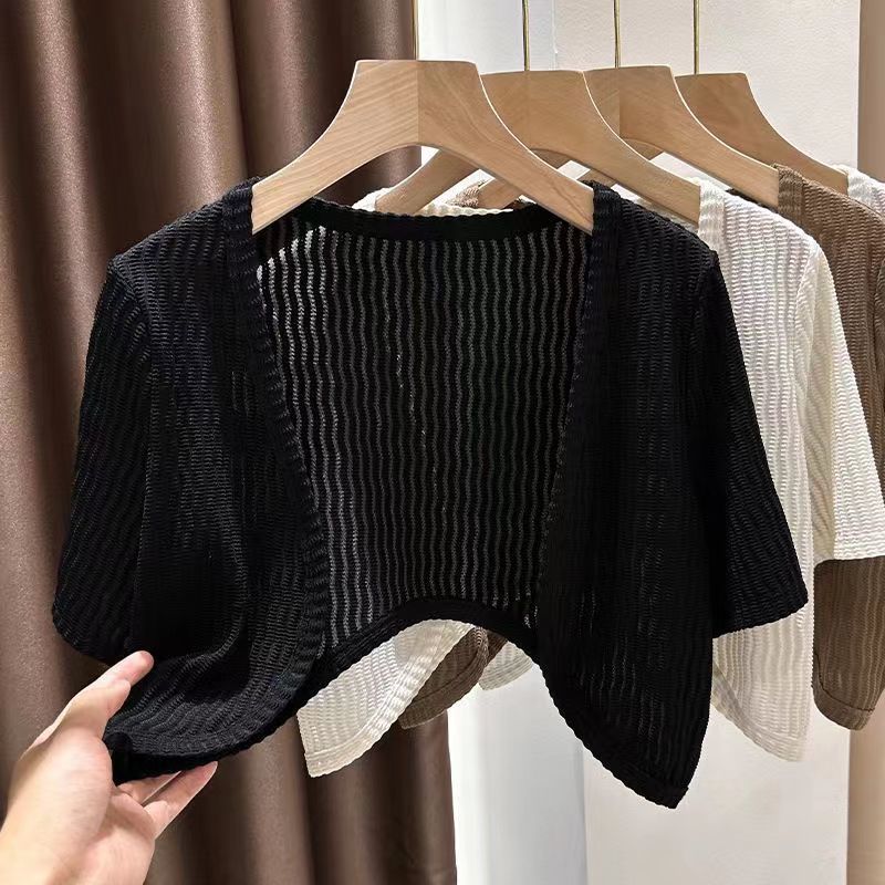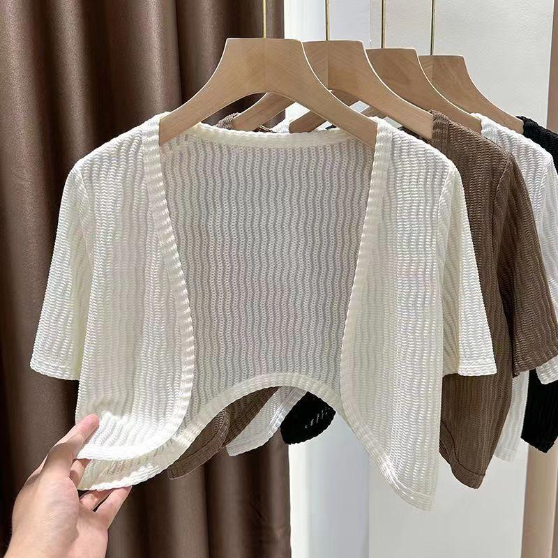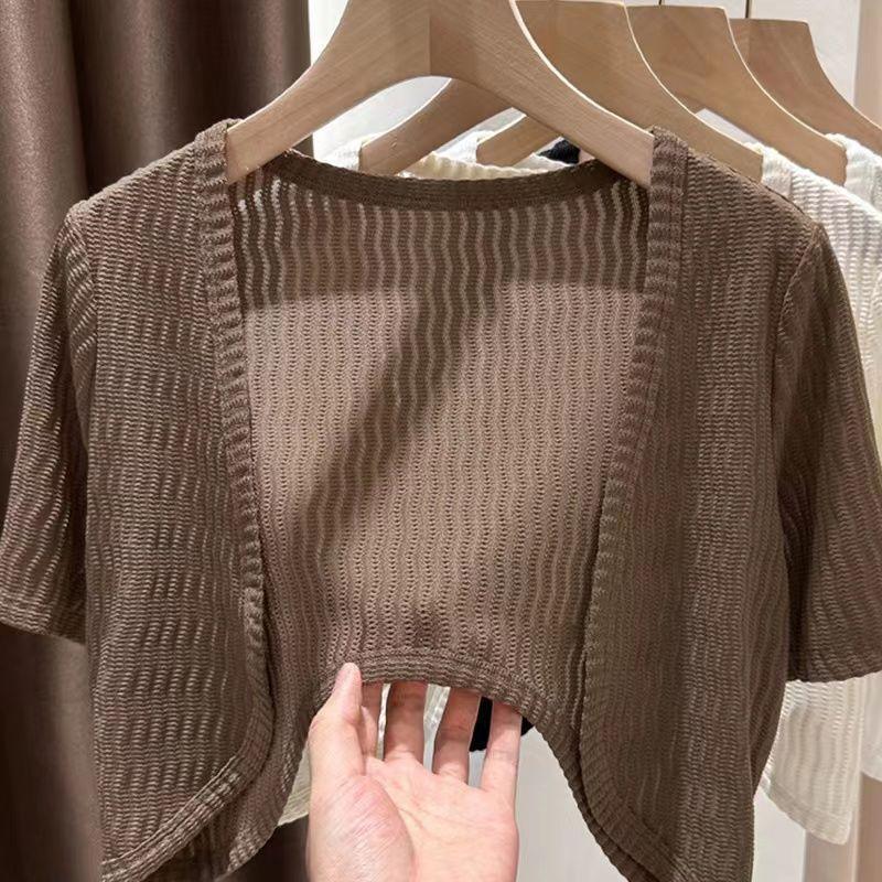Chal de Verano Fino con Protección Solar para Mujer Abrigo Blusa Corta Marrón para Mujer Cárdigan de Encaje de Manga Corta con Falda Slip