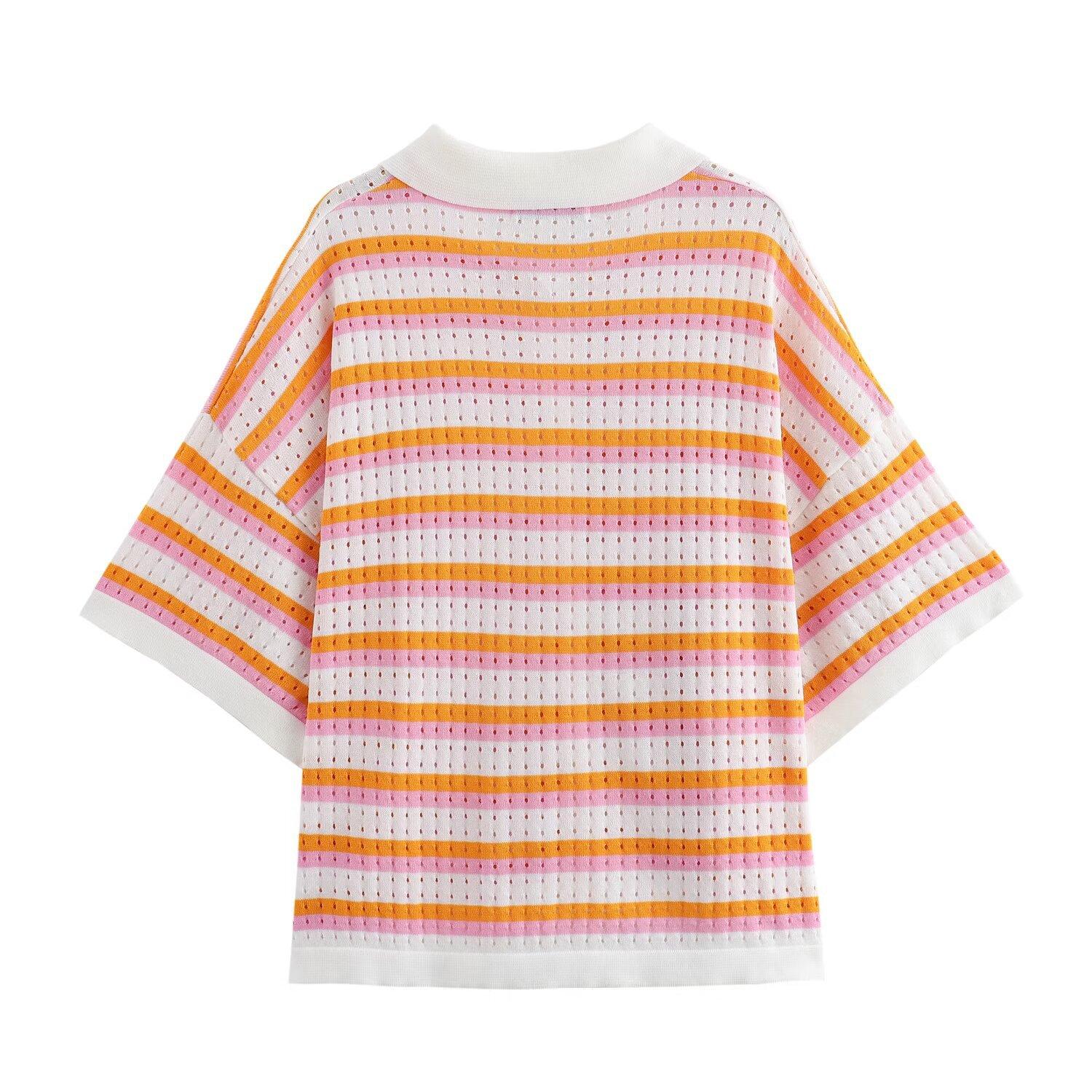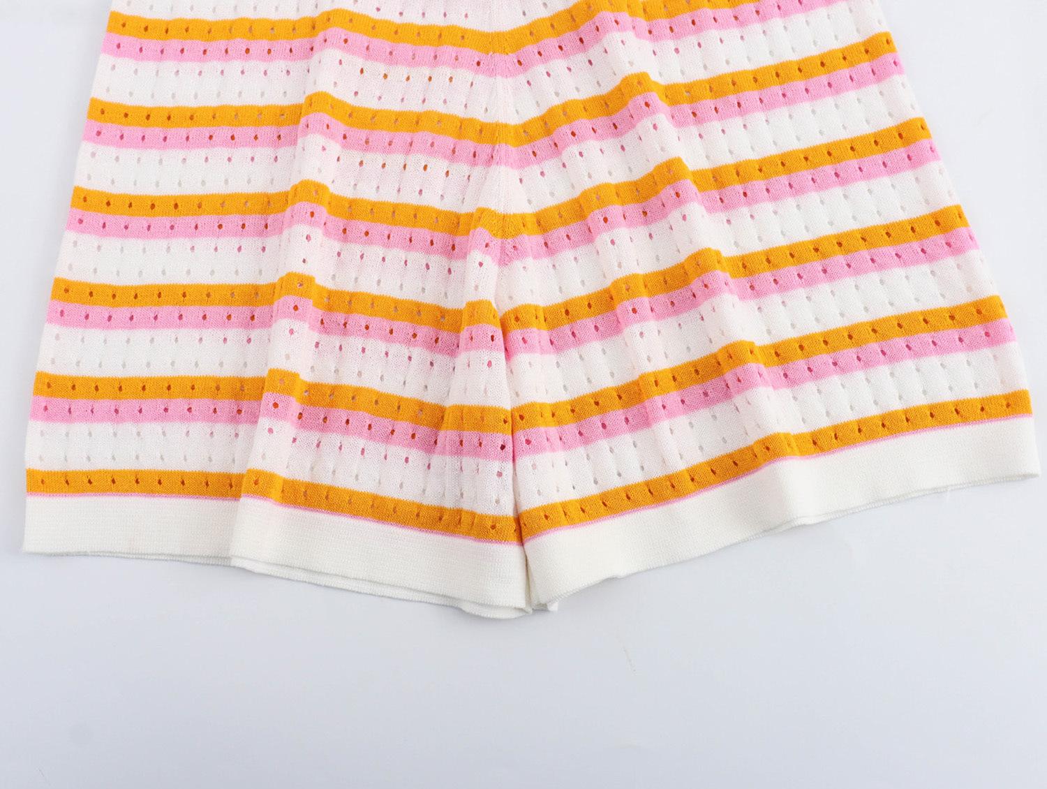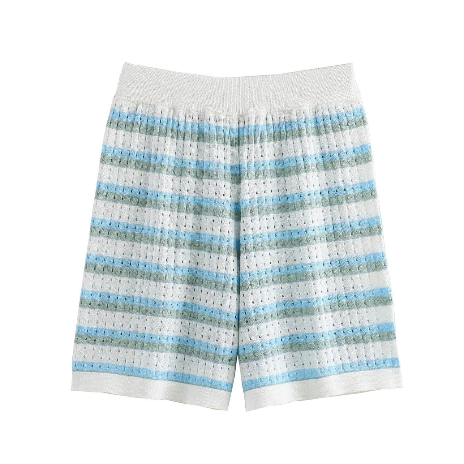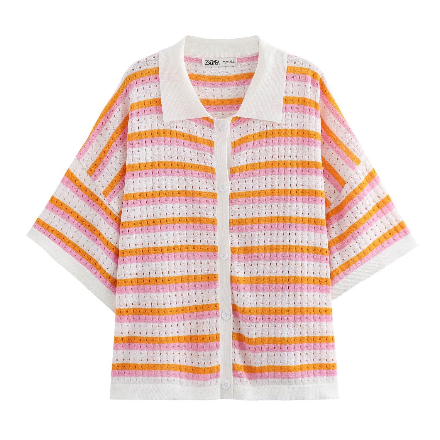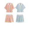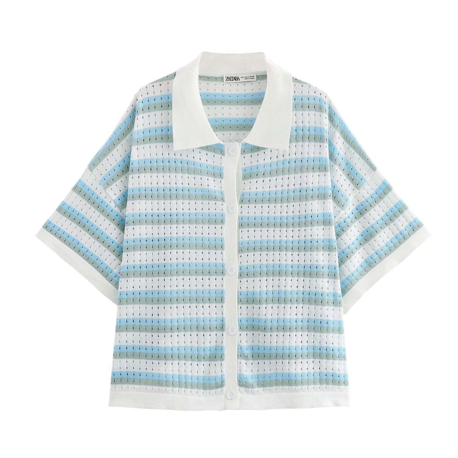 Ropa de Verano Nueva para Mujer 2024 Estilo Europeo y Americano Moda Tejido Calado Camisa de Un Solo Botón Traje Casual de Shorts