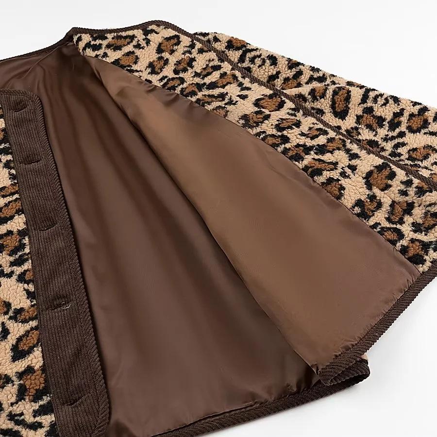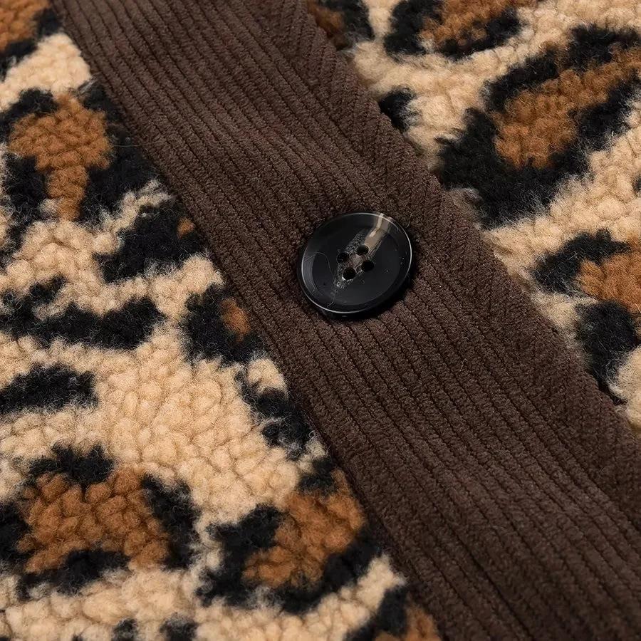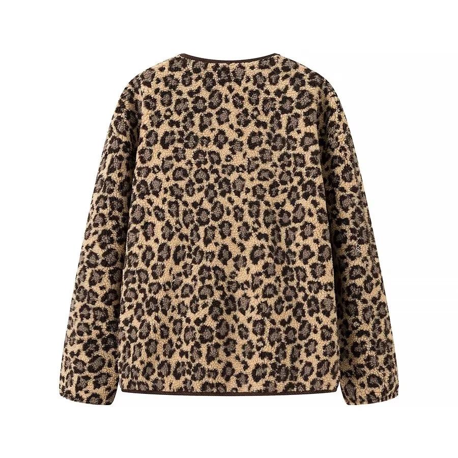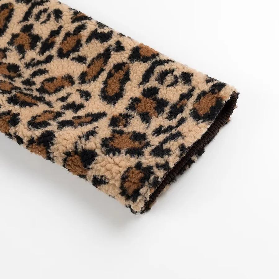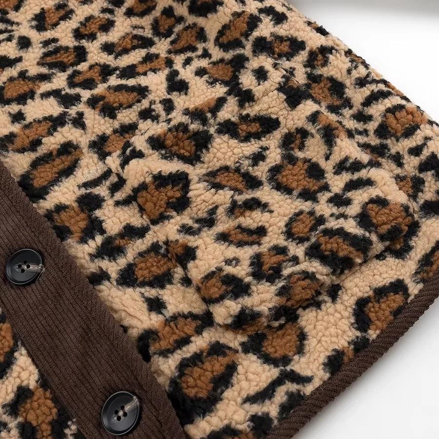 Explosiones Transfronterizas Europeas y Americanas AliExpress Moda Joker Lana de Cordero Leopardo Manga Larga Chaqueta Abrigo