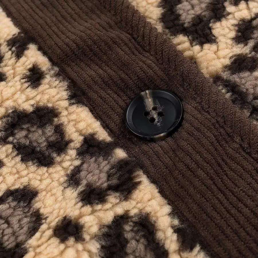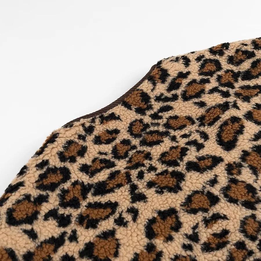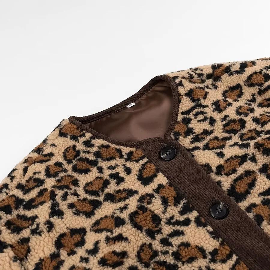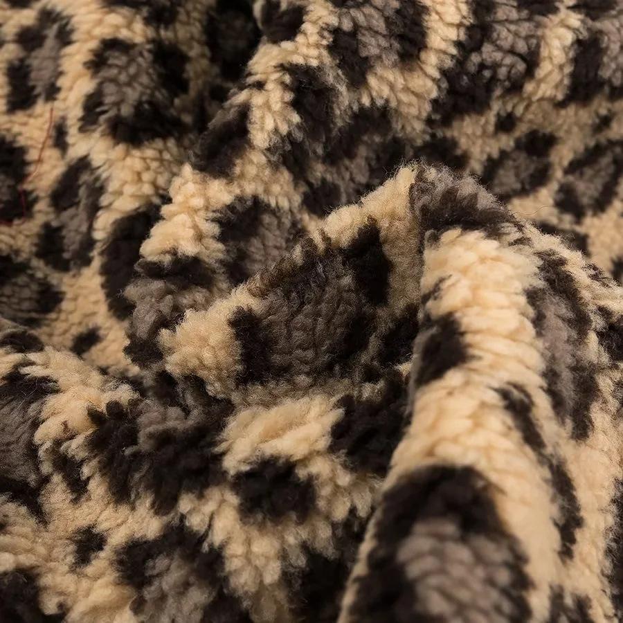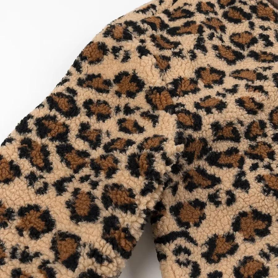 Explosiones Transfronterizas Europeas y Americanas AliExpress Moda Joker Lana de Cordero Leopardo Manga Larga Chaqueta Abrigo