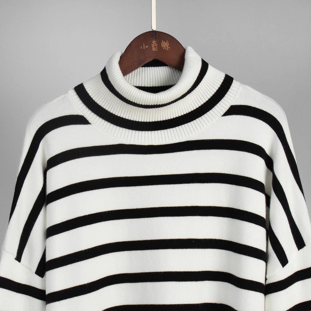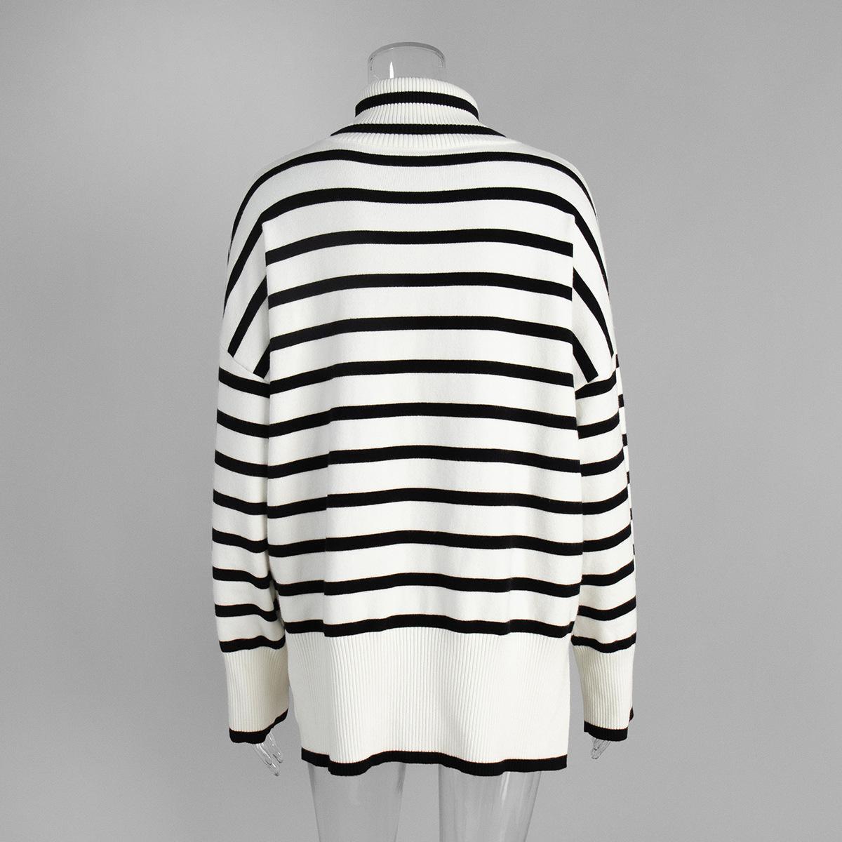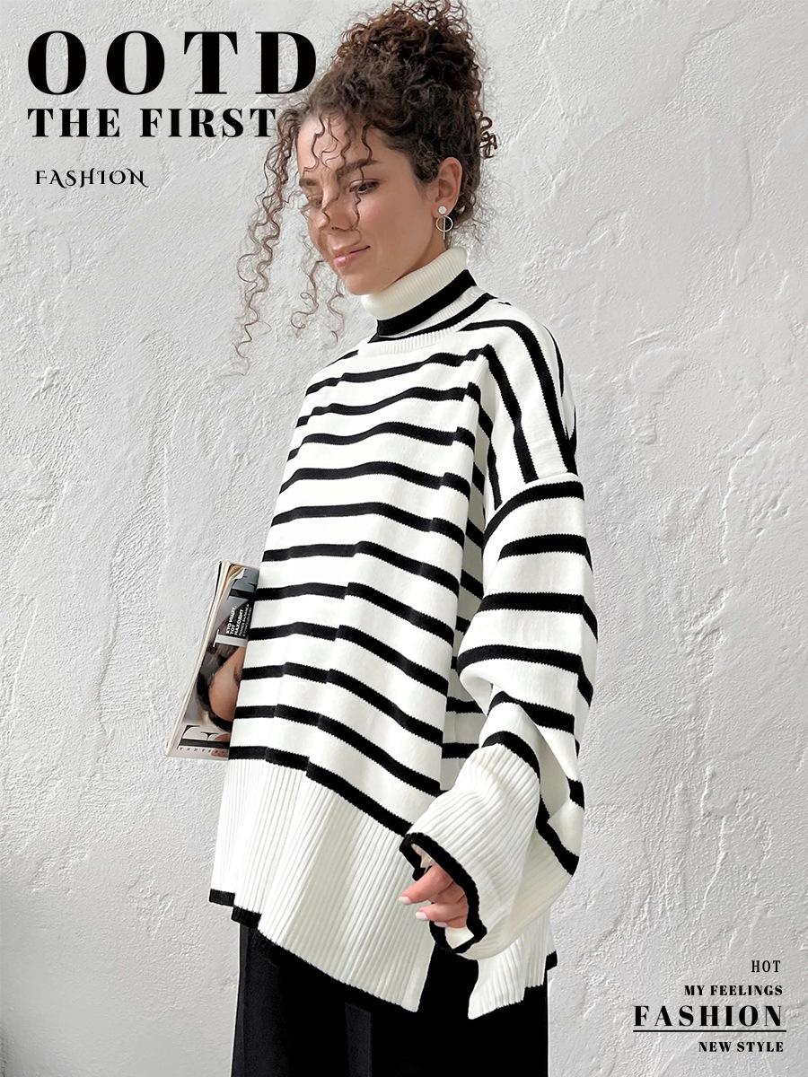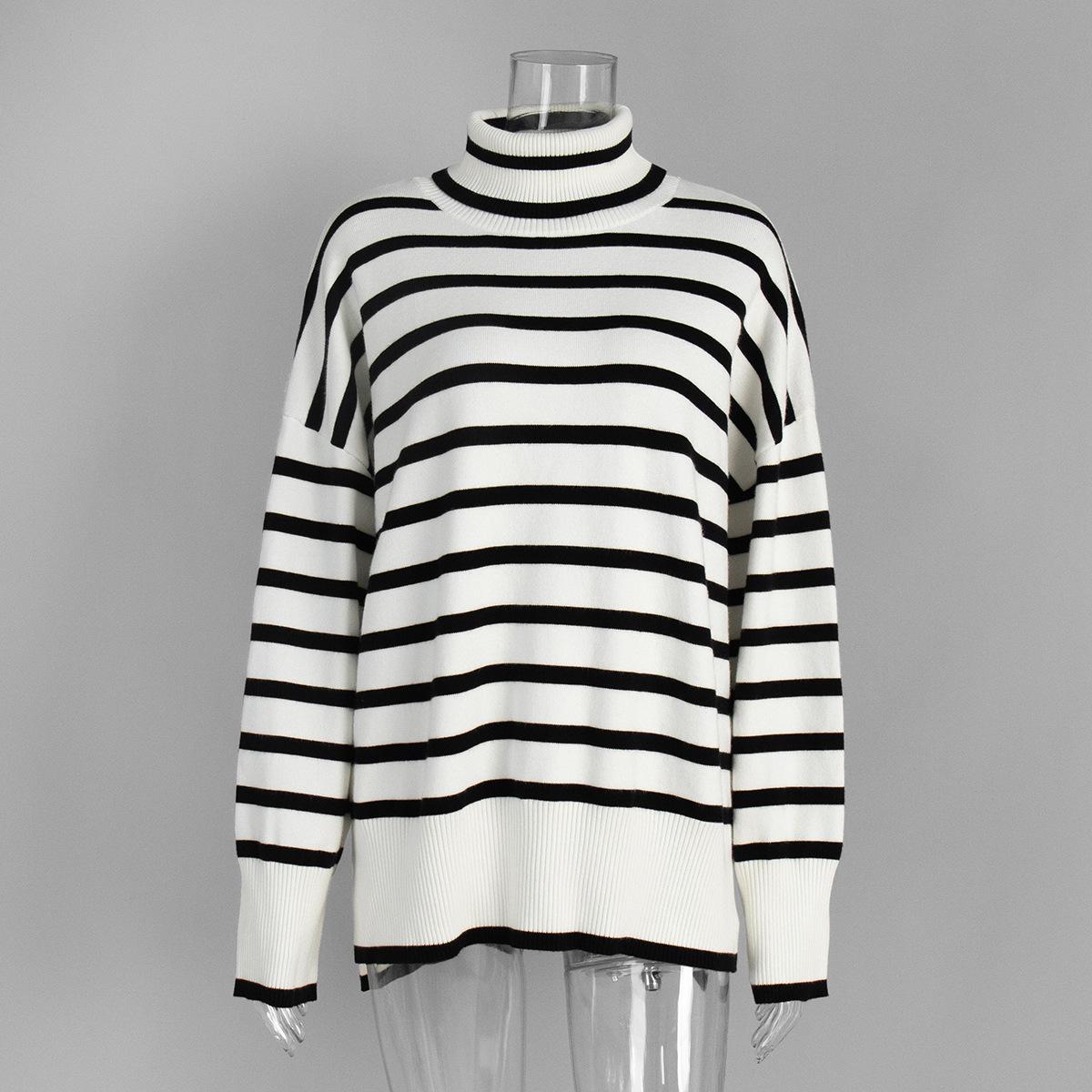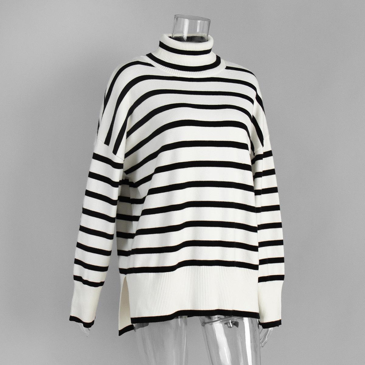 Suéter de Cuello Alto a Rayas Transfronterizo para Mujer Europeo y Americano 2025 Otoño e Invierno Nuevo Suéter Jersey de Cuello Alto Versátil Suéter Holgado