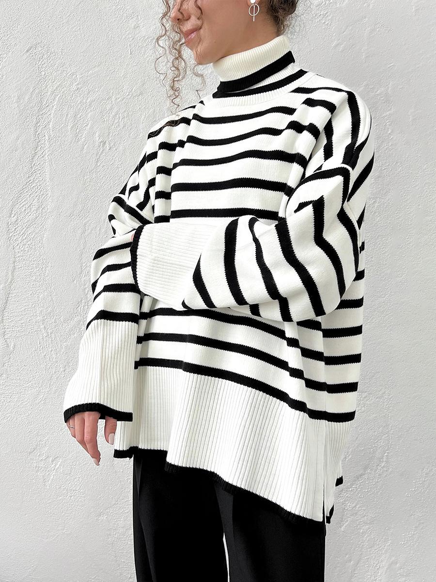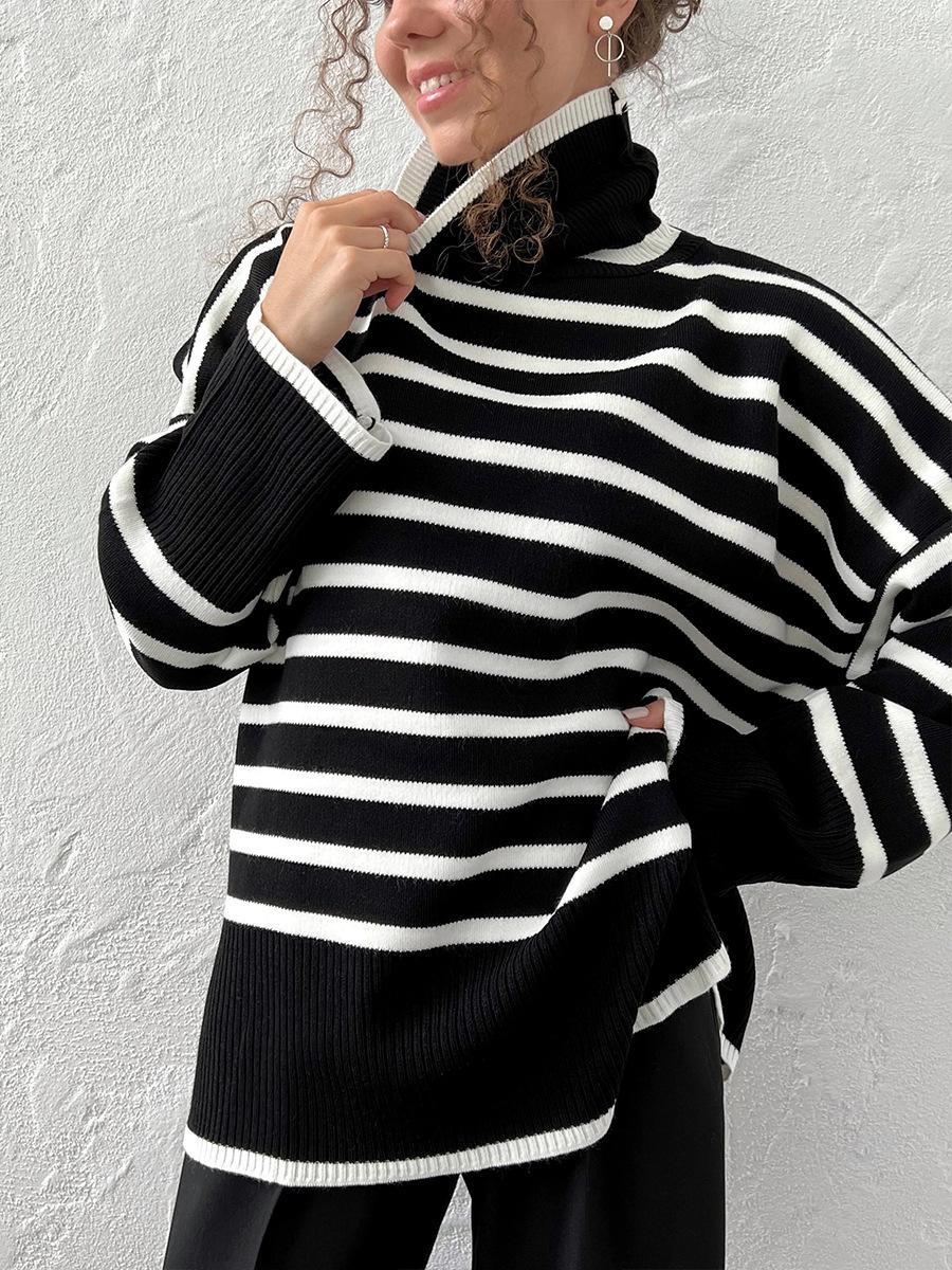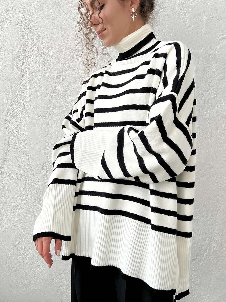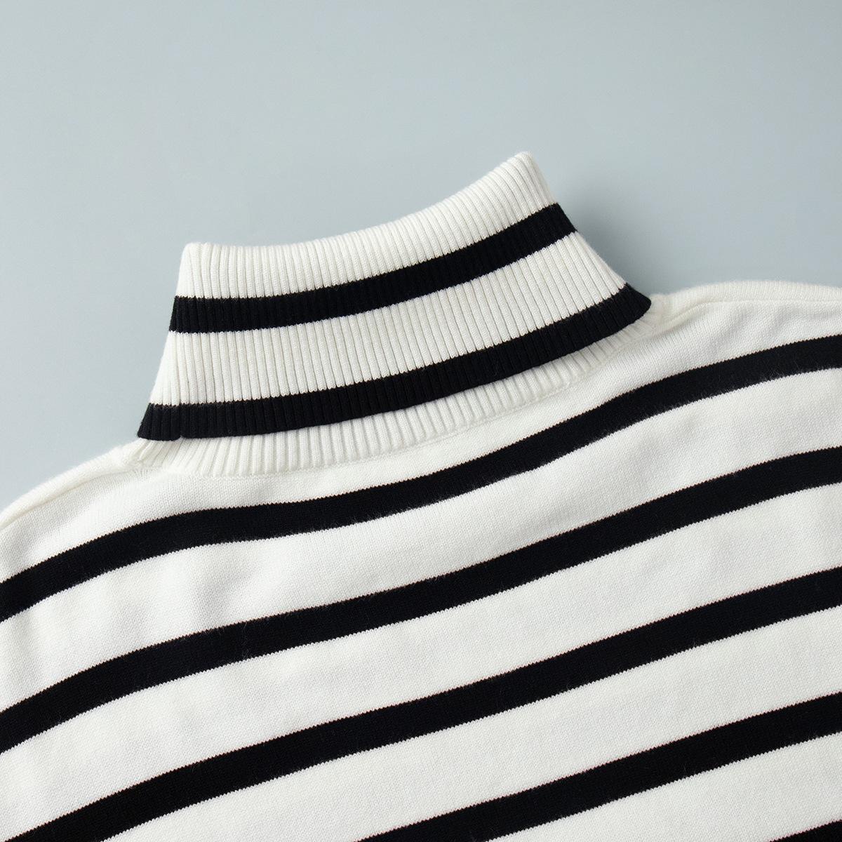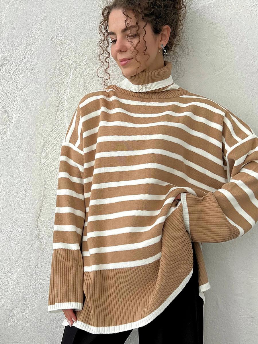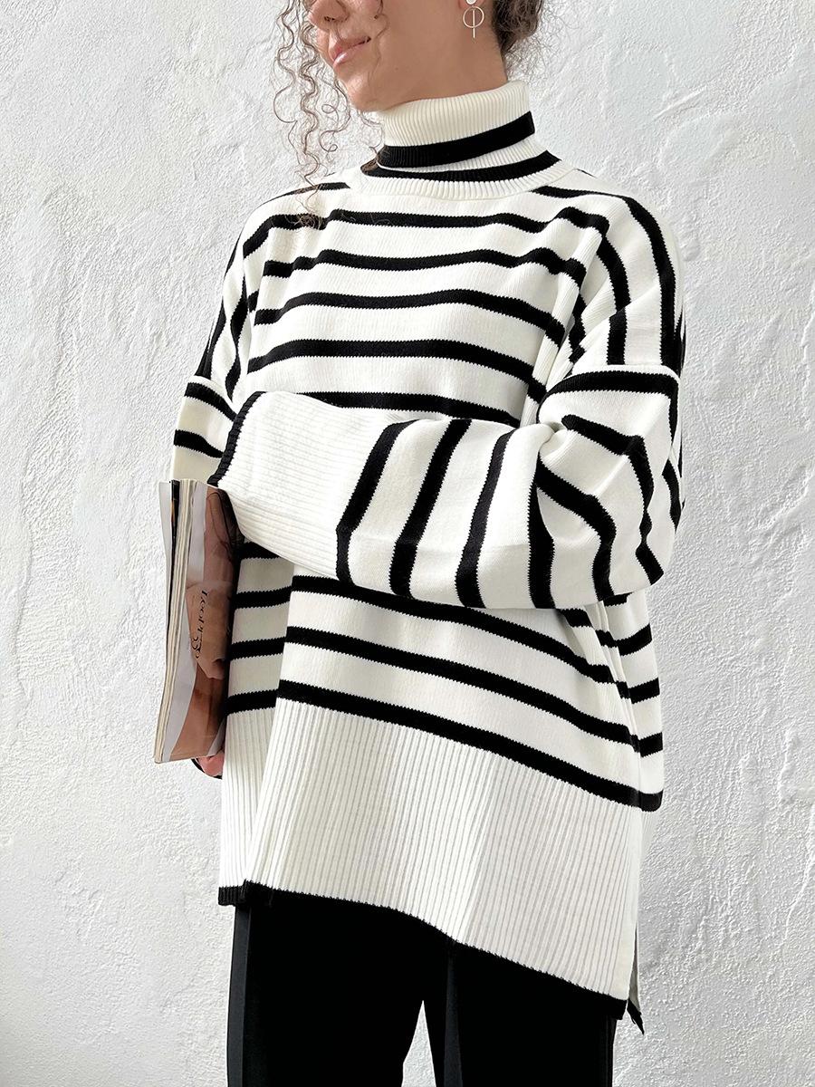 Suéter de Cuello Alto a Rayas Transfronterizo para Mujer Europeo y Americano 2025 Otoño e Invierno Nuevo Suéter Jersey de Cuello Alto Versátil Suéter Holgado