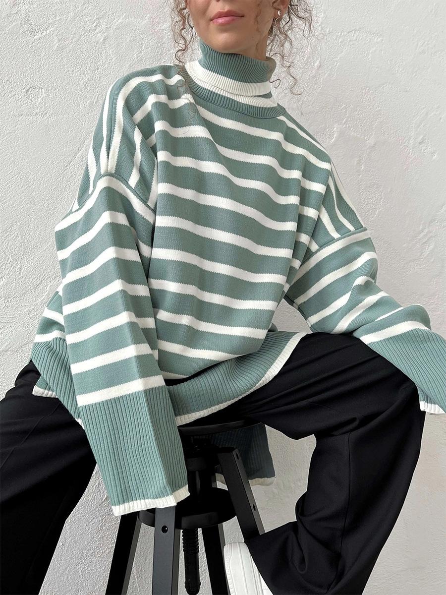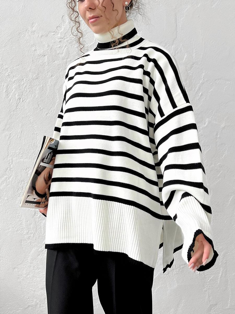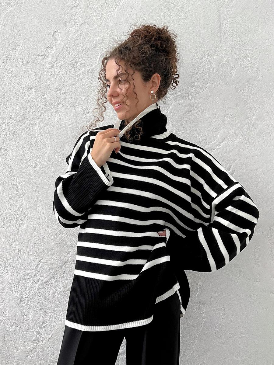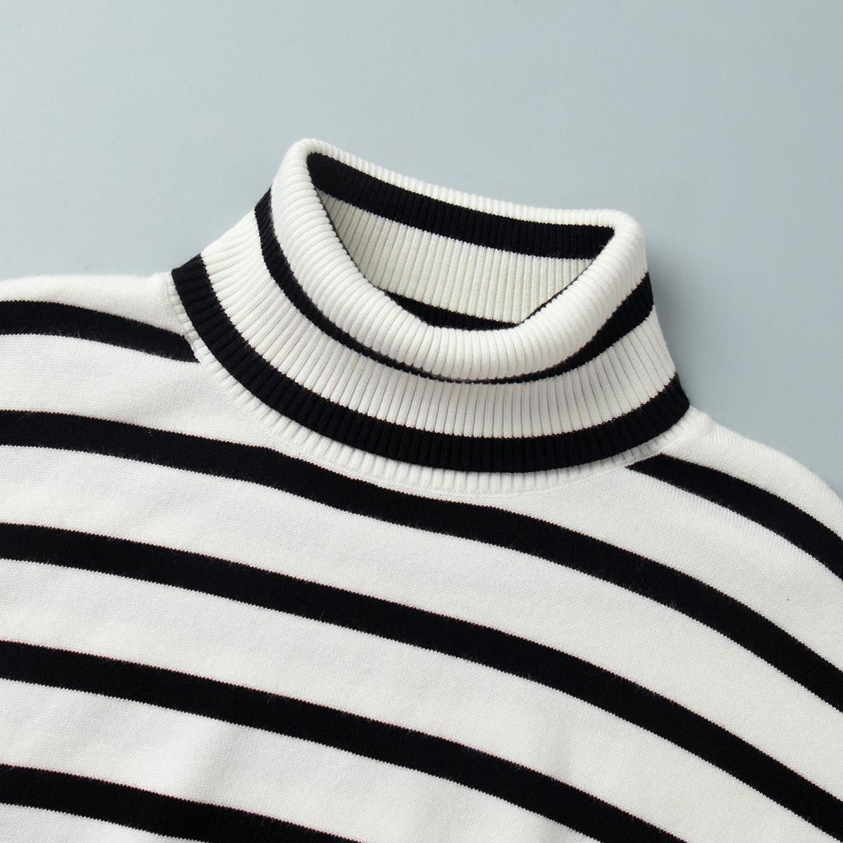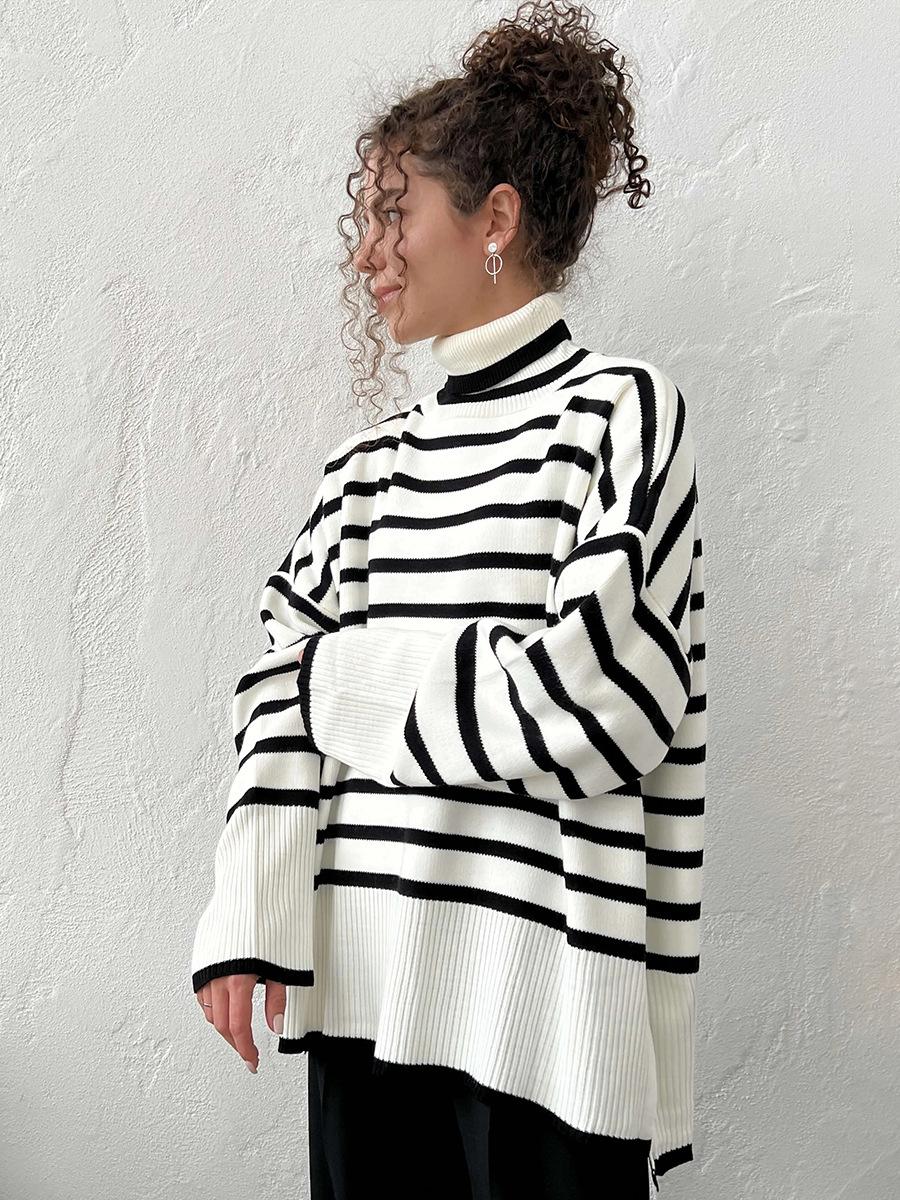 Suéter de Cuello Alto a Rayas Transfronterizo para Mujer Europeo y Americano 2025 Otoño e Invierno Nuevo Suéter Jersey de Cuello Alto Versátil Suéter Holgado