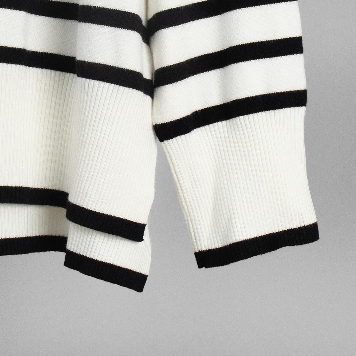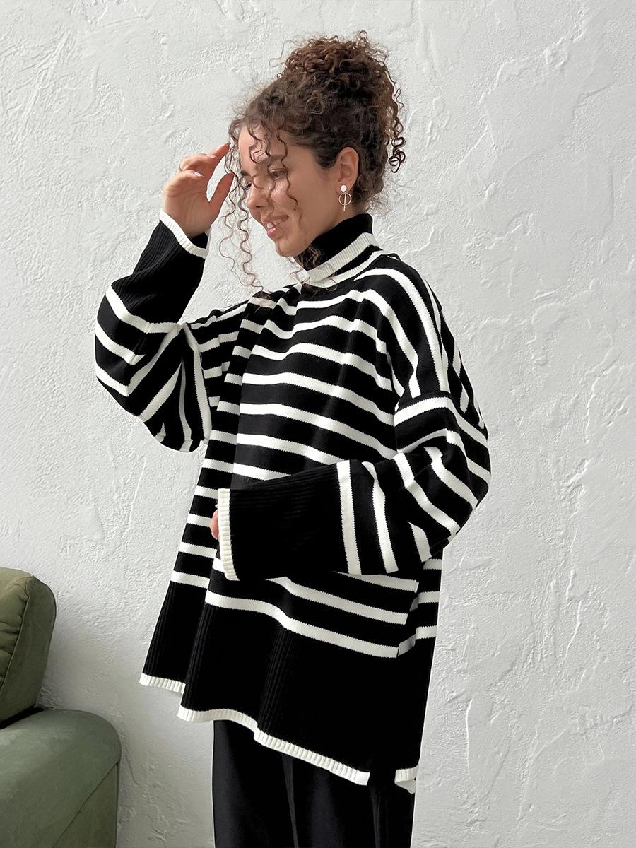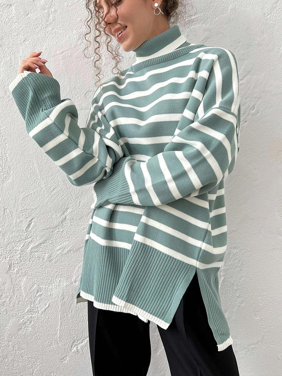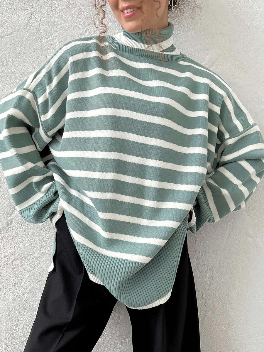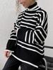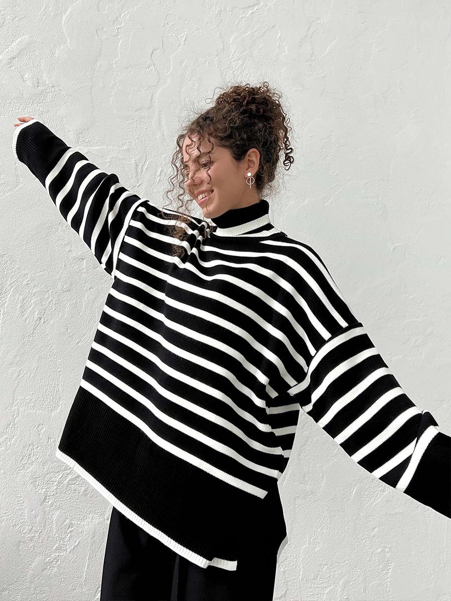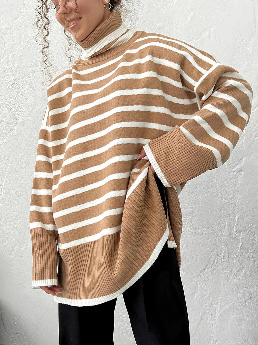 Suéter de Cuello Alto a Rayas Transfronterizo para Mujer Europeo y Americano 2025 Otoño e Invierno Nuevo Suéter Jersey de Cuello Alto Versátil Suéter Holgado