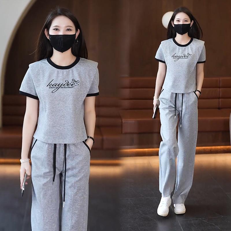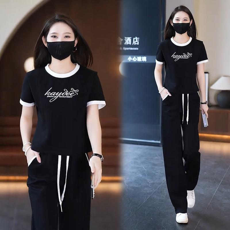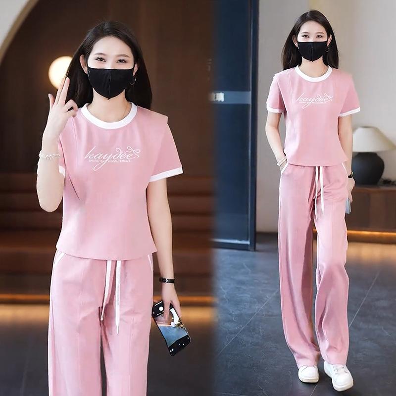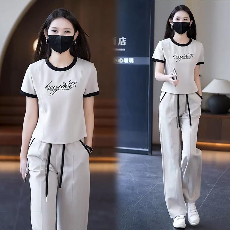 Traje Deportivo Casual para Mujer Verano 2025 Nuevo Estilo Occidental Reductor de Edad Combinación de Colores Top Pantalón Recto Adelgazante Conjunto de Dos Piezas Moderno