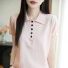 Polo de punto de moda de verano Camiseta de manga corta con bufanda Transpirable Noble Elegante Alta Gama Top Casual Ropa de Mujer
