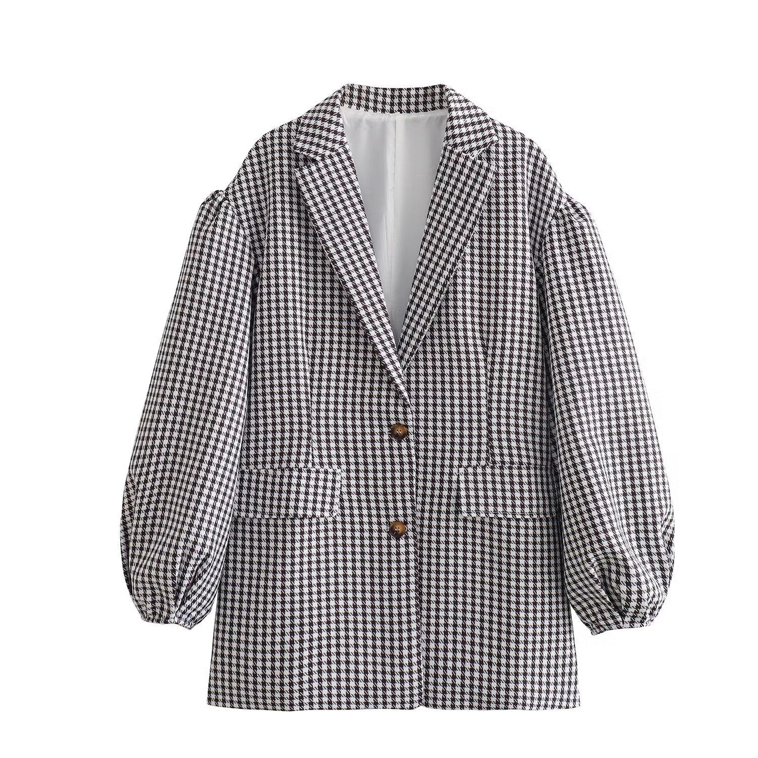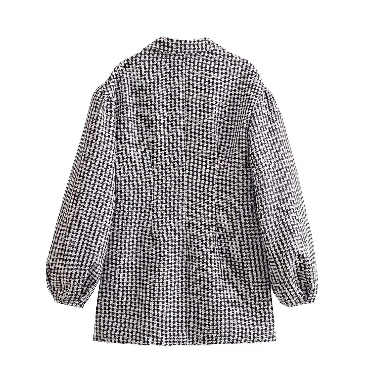 Ropa de mujer de otoño 2023 estilo europeo y americano, nuevo traje de manga larga a cuadros estilo retro, abrigo de pata de gallo para mujer