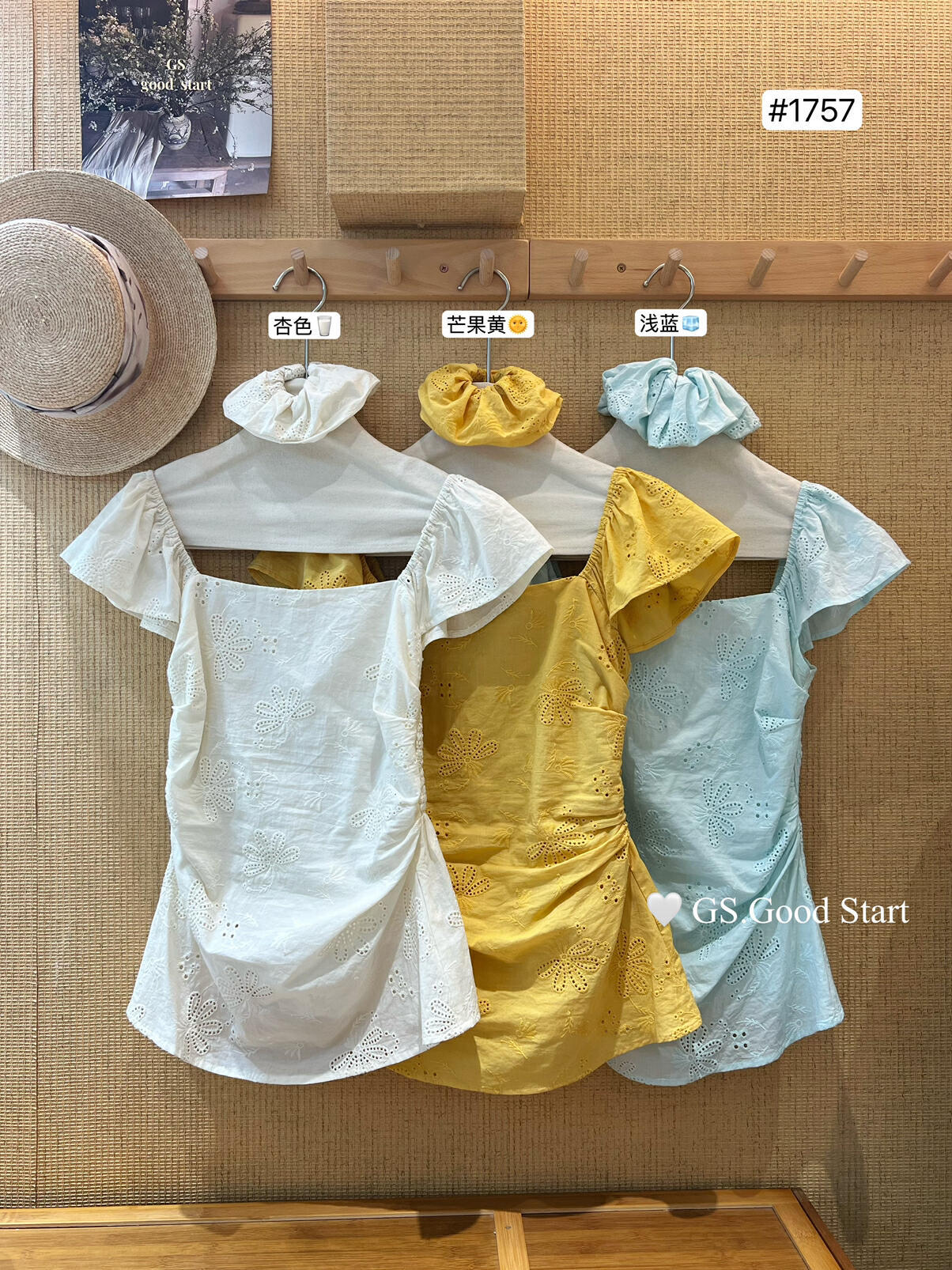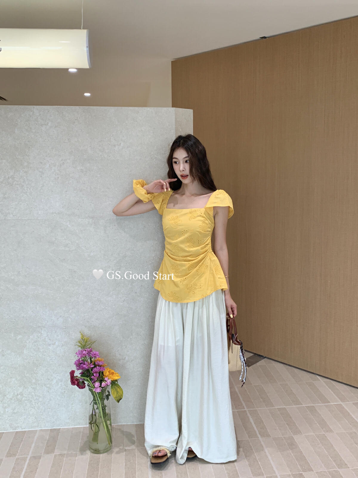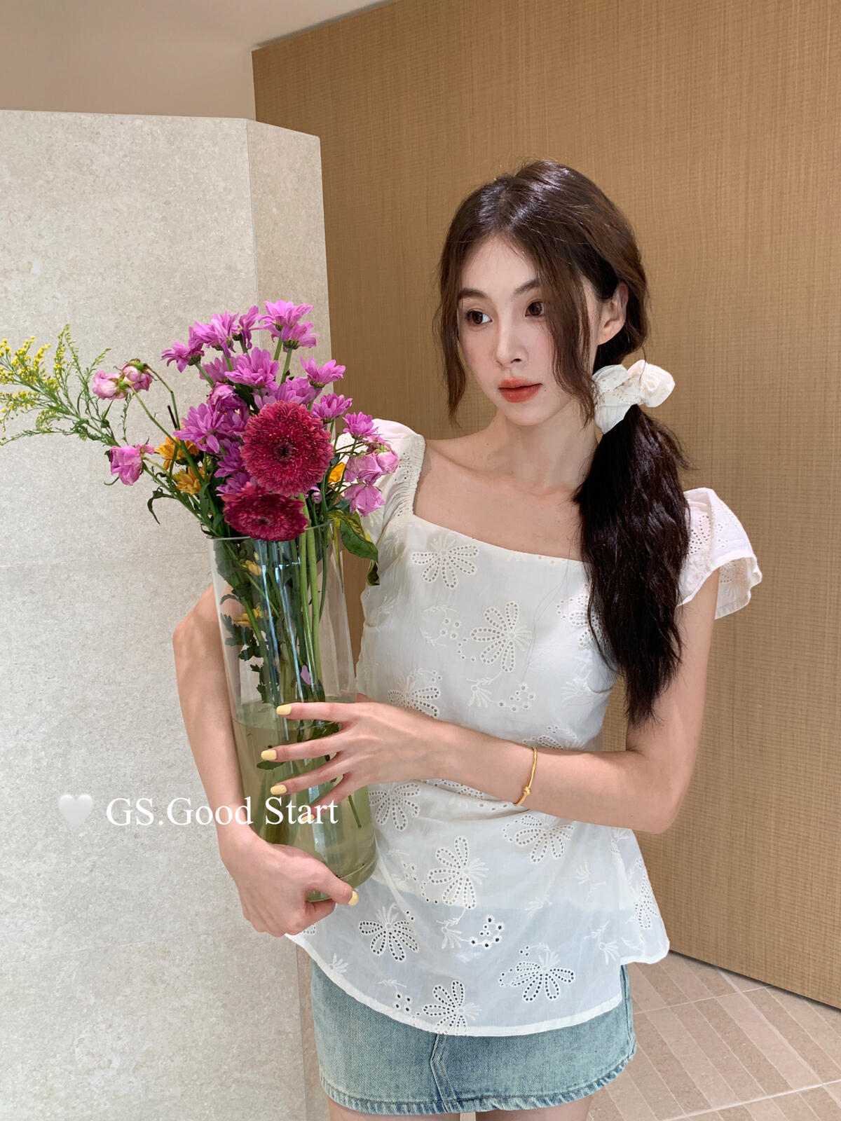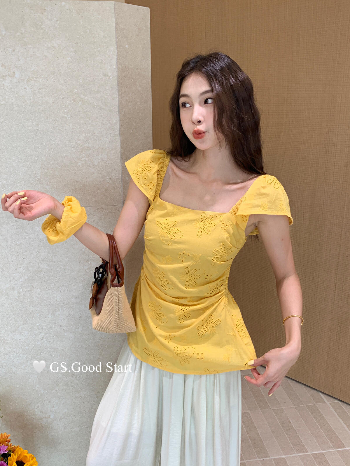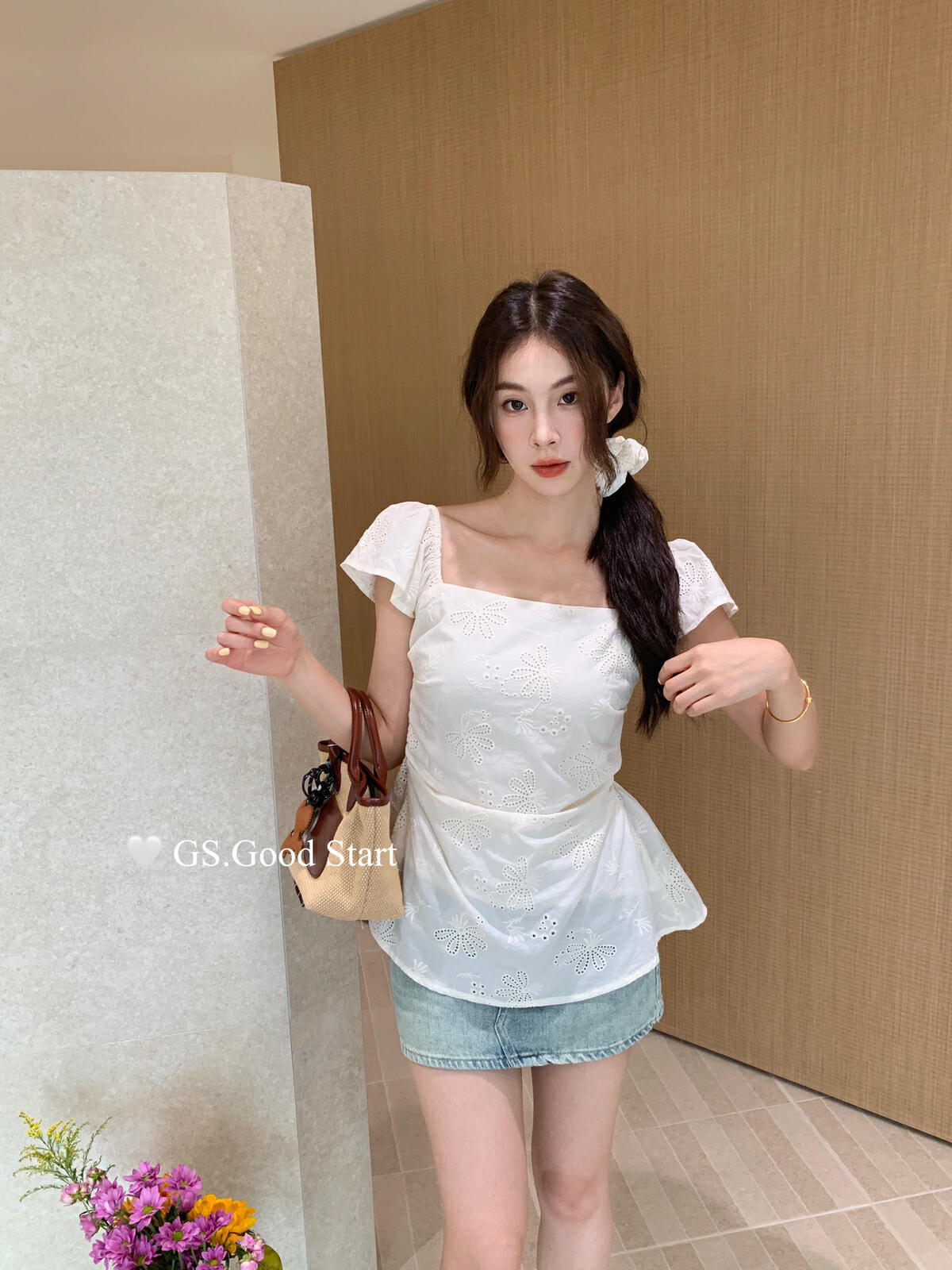 Gs.Buen Comienzo 2025 Verano Dulce Cintura Adelgazante Look Camisa de Manga Corta (con liga para el cabello) G1757E