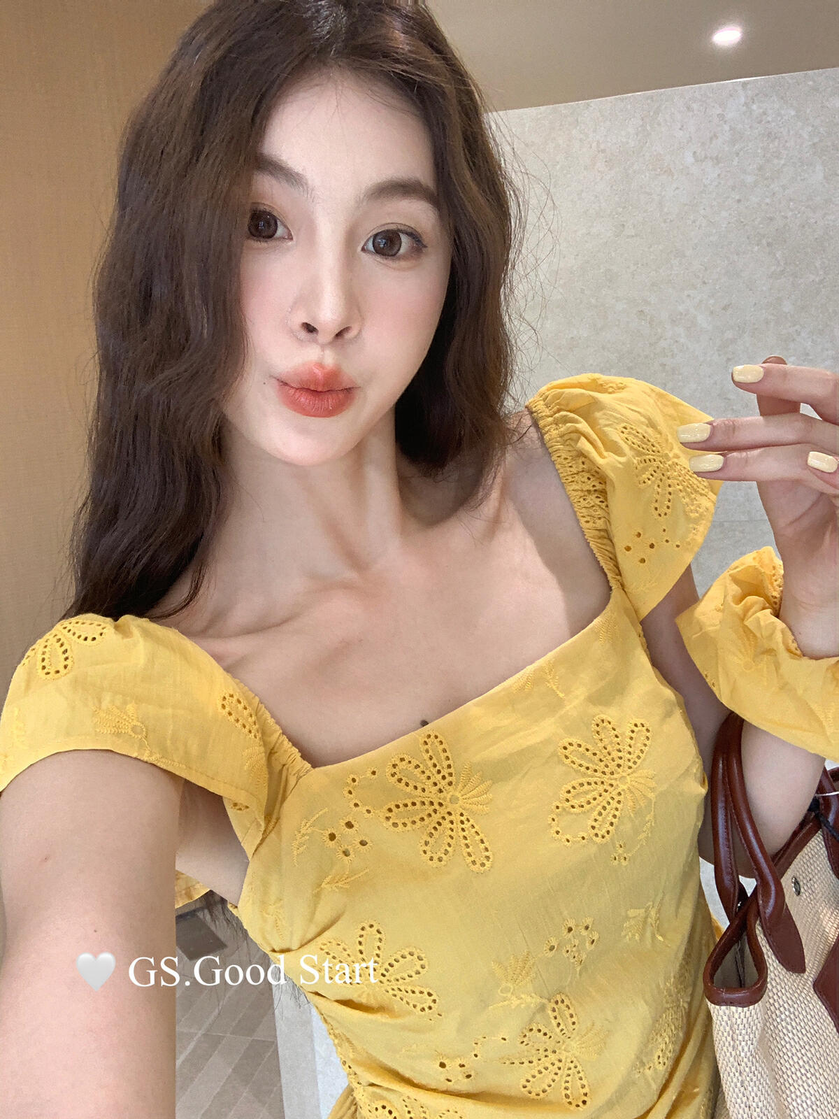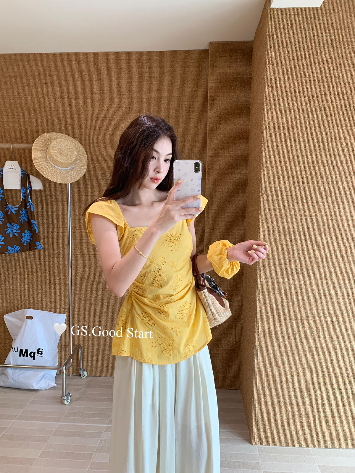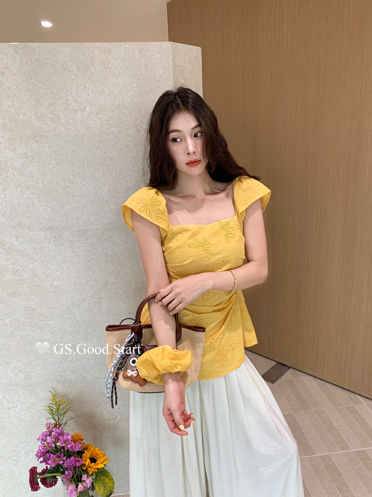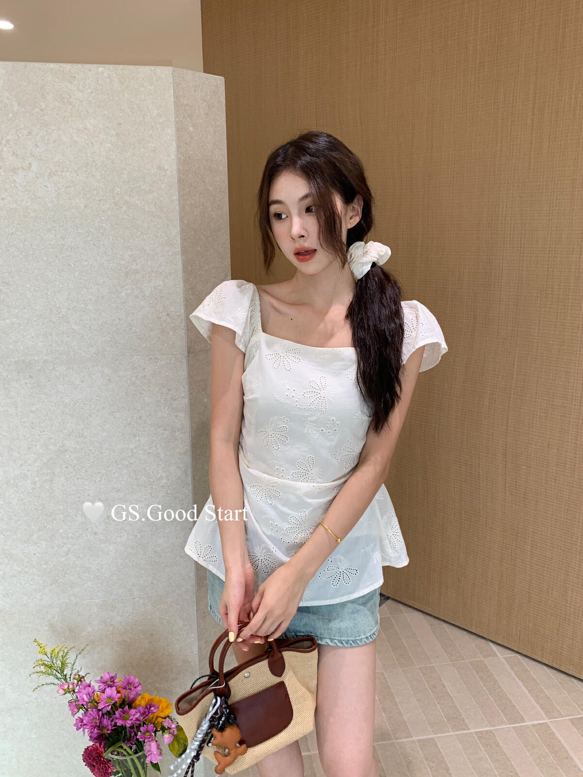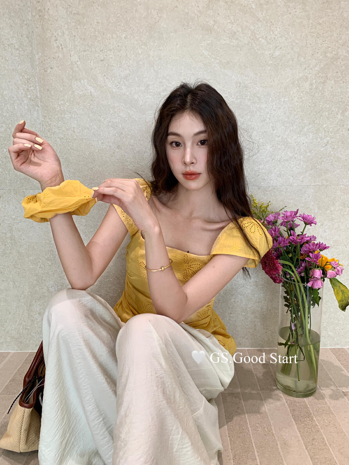Gs.Buen Comienzo 2025 Verano Dulce Cintura Adelgazante Look Camisa de Manga Corta (con liga para el cabello) G1757E