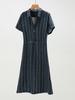 Vestido Nuevo de Lino de Manga Corta para Mujer Verano Perezoso Relajado Rayado Línea A Largo Medio Suelto