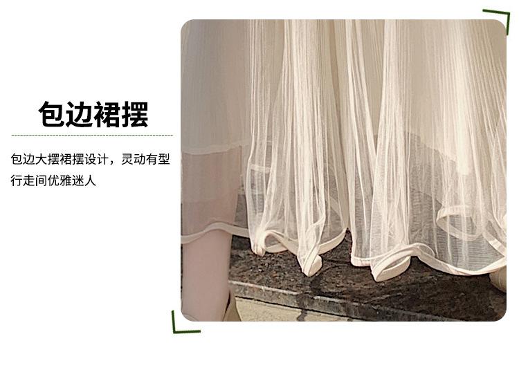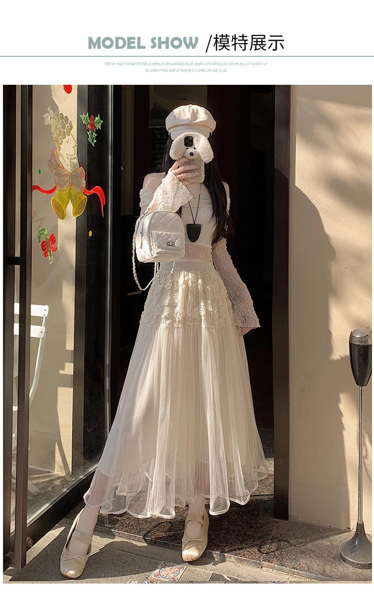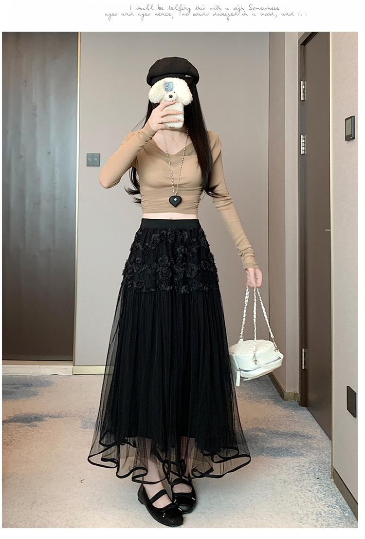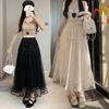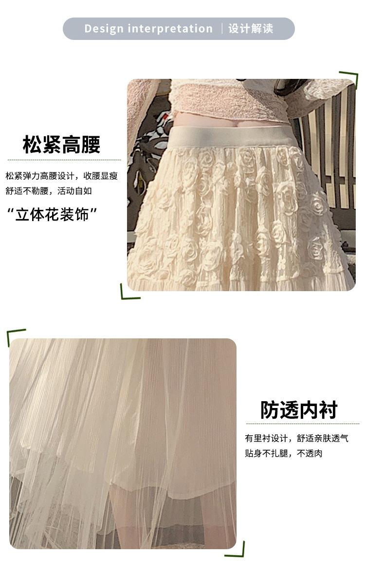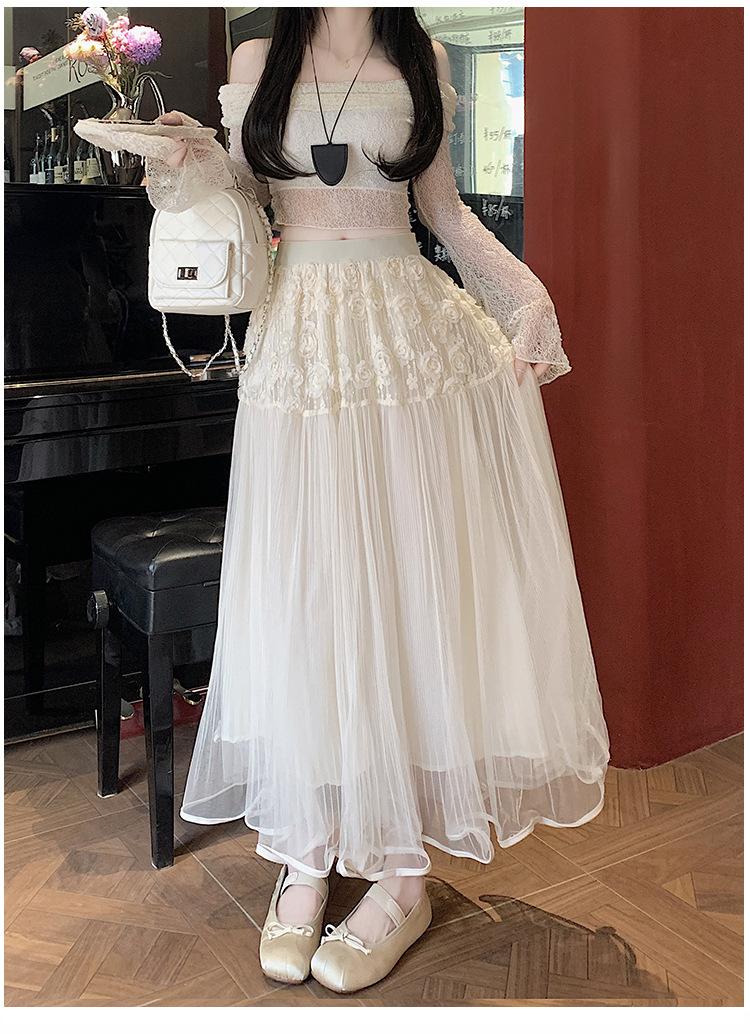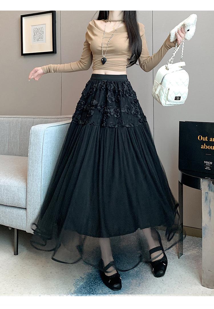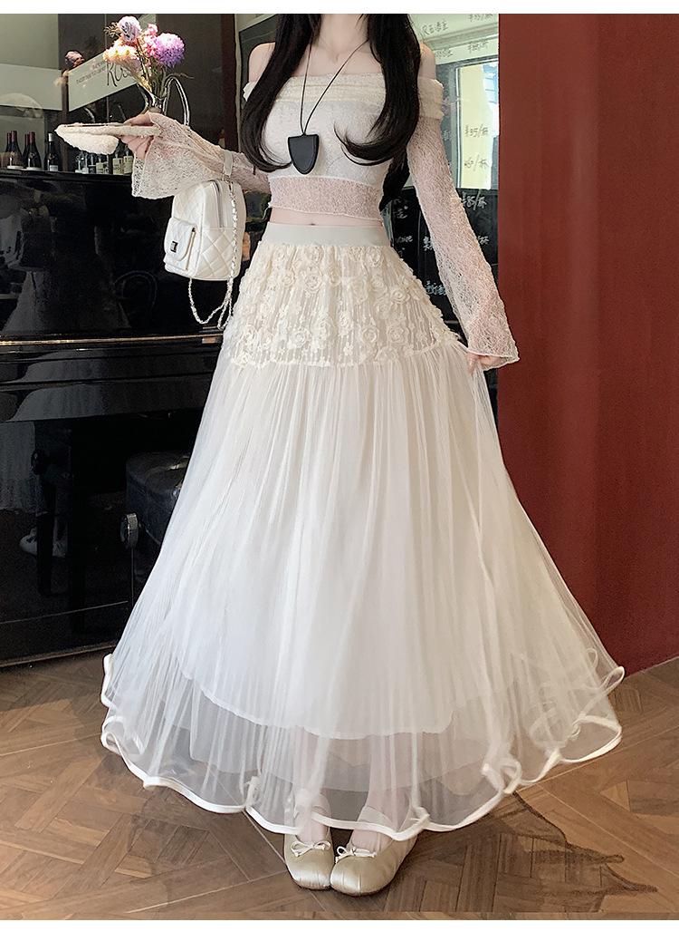 Falda de Malla con Flores Diseño Estilo Francés para Mujer Primavera y Verano 2025 Cintura Alta Adelgazante Línea A Falda Paraguas Falda Plisada Larga
