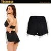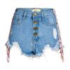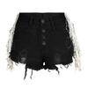 Ropa Europea y Americana Amazon Ebay Shorts de Mezclilla de Color Puro con Cintura Alta, Botones, Agujeros y Flecos para Mujer
