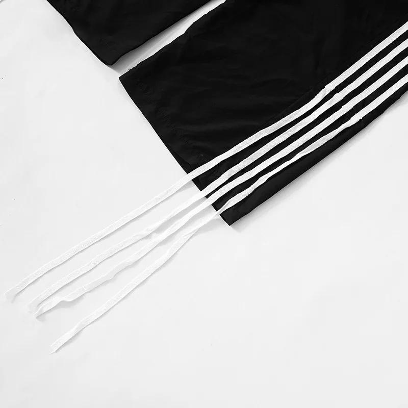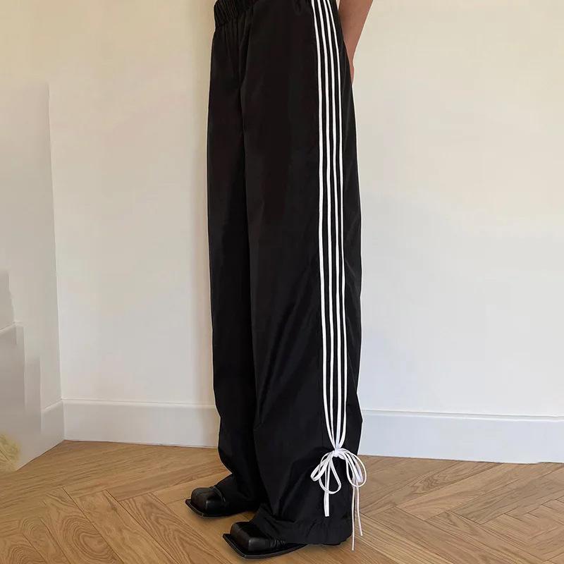 Pantalones casuales deportivos europeos y americanos transfronterizos 2025 Verano Nuevo Sueltos Moda Combinable Color Sólido Rayados Pantalones Largos