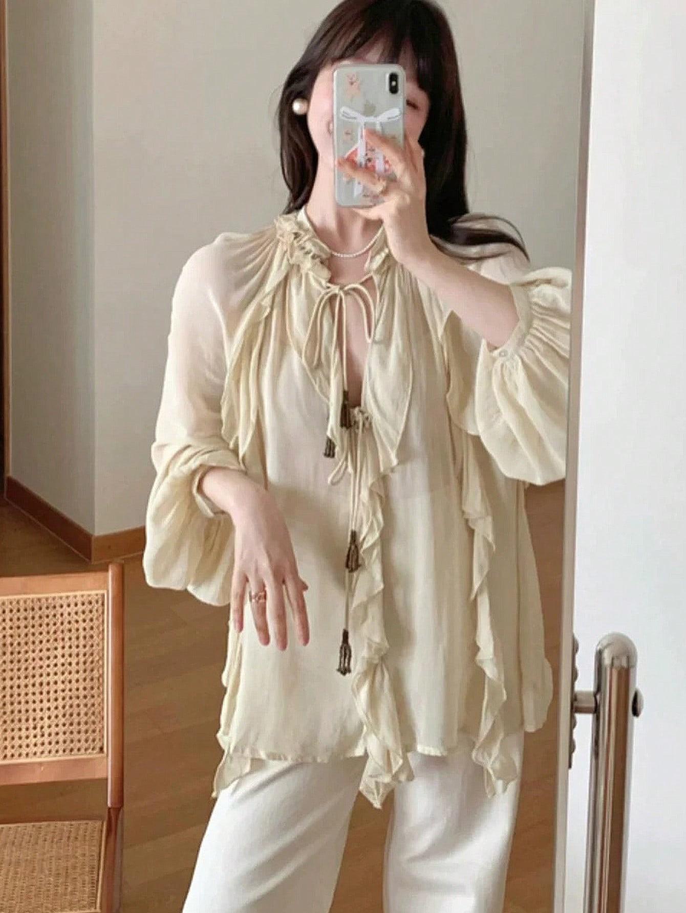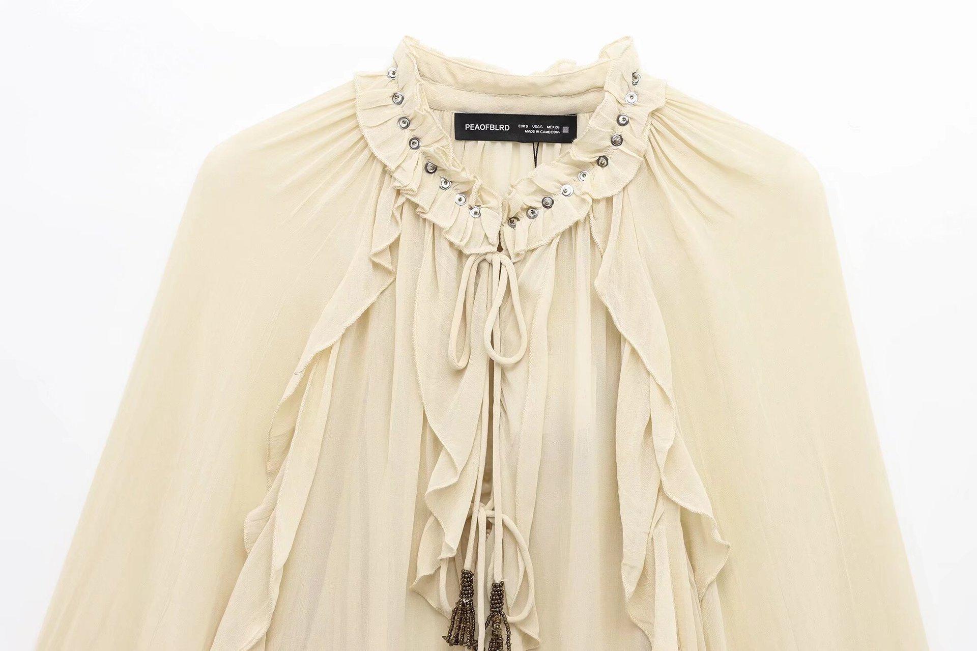 Comercio Exterior Transfronterizo Ropa de Verano para Mujer Europea y Americana al Por Mayor Camisas Decorativas en Capas para Mujer Estilo Romántico