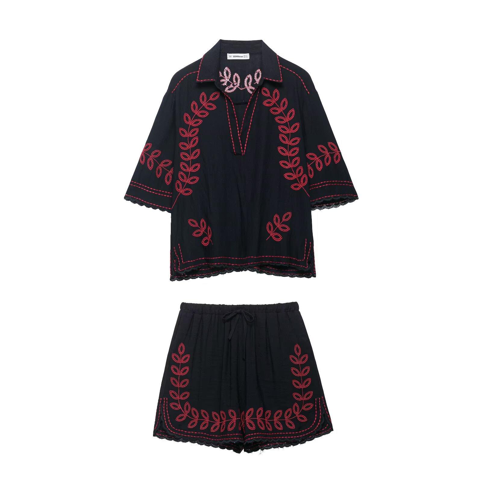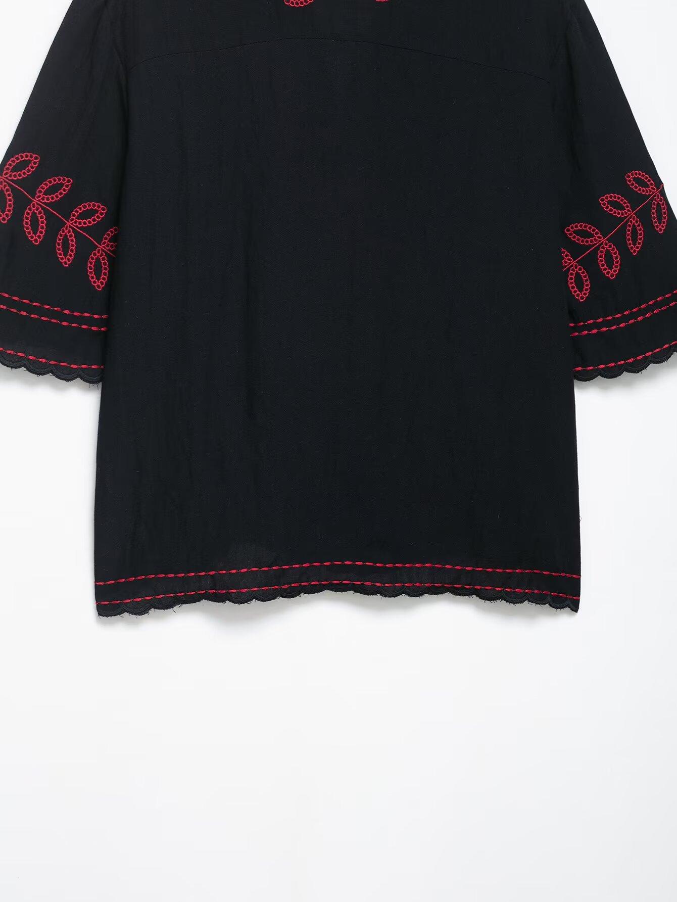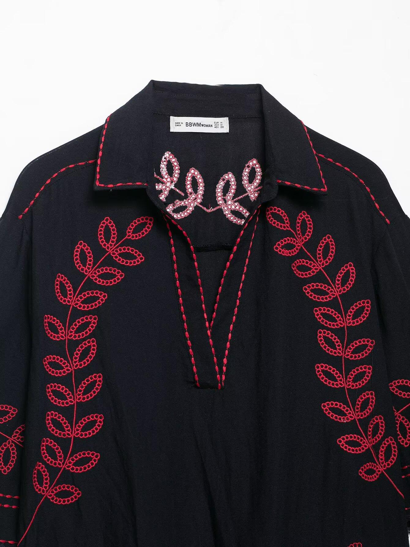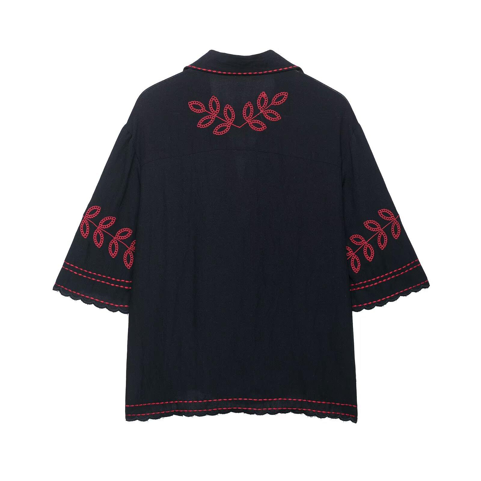 Venta al por mayor de comercio exterior transfronterizo 2025 Verano Estilo europeo y americano Camisa de encaje calado de solapa bordada holgada de manga corta para mujer